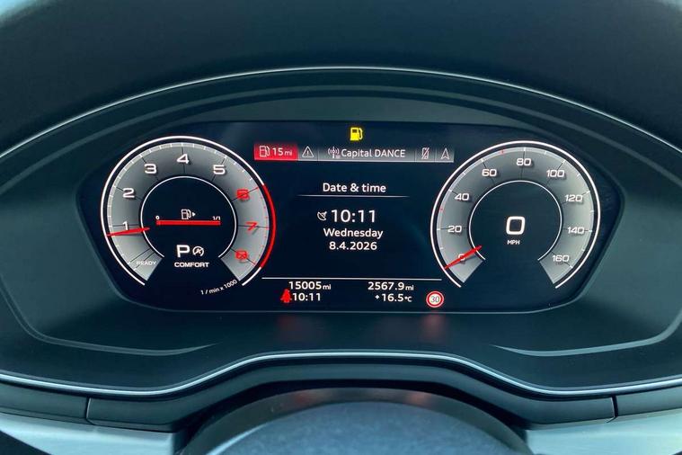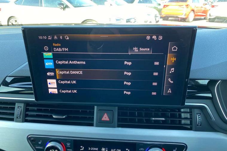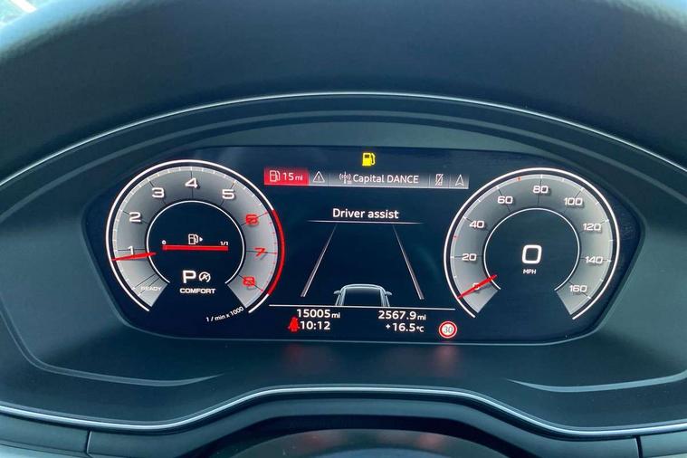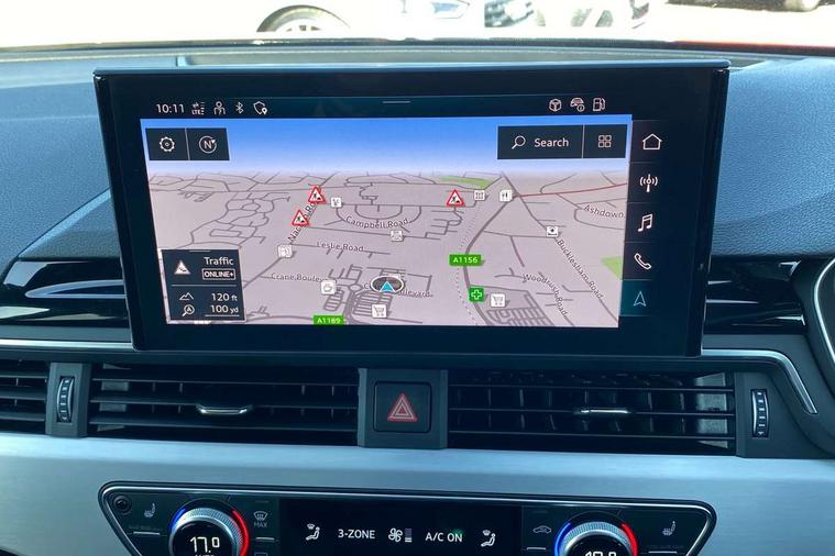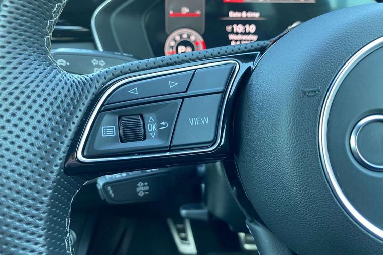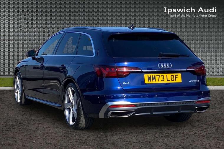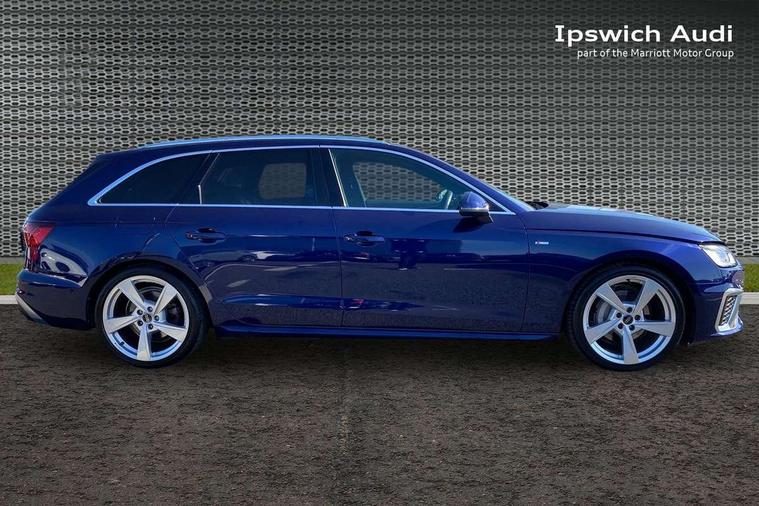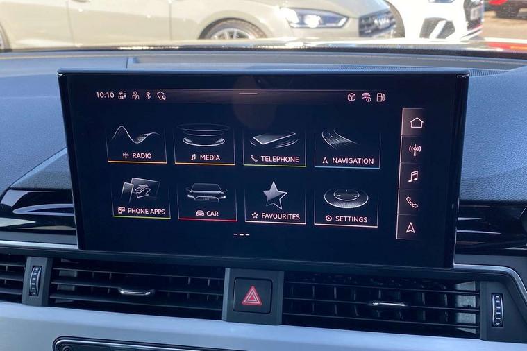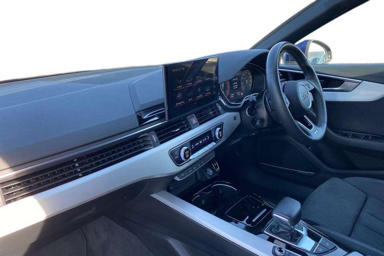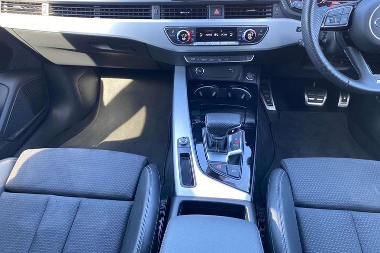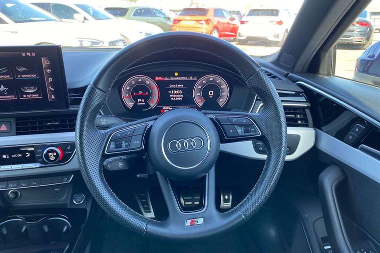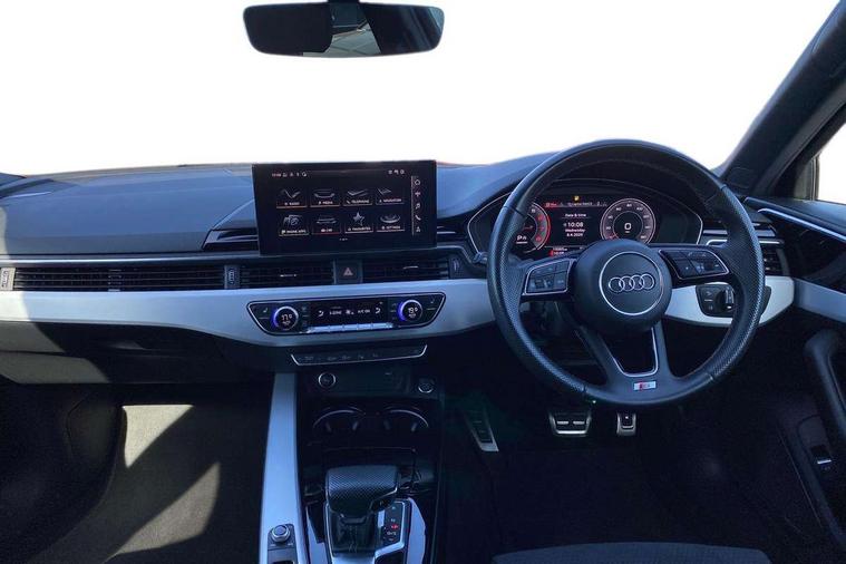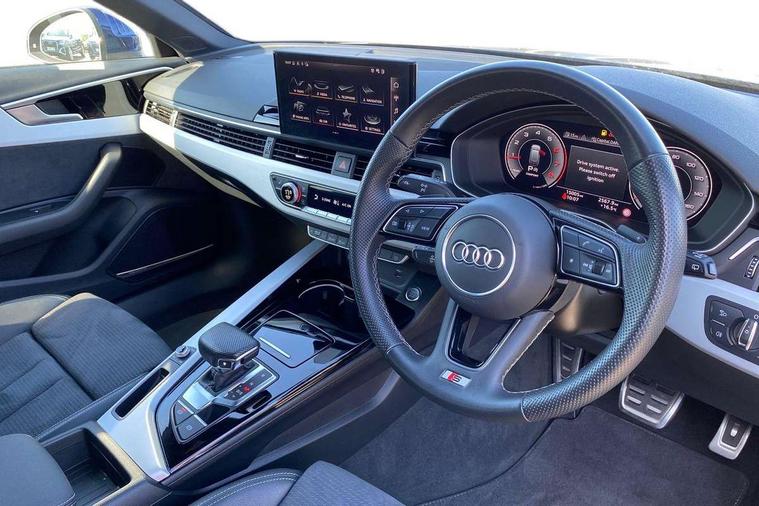 Audi connect safety and service (e-call), Audi drive select, Audi smartphone interface, Audi virtual cockpit, Automatic start-stop system with coasting functionality and efficiency programme, Bluetooth interface, Camera based traffic sign recognition, Electromechanical power steering, Email, calendar and text messages displayed via MMI, Front and rear parking sensors, Lane departure warning, MMI Navigation plus with MMI touch includes 10.1" high resolution colour MMI display, 3D map, Power operated tailgate, Rear view camera, Voice control system, 54 litre fuel tank, Sports suspension lowered by 23mm, 2 USB charging ports, 8 passive loudspeakers, DAB digital radio reception, Aluminium roof rails, Auto dimming rear view mirror, Body colour door handles, Body colour front spoiler lip, Body colour side sill trim, Body coloured door mirrors, Electric adjustable/heated/folding door mirrors with auto dimming, Grained matt black side air inlets with matt aluminium silver inlay, High beam assistant, Honeycomb structure radiator grille in grained matt black, LED headlights with LED rear lights + dynamic rear indicators + headlight adjustment and high beam, turning light + LED daytime running lights, LED third brake light, Matt aluminium silver tailpipe trim, Privacy glass, Rain and light sensors, Rear side wing doors, Rear wiper, S Line badges on the front wings, S line front and rear bumpers with side skirts, S Line rear diffuser in matt anthracite black with trim strip in matt aluminium silver, S Line roof edge spoiler, Variable intermittent front wash/wipe, Windscreen with acoustic glazing, 3 spoke high multi-function sports leather steering wheel grips in perforated leather with S badging including paddle shift, 4 way electric lumbar support for driver and front passenger, 40/20/40 split folding 3 rear seat bench in 3 parts with rear centre armrest, Black carpets, Black cloth headlining, Black perforated leather gearknob, Contrast stitching on seats, steering wheel and gear lever gaiter, Deluxe 3 zone electronic climate control, Electric load area cover, Front and rear head restraints, Front centre armrest, Heated front seats, Illuminated door sill trims with S logo, ISOFIX child seat mounting and top tether, Manual seat adjustment, Single front passenger seat, Stainless steel pedals and foot rest, High gloss package - A4, LED Interior light pack - A4/S4, 3 rear seatbelts, 6 airbags - Driver, front passenger, curtain and side windows, Attention and drowsiness assist, Electronic Stabilisation Control (ESC) including ABS, ASR and EDL, Hill hold assist, Multi collision brake assist, Pop-up bonnet for pedestrian protection, Pre sense city, Rear door child safety locks, Seatbelt monitoring, Warning triangle and first aid kit, Anti theft alarm, Anti theft wheel bolts, Central locking, Keyless Go, Matt brushed aluminium inlays, Tool kit, Tyre repair kit,