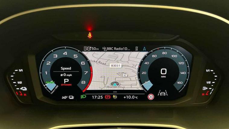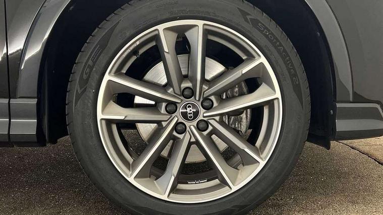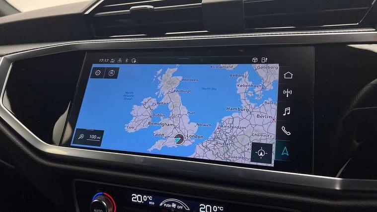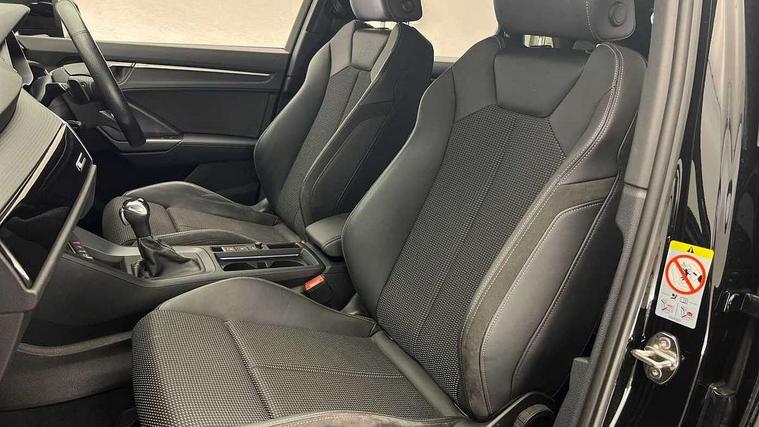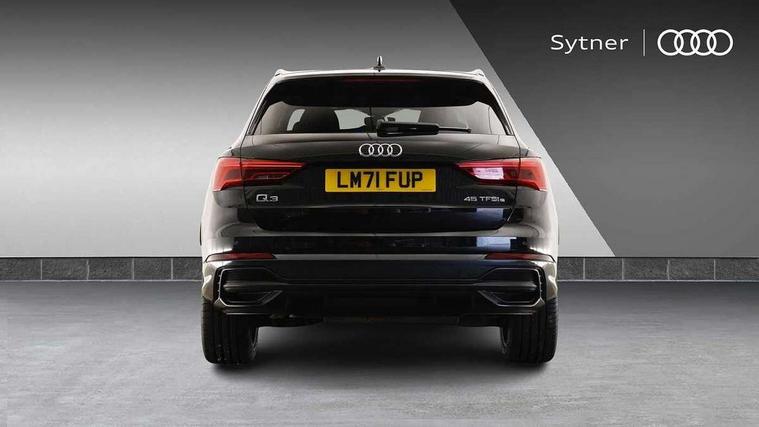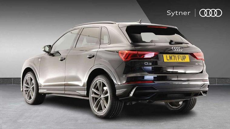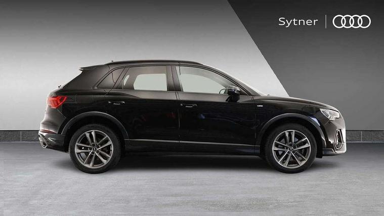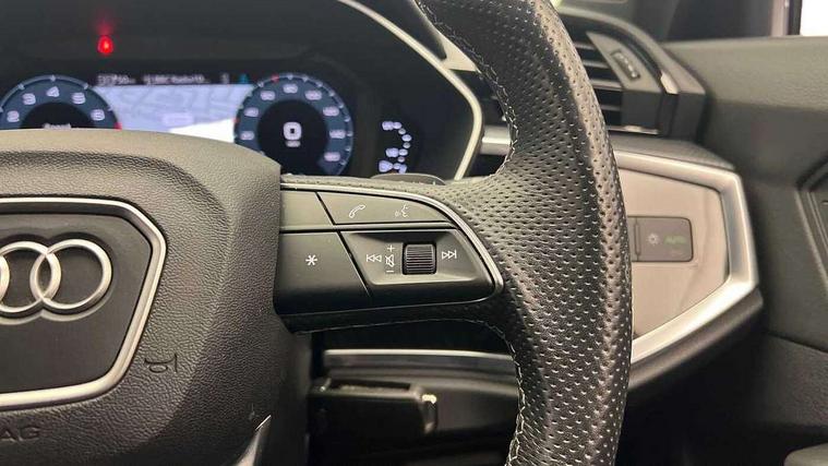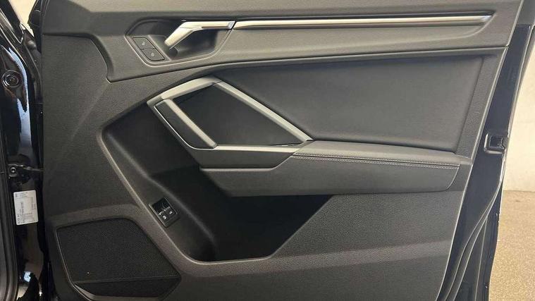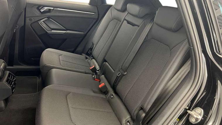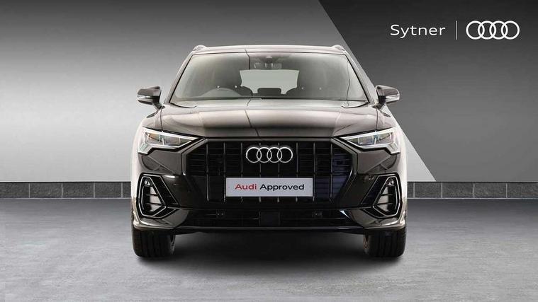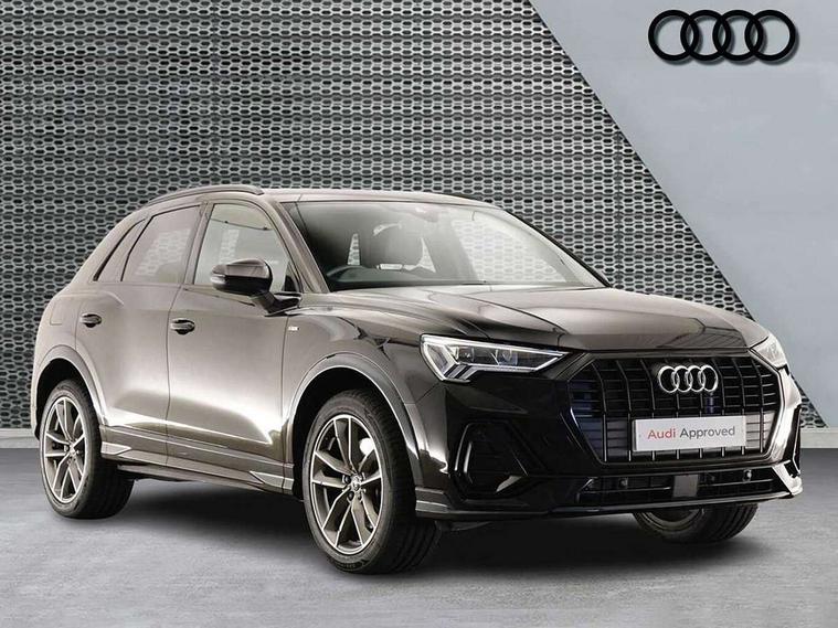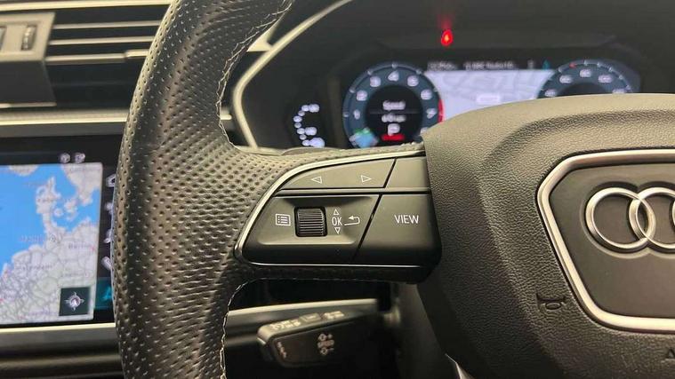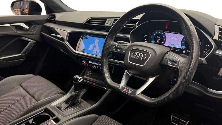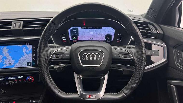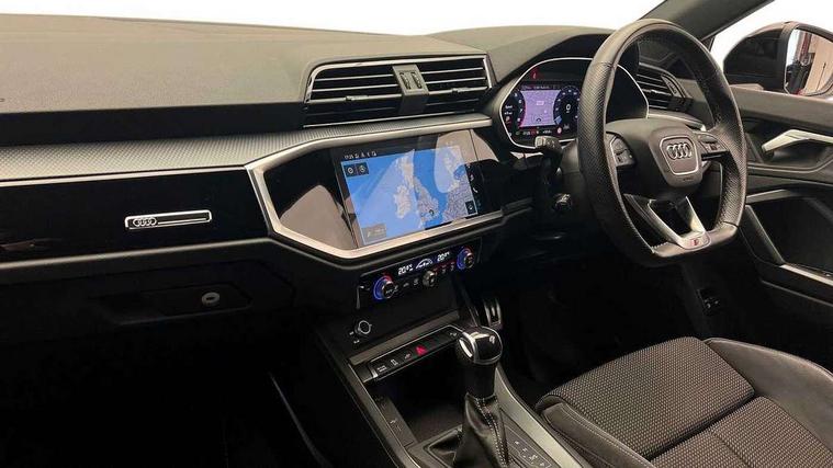 Amazon alexa Integration, Audi connect safety and service (e-call), Audi drive select, Audi lane departure warning, Audi Virtual Cockpit - 10.25" display, Bluetooth interface, Camera based traffic sign recognition, MMI Navigation Plus with high resolution 10.1 inch touchscreen colour display, Power operated tailgate, Progressive steering, Service interval indicator, Smartphone interface includes wireless Apple carplay/Android Auto, Start stop system with recuperation, Voice control system with natural language interaction, 3 pin 10 amp domestic charging cable, Type 2 mode 3 32 amp charging cable, Type 2 socket for AC charging, 2 USB-C ports with charge and data functions, 6 passive loudspeakers, DAB digital radio module, Acoustic windscreen, Auto dimming frameless rear view mirror, Black roof rails, Electrically folding, adjustable and heated door mirrors with integrated LED side indicators and kerb view function for passenger side, Front and rear electric windows, Front fog lights, Grille vertical bars in aluminium silver/Matt, High gloss black finish B and C pillars, LED headlights with LED daytime running lights and dynamic rear indicator, LED rear lights, Privacy glass dark tinted rear and rear-side windows (from B-pillar backwards), Rain and light sensors, Rear diffuser strip in matt titanium black, S line bumpers in contrasting Manhattan grey, 12V socket in rear centre console, 40:20:40 folding with manual adjustment for 60:40 forwards/backwards position and backrest angle, Adjustable rear seat bench/backrest with centre armrest and cupholder, Black cloth headlining, Dual zone electronic climate control, Front and rear black floor mats with contrast stitching in rock grey, Front and rear headrests, Front and rear roof module including reading lights, Front centre armrest, Glove compartment lighting, Height and reach adjustable steering wheel, Illuminated door sill trims with S logo, ISOFIX child seat mounting for front passenger with airbag deactivation and outer rear seat including top tether attachment point for outer rear seats, Luggage compartment light, Manual front seats with height adjustment, Perforated leather gearknob, Stainless steel luggage compartment sill finisher, Stainless steel pedals, Black styling pack - Q3, Non smoking pack - Q3, 3x3 point rear seatbelts, 6 airbags - Driver, front passenger, curtain and side windows, Audi pre-sense front with pedestrain and cyclist recognition, Electrically operated child locks on rear doors, Electromechanical parking brake, Electronic stabilisation control including ABS, ASR and EDL, Hill descent control, Hill hold assist, Pre sense basic, Seatbelt monitoring, Tyre pressure warning, Warning triangle and first aid kit, Anti theft alarm, Anti theft wheel bolts, Remote central locking, Detail dashboard around MMI touch colour display in glass look, black with surround in aluminium look, Leatherette door armrest, Piano black inlay,