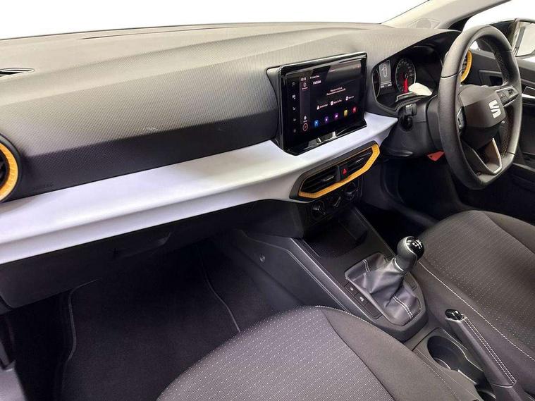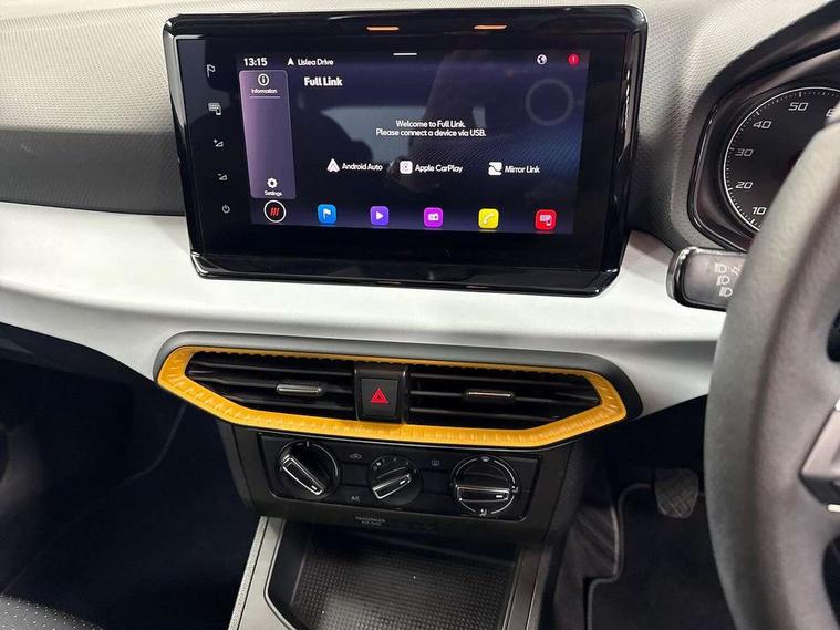 'Lights On' Reminder warning buzzer, 8" Digital cockpit, 9.2" touchscreen navigation system with type C USB socket, Voice control and DAB/AM/FM radio, Auto start and stop system, Bluetooth audio streaming with handsfree system, Cruise control, Digital clock, E-call, Full link smartphone integration with mirror link, wireless apple carplay, Google android auto + USB Type C cable for apple and android devices, Lane assist, Low fuel warning light, Outside temperature gauge, Power Steering, Seat connect with safety, service, remote and online, SEAT logo boot release, Speed limiter, Trip computer, Comfort suspension, Auxiliary input socket, Radio/MP3 player, SD card slot, Steering wheel mounted controls, Anti theft roof antenna, Body colour bumpers, Body colour door handles, Body colour door mirrors, Dimming interior rear view mirror, ECO LED automatic headlights and LED daytime running lights, Electric front windows, Electric headlight adjustment, Electrically adjustable door mirrors, Front/rear fog lights, Halogen tailights, Rain sensor, Rear side wing doors, Rear wiper, Third brake light, 3 seat bench in 2nd row, 60/40 split folding rear seat, Air conditioning with dust and pollen filter, Chrome interior detailing and grey headlining, Cloth upholstery, Comfort seats, Front courtesy lights, Front cupholders x 2, Front reading lights, Gear shift indicator, Glovebox, Height adjustable front and rear headrests (five), Height adjustable front seats, Height/reach adjust steering wheel, Illuminated boot, Instrument lighting with brightness control, Isofix, Leather multifunction flat bottomed sports steering wheel, Passenger sunvisor, Single front passenger seat, Sunvisors with mirror and driver side card holder, 3 point seatbelts on all 3 rear seats, ABS, Active front headrests, Child locks on rear doors, Electronic stability control, Energy recovery system, Front assist forward collision warning and autonomous emergency braking, Front driver and passenger side airbags with curtain airbag and front passenger airbag deactivation, Hill hold control, Multi-Collision braking, Seat belt reminder for front and rear seats, Tiredness recognition system, Tyre pressure monitoring system, Electronic engine immobiliser, Locking wheel bolts, Remote central locking + deadlocks, 16" Design machined alloy wheels in Nuclear grey, Emergency tyre repair kit,