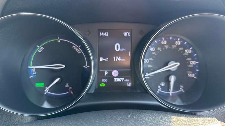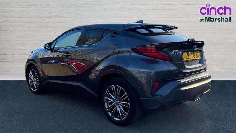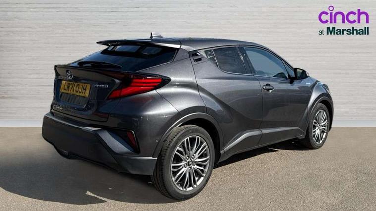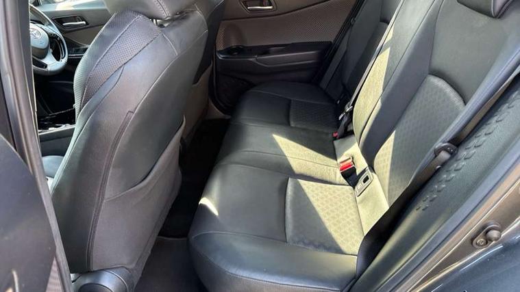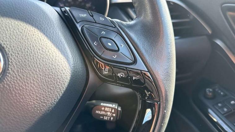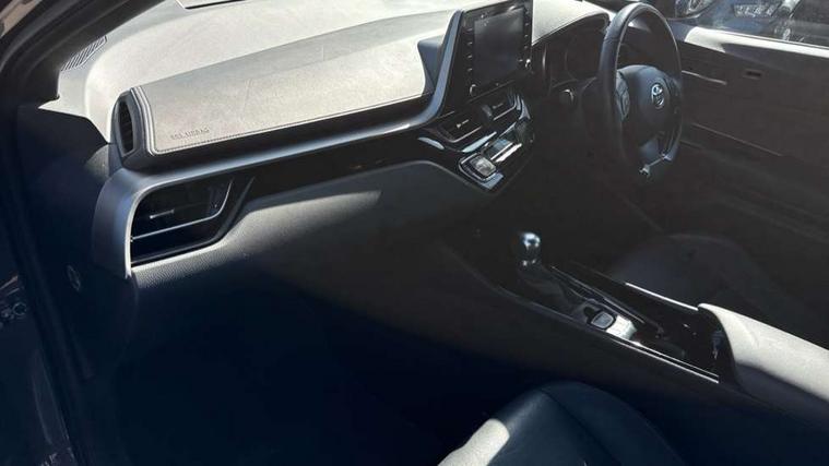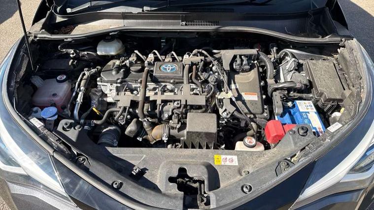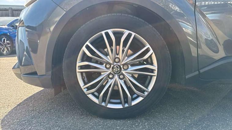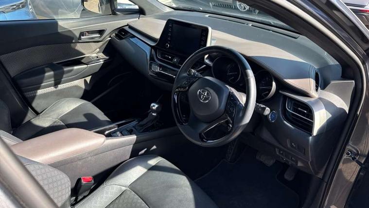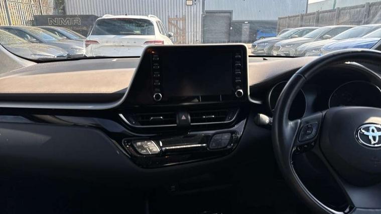 4.2" coloured TFT screen for multi-information display, Adaptive cruise control, Bluetooth connectivity, Electric power steering, Hybrid system indicator, Lane departure alert with steering control, Remote boot door release in cabin, Remote boot door release in key, Reversing camera, Road sign assist - RSA, Simple Intelligent parking assist, Touch 2 Go navigation system, Trip computer, Voice recognition, Vehicle Stability Control (VSC), 6 speakers, AM/FM radio, DAB Radio (Digital Audio Broadcasting), Toyota touch 2 multimedia system with 8" display, USB connector, Wi-fi connectivity, Adaptive front light system, Adaptive LED Headlights, Anti-jam protection on power windows, Auto high beam, Auto up and down function on all power windows, Automatic headlight levelling, Automatic headlights, Automatic headlights cut-off, Black and body coloured rear bumper, Black upper front grille, Body colour door handles, Body colour door mirrors, Body colour front spoiler lip, Body coloured front bumper, Boot door release with push button, Electric heated door mirrors, Follow me home headlights, Front and rear power windows, Hard tonneau cover, Honeycomb lower front grille, LED daytime running lights, LED fog lights, LED front light guide, LED High mounted stop light, LED rear brake lights, LED rear combination lights, Noise reduction layer on front windows and windscreen, Power adjustable door mirrors, Privacy glass, Rear sequential indicators, Rear spoiler, Rear tailgate, Rear window defogger, Rear window wiper, Shark fin antenna, UV-filter on driver and passenger windows, UV-filter on rear windows, 12v power outlet - front, 3 rear headrests, 3 spoke leather steering wheel, 60/40 split folding rear seat, Adjustable rear headrests, Adjustable speed limiter switch on steering wheel, Assist grips front and centre pillar, Audio and telephone switches on steering wheel, Black front door assist grips, Blue ambient lighting on front cup holders, Blue ambient lighting on front doors, Boot light, Chrome interior door handles, Driver and front passenger personal light, Driver and front passenger Whiplash Injury Lessening seats, Driver and passenger seatback pockets, Dual zone automatic air conditioning, Floor mats, Front cupholders, Front head restraints, Front sports seats, Glovebox with internal light, Heated driver and front passenger seats, Heated steering wheel, Hooks for luggage holding net, Humidifying Nanoe air purifier, Illuminated entry system, Isofix attachments on rear seats, Leather gearshift, Light on driver sun visor, Light on passenger sun visor, Manual telescopic steering wheel, Manual tilt steering wheel, Microphone on front personal light, Mirror on driver sun visor, Mirror on passenger sun visor, Multimedia switches on steering wheel, Pollen filter, Power adjustable lumbar support on driver seat, Power tilting cushion on driver seat, Shopping bag hooks, Slow opening on lower glovebox, Voice recognition switch on steering wheel, Leather pack - C-HR, Tech with parking sensor pack - C-HR, 16 Disk front wheel brake, 3x3 point rear seatbelts, ABS+EBD+Brake assist, Electronic parking brake, Front and rear seatbelt reminder, Front passenger airbag on/off switch, Hill start assist control (HAC), Pre collision system with pedestrian detection, Pre-tensioners and force limiters, Rear door child safety locks, SRS Airbags - Driver + Front passenger, front side, front and rear curtain and driver's knee airbags, Toyota safety sense, Tyre pressure monitoring system, Acoustic vehicle alert system (AVAS), Glass-breaking alarm sensors, Immobiliser, Intrusion alarm, Intrusion sensor, Motion sensor alarm, Power door locks, Power passenger window lock, Remote central locking, Black lower dashboard, Dark brown upper dashboard, Piano black console, Silver deco line on upper dashboard, Tyre repair kit,