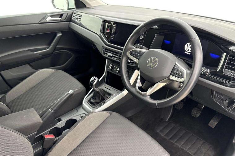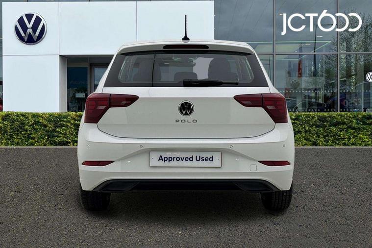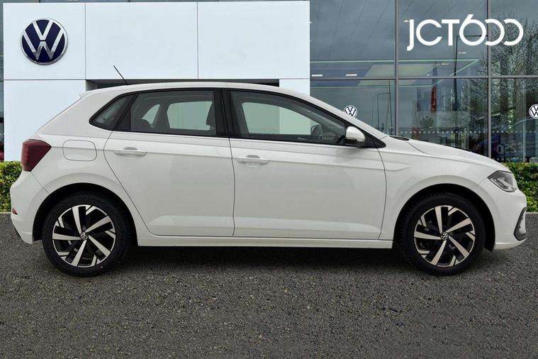 Adaptive cruise control without follow-to-stop and speed limiter, Bluetooth mobile phone interface, Driver alert system, Emergency call service, Front assist system, Power assisted speed sensitive steering, Preparation for We connect and We connect plus, Speedo and rev counter, electronic odometer, trip, service interval display and fuel gauge, Standard rear axle, Travel Assist - Lane keeping system and traffic jam assist, Travel assist including emergency assist, Trip computer, Warning signal and warning light for front and rear seatbelts not fastened, Washer fluid level indicator, Wireless app connect, Front wheel drive, Rear shock absorpion, Start-stop system with battery regeneration (recuperation - energy recovery during braking), DAB Digital radio, Diversity antenna for FM reception, Front and rear 6 speakers, Automatic dimming interior rear view mirror, Body colour bumpers, Body colour door handles, Body colour door mirrors, Electric front windows, Heat insulating darkened glass in side and rear windows, Heat insulating glass windscreen, Power folding adjustable/heated exterior mirrors and front passenger exterior mirror lowering function, Rain sensor, Rear electric windows, Rear fog light, Rear side wing doors, Rear windscreen washer and wiper with interval delay, Third brake light, 12V power socket in centre console, 2 front and 2 rear reading lights, 2 USB-C ports in the front, 2 USB-C charging sockets on the center console in the rear, 3 rear head restraints, 60/40 split folding rear seat and rear seat bench not split, Chrome plated radiator grille inserts, air vent surrounds and light switch surrounds, Door and side trim panel, Driver and front passenger seat height adjustment, Driver/passenger sunvisors with illuminated vanity mirrors, Front centre armrest, Front seat backrest storage pockets, Front standard seats, Handbrake lever handle in leather, Hartley/Thomas cloth upholstery, Headliner in recycled material, Isofix child seat preparation easy-fit (for two outer rear seats, and front passenger seat) compatible with I-size, Leather trimmed gear knob, Luggage compartment cover, Luggage compartment floor, Luggage compartment lighting, Multifunction steering wheel, Single front passenger seat, Standard pedal cluster, Light and vision pack - Polo, 3 point height adj front seatbelts + pretensioners, 3x3 point rear seatbelts, ABS, Driver and front passenger airbag with front passenger airbag deactivation, Drivers and front passengers safety optimised head restraints, ESC (Electronic stability control) + EDL (Electronic Differntial lock) and ASR (Traction control), Extended and predictive pedestrian/ cyclist protection, Front curtain and side airbags with center airbag, Front disc brakes, Hill hold control, Manual child lock in rear doors, Rear drum brakes, Single tone horn, Tyre pressure loss indicator, Alarm with interior protection, Anti-theft alarm system with interior monitoring, backup horn, and towing protection, Anti-theft wheel bolts, Electronic engine immobiliser, Lava stone black gloss/matt decorative inserts in dash and front door panels, Low rolling resistance tyres,