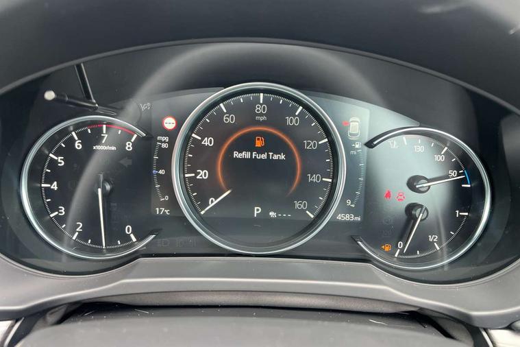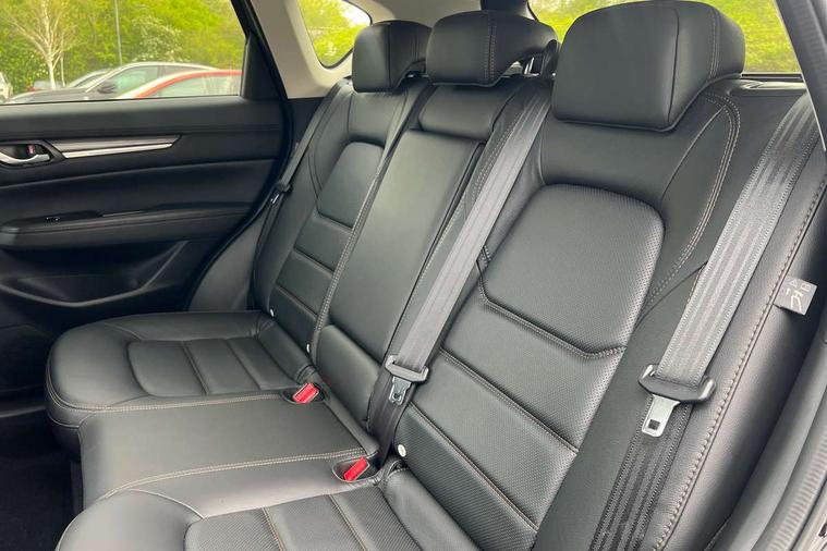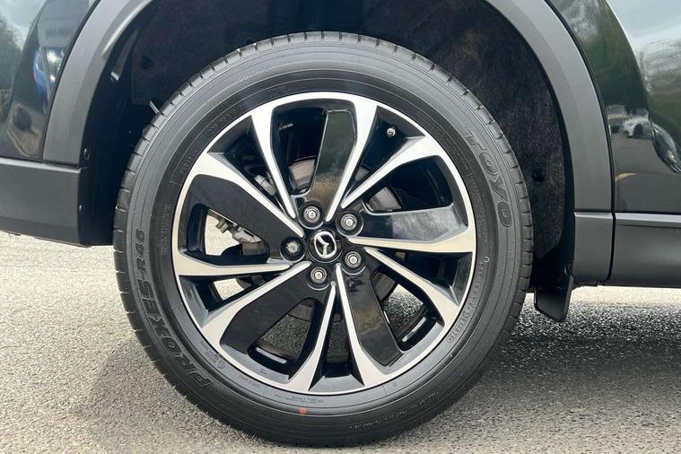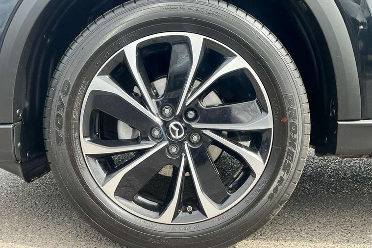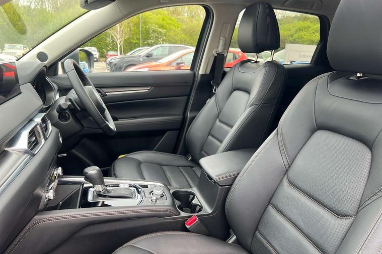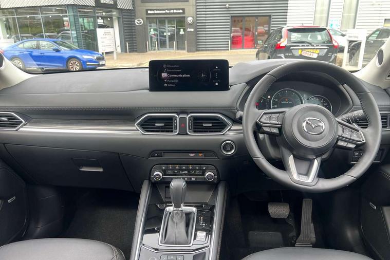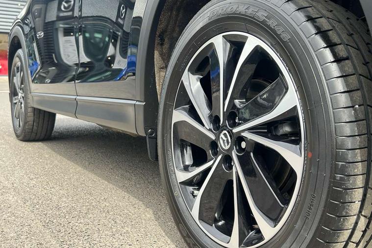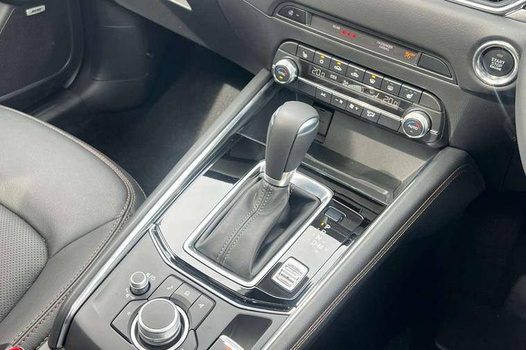 10.25" display with Mazda Connect infotainment, 7" colour TFT display, Advanced blind spot monitoring, Bluetooth connectivity with voice control, Collision prevention assist, Connected services, Cruising Traffic Support, Drive mode selector, Electric power steering, Emergency stop signalling system, Engine start/stop button, Forward collision warning, Front and rear parking sensors, Integrated navigation system, Intelligent speed assist, Lane departure warning system, Lane keep assist, Power liftgate, Qi wireless phone charging, Radar cruise control with Stop and Go, Rear cross traffic alert, Reversing camera, Service indicator, Traffic sign recognition (TSR), Trip computer, Windscreen projected colour active driving display (HUD) with memory, Wireless apple car play/android Auto, Cylinder Deactivation, i-stop, AM/FM radio, Bluetooth audio streaming, Bose premium sound system with 10 speakers, DAB Digital radio, Multimedia Commander including separate volume dial, Steering wheel mounted audio controls, Adaptive front lighting system, Auto dimming rear view mirror, Automatic headlights, Black inlay dashboard panel, Body colour door mirrors, Body colour roof spoiler, Body coloured front and rear black lower bumper mouldings, Coming/leaving home lighting function, Door mirror integrated indicators, Dual chrome tailpipes, Dusk sensitive headlamps, Electric front/rear windows with one touch auto up/down, Front grille in gloss black finish, Front grille in gloss black finish with chrome signature wing, Gloss black B and C pillars garnish, High beam assist, Intermittent rear wash/wipe, LED auto levelling, LED daytime running lights, LED front fog lights, LED Headlights, LED third brake light, Power folding and heated door mirrors, Power tilt/slide sunroof, Privacy glass (rear side windows only), Rain sensing front wipers, Rear side wing doors, Satin black side mouldings, Scuff plates, Shark fin antenna, Signature LED rear combination lights, Variable intermittent front wash/wipe, Vinyl with wood grain metal inlay door trim panel, Windscreen wiper de-icer, 12v electrical power outlet, 3 seat bench in 2nd row, 3 stage heated front seats, 40:20:40 Karakuri fold-flat seat system, 6 way electric adjustable passenger seat, 8 way electric driver seat with lumbar support + memory, Cargo room flat floor board with waterproof undertray, Driver seat power slide, recline and height adjustment, Driver, Front passenger and two rear grab handles with coat hooks, Driver/passenger front seatback pockets, Driver/passenger sunvisors + illuminated vanity mirrors (drivers with ticket holder), Dual zone climate control, Folding centre armrest with 2 cup holders, Front and rear door pockets, Front centre storage with two cupholders, Front passenger seat power slide, recline and height adjustment, Heated steering wheel, Humidity sensor, Illuminated glovebox, Interior dome light with integral spotlight, ISOFIX child seat anchorage points attached on outer rear seats, Karakuri tonneau cover, Leather upholstery, Leather wrapped steering wheel and gear knob, Light roof lining, Luggage compartment LED lighting, Luggage compartment power outlet, Paddle shifts, Rear air vents, Rear headrests, Rear seat recline, Roof mounted sunglasses holder, Single front passenger seat, Three height adjustable head restraints, Tilt/height adjustable steering wheel, USB Connectivity (2x front Type-C, 2x rear Type-B), White interior LED illumination lighting, 3 point front seatbelts with pre-tensioners, 3 rear 3 point seatbelts, ABS, Advanced Smart City Brake Support - SCBS, Child locks on rear doors, Driver and front passenger side airbags, DSTC-Dynamic Stability and Traction Control, Dual front airbags, Electronic brake force distribution, Electronic parking brake with auto hold, ESP, Front and rear curtain airbags, Front passenger airbag deactivation, G-Vectoring control, Hill hold assist, Seatbelt reminder front and rear, Single stage passenger airbags, Smart brake support with forward obstruction warning, Tyre pressure monitoring system, Automatic door locking when moving off, Deadlock, Immobiliser, Power door locks, Remote central locking, Smart keyless entry, Thatcham Cat.1 alarm, 19" diamond cut black alloy wheels, Tyre repair kit,