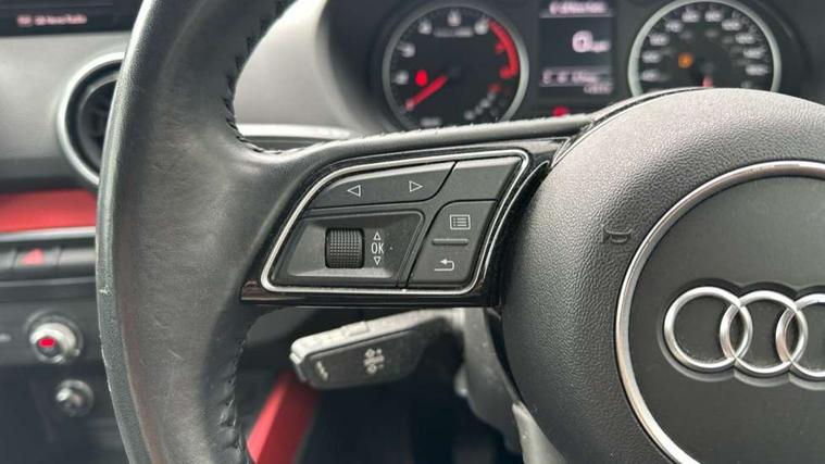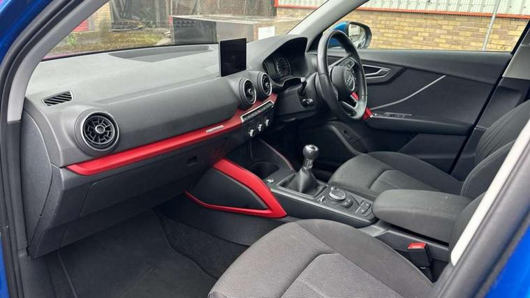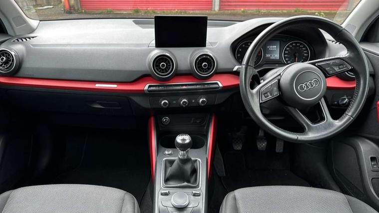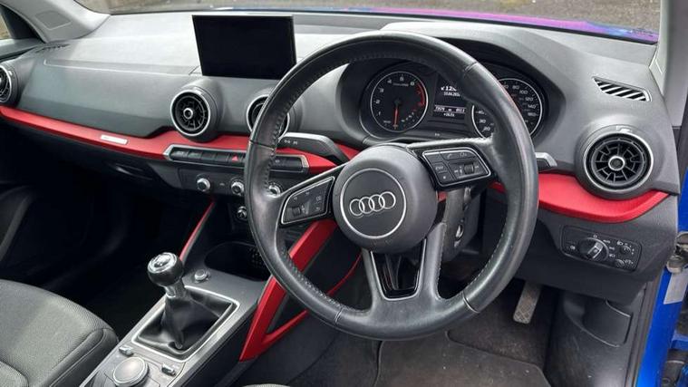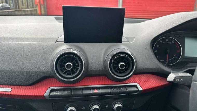 Audi drive select, Audi smartphone interface, Bluetooth hands free telephone connection, MMI - Multi Media Interface control system, MMI SD card Navigation, PAS, Service interval indicator, Voice control system, Dynamic suspension, Audi music interface, Aux input, CD player, DAB digital radio module, MMI radio plus with 7" colour MMI screen and MMI controller, USB port, Body colour door mirrors, Chrome exhaust tailpipe, Door mirror integrated indicators, Electrically adjustable and heated door mirrors, Front and rear electric windows, Rear wiper, Sunband for windscreen, Aluminium door sill trims, Centre console with storage/cupholders, Front and rear door pockets, Front and rear headrests, Front and rear velour floor mats, Front centre armrest, Front sports seats, Glovebox, Height adjustable front seats, Height/reach adjust steering wheel, ISOFIX on front passenger and rear outer seats, Storage compartment in rear centre console, Titanium grey cloth headlining, Non smoking pack - Q2, 3x3 point rear seatbelts, ABS+Electronic Brake force Distribution, Curtain airbags, Driver and passenger airbags, Driver and passenger side airbags, EDL + ASR, Electrically operated child locks on rear doors, Electromechanical parking brake, ESP, Multi-Collision braking, Pre-sense front with pedestrian recognition, Seatbelt warning light, Tyre pressure monitoring system, Warning triangle and first aid kit, Locking wheel bolts, Remote central locking, Thatcham category 1 alarm + immobiliser, Aluminium interior trim,