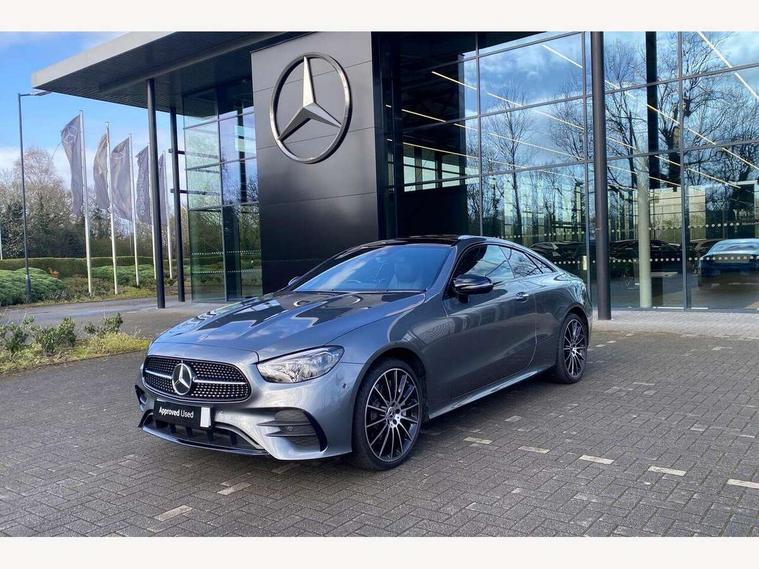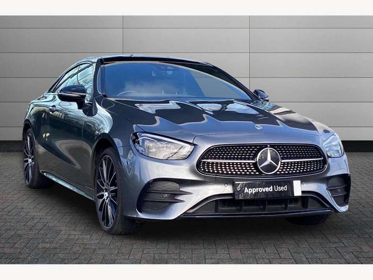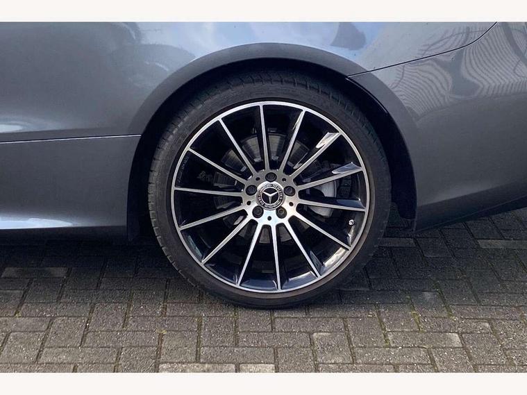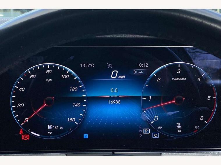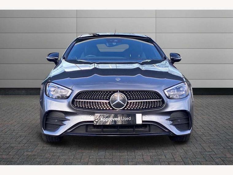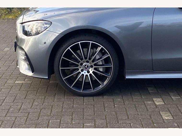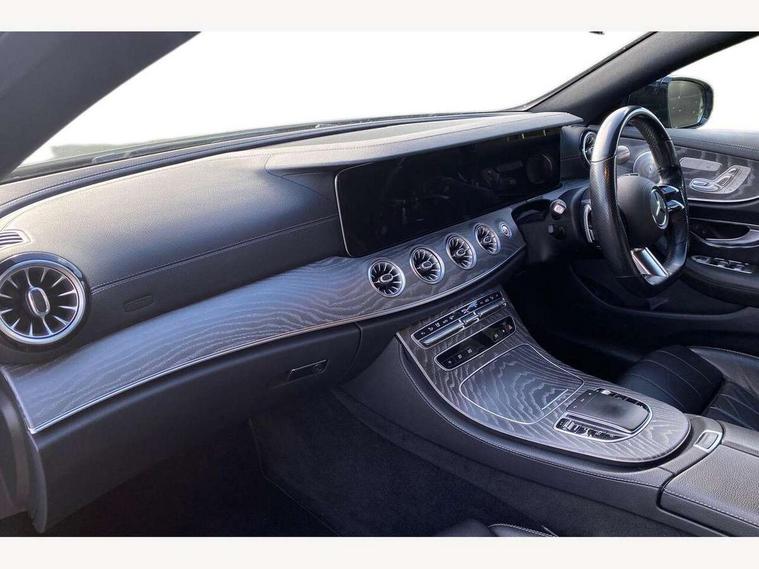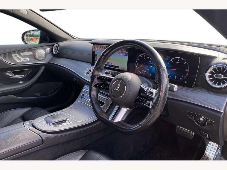 360 degree parking camera, Active parking assist including front and rear parking sensors, Analogue clock, Attention assist, Brake wear warning display, Cockpit display 12.3" widescreen digital instrument cluster, Collision prevention assist plus, Direct steer speed sensitive steering, DYNAMIC SELECT with a choice of driving modes (ECO, Comfort, Sport, Sport+ and Individual), ECO start/stop function, Hey Mercedes Voice activation, High resolution 12.3" multimedia colour display, Mercedes connect me, Outside temperature display, Pre-installation for Vehicle Monitoring, Pre-installation for Vehicle Setup, Remote boot release, Service indicator (ASSYST), Status display for rear seat belts in instrument cluster, Touchpad without controller, Traffic sign assist, Trip computer in multifunction display showing current fuel consumption, 25 litre AdBlue tank, 66 litre fuel tank, 9G TRONIC 9 speed automatic transmission, Agility control sports suspension with selective damping system, Diesel particulate filter, Incorrect fuelling protection, 2 USB ports in centre console, 2 USB ports in the rear, Burmester surround sound system with 13 speakers and a 9 channel amplifier with total output of 590 watts, MBUX multimedia system with DAB digital radio and touchpad including satellite navigation, Smartphone integration via Android Auto/Apple CarPlay, Media Interface, USB and Bluetooth interface and touchpad with control wheel, Adaptive brake lights, AMG bodystyling front and rear aprons in polished aluminium, AMG boot lid spoiler in body colour, Body colour door handles, Body coloured bumpers, Diamond radiator grille with integral star and single louvre in high gloss black, Electric windows with one touch opening/closing and obstruction sensors, Exterior mirrors heated and electronically adjustable, High gloss black exterior mirror housing, High gloss black front apron, High gloss black rear bumper with chrome trim, Illuminated front door sill panels with Mercedes-Benz lettering, LED high performance headlamps, Magic Vision Control heated windscreen wiper system, Panoramic electric glass sunroof, Pre-installation for roof rail systems, Privacy glass Includes rear side windows and rear windscreen, Radio aerial integrated into rear window, Rain sensing windscreen wipers, Rear LED lights, Top surround of side windows in polished aluminium, Visible twin pipe exhaust system integrated into bumper, Waistline strips in high gloss black, 3-spoke flat bottom multifunction AMG steering wheel with Touch Control buttons, trimmed in black nappa leather, 40:20:40 split folding rear seats, Artico man-made leather upper dashboard and beltlines with contrast stitching, Automatic child seat recognition sensor, Belt feeder driver and front passenger seat belt automatically positioned within easier reach, Black door pins, Black roof lining, Central stowage compartment with 12 V socket in centre console, Central stowage compartment with USB socket for use with Android Auto and Apple CarPlay, Centre armrest and door handle illumination, Floor mats with AMG lettering, Front and rear door pockets, Front centre armrest with stowage compartment, Front footwell lights, Glasses compartment in overhead control panel, Glove compartment - lockable, air conditioned and illuminated, Head restraints for driver and front passenger (four-way adjustability)and in rear (two-way), Heated front seats, Interior lighting - 64 colour Ambient lighting, Interior rear light/integral reading lights, Isofix rear child seat fastenings, Leather upholstery, Multi contour front sports seats, Seat occupancy sensor for front passenger seat, Sports pedals in brushed stainless steel with black rubber studs, Steering column manually adjustable for height and reach, Steering wheel gearshift paddles, Sunvisors with illuminated vanity mirrors, THERMOTRONIC automatic climate control system with 3 climate zones, Memory pack - E Class, Mirror pack - E Class, Night package - E Class, Seat comfort pack - E Class, Stowage pack - E Class, 2 x 3-point rear seat belts, Active bonnet pedestrian safety measure which detects an impact and raises bonnet, Adaptive brake system with HOLD function and brake drying in the wet, Adaptive driver and front passenger airbags, Airbags - sidebag for driver and front passenger with combined thorax/pelvis bag, Anti-lock braking system (ABS), Drivers knee airbag, Electric parking brake, Electronic Stability Programme, Front and rear window airbags, Head airbags, Hill hold function, Perforated front brake discs with "Mercedes-Benz" lettering, Seatbelt warning, Tyre pressure monitoring system, Warning triangle and first aid kit, Alarm system/interior protection/immobiliser, Central locking with interior switch, automatic locking and crash sensor with emergency opening function, Chrome surround electric key, Keyless Go entry and starting function, 20" AMG multi spoke design alloy wheels painted in high gloss black with high sheen finish, Run flat tyres,