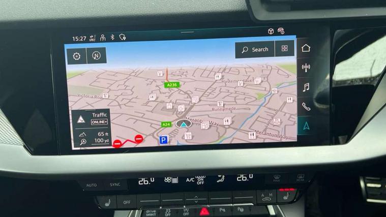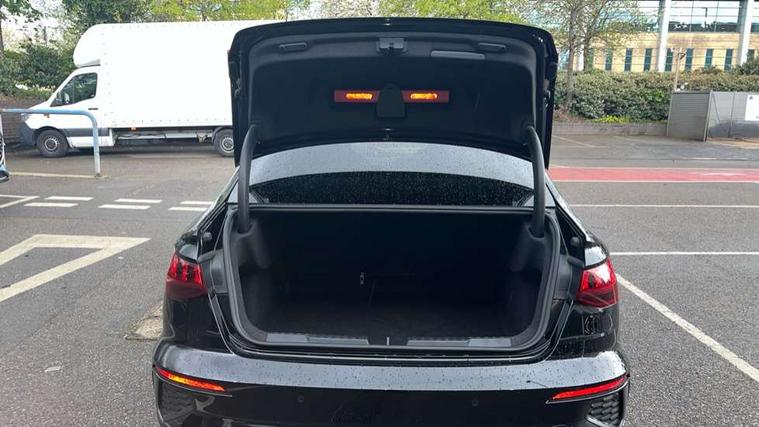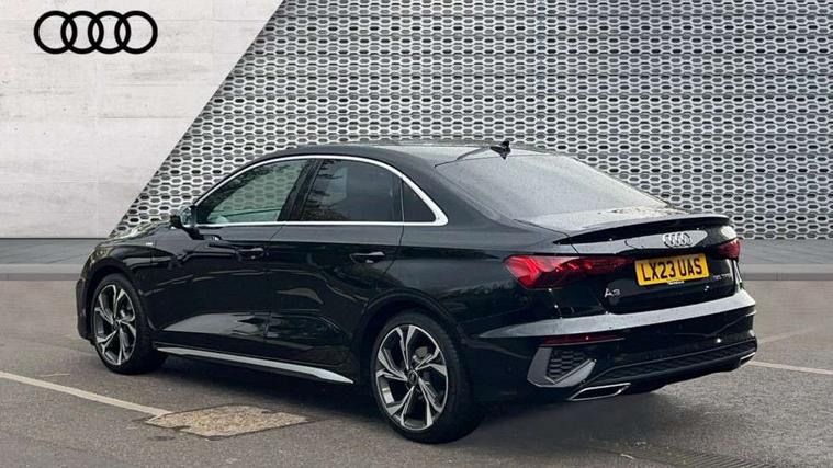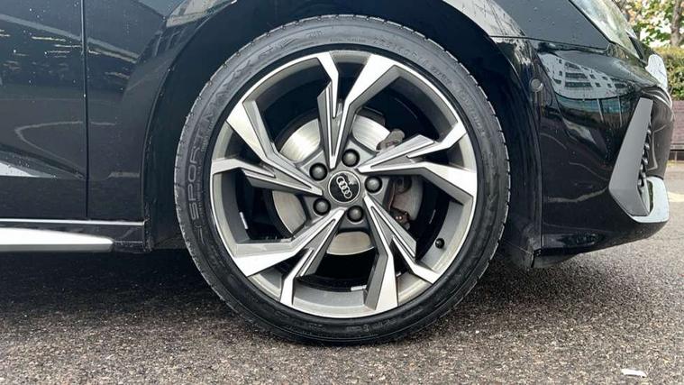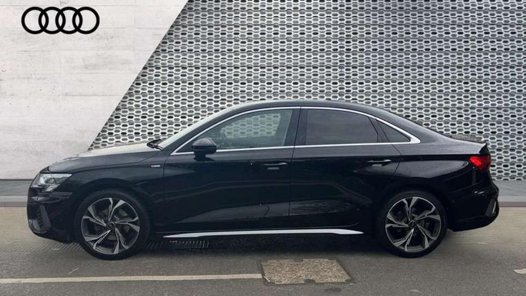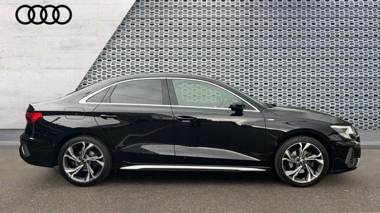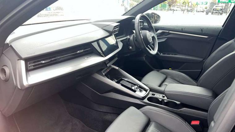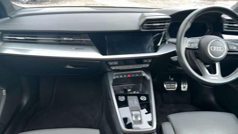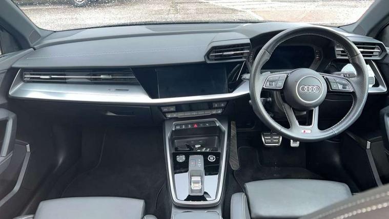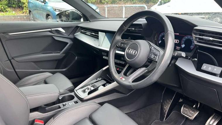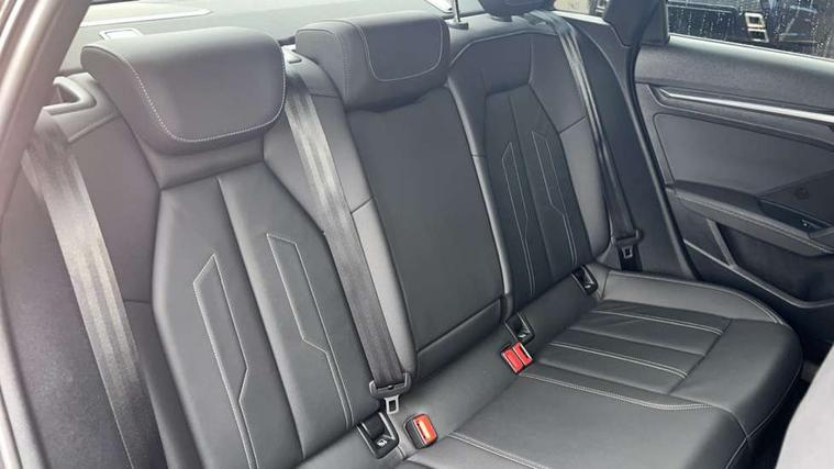 Audi connect emergency call and service, Audi drive select (Auto, Comfort, Dynamic, Efficiency and Individual), Audi smartphone interface, Audi Virtual Cockpit - 10.25" digital and colour instrument cluster, Automatic start/stop system with recuperation, Bluetooth interface, Collision avoidance assistant, Electromechanical power speed sensitive steering, Lane departure warning system, MMI Navigation Plus with high resolution 10.1" colour touch screen display, Service indicator, Voice control system with natural language interaction, Sports suspension, 2x USB Type C ports (for charging and data transfer), 6 passive loudspeakers, CD player, DAB Digital radio, 3rd brake light, Acoustic glass windscreen, Aluminium window trim, Auto dimming frameless rear view mirror, Body colour exterior mirrors, Electrically adjustable/heated/folding/auto dimming door mirrors with integrated LED indications + kerb view function for passenger side, Front electric windows, Illuminated door sills with aluminium inserts at the front with S logo, LED daytime running lights, LED headlights with LED rear lights and dynamic rear indicators, Light and rain sensors, Model and engine designation badges at rear, Privacy glass - dark tinted rear window, rear door and side windows, Rear boot, Rear electric windows, Rear side wing doors, S line bumpers, S roof spoiler, 12V socket and storage compartment in front centre console, 3 seat bench in 2nd row, 3 spoke leather multifunction steering wheel with gear shift paddles, 4 way electrically adjustable lumbar support for driver and front passenger, 60/40 split folding rear seat bench, Black cloth headlining, Dual zone electronic climate control, Front and rear centre armrest in leather, Front and rear headrests, Front/rear floor mats, Height and reach adjustable steering wheel, Interior lighting - glove compartment light and right hand side, Luggage compartment floor covering, Manual boot compartment lid, Manually adjustable front seats, Seat side bolsters, Single front passenger seat, Stainless steel pedals and front footrest in black, Twin leather upholstery with front sports seats S embossed logo, Aluminium interior elements pack - A3, LED interior lighting pack - A3 Saloon, S line styling pack - A3 Saloon, 3x3 point rear seat belts, Driver and front passenger airbag with passenger airbag deactivation, Electronic Stabilisation Control (ESC) including ABS, ASR and EDL, First aid kit with warning triangle and 2 safety vests, Front side airbags with head airbags and interaction airbag, Pre-sense front with pedestrian and cyclist detection, Seatbelt monitoring, Tyre pressure loss indicator, Anti theft alarm, Anti-theft wheel bolts, Electronically operated child locks, Immobiliser, Remote control central locking, Aluminium air vent surrounds, Dark spectrum aluminium inlays, accent surfaces in the dashboard and centre console in platinum grey silk effect paint finish,