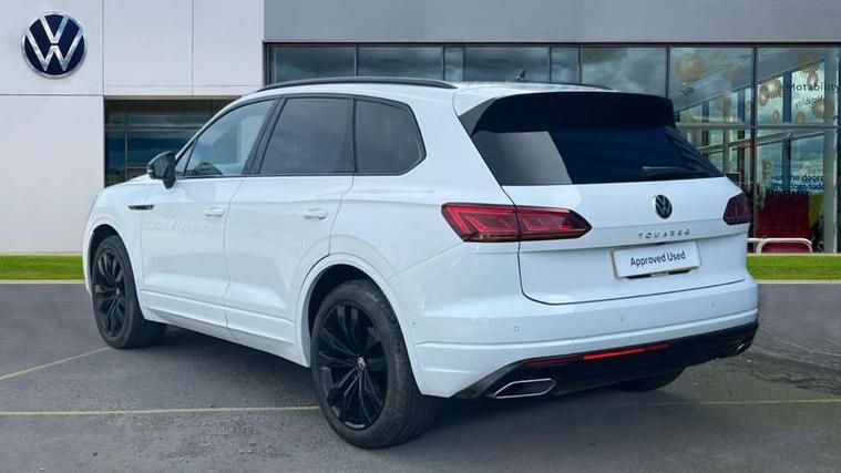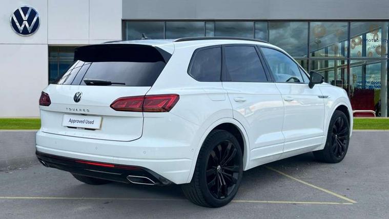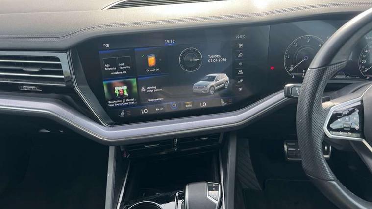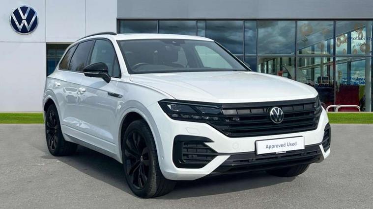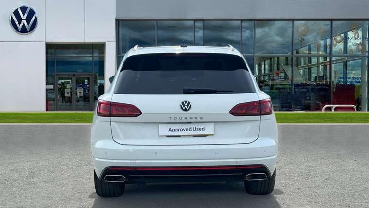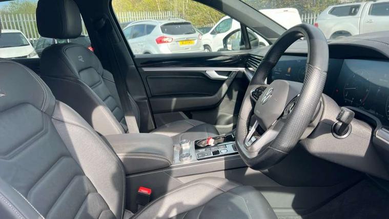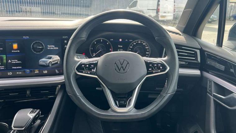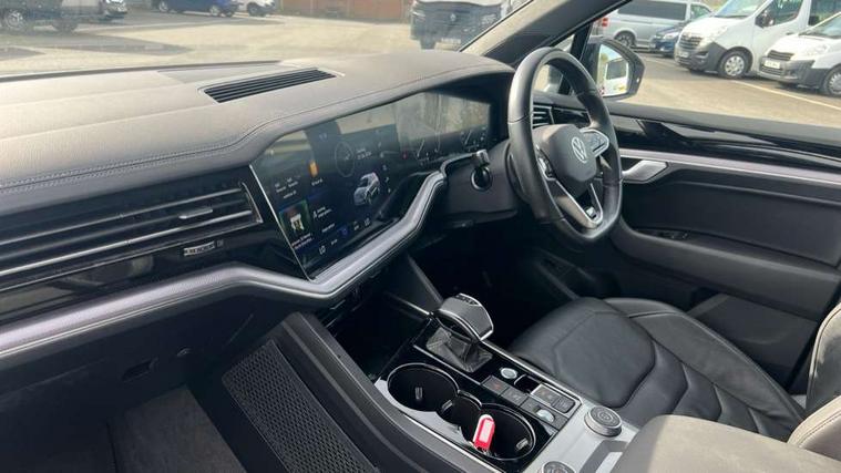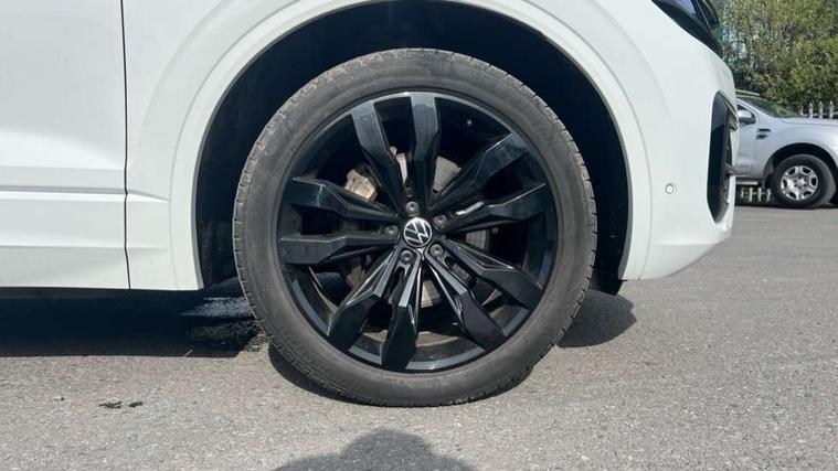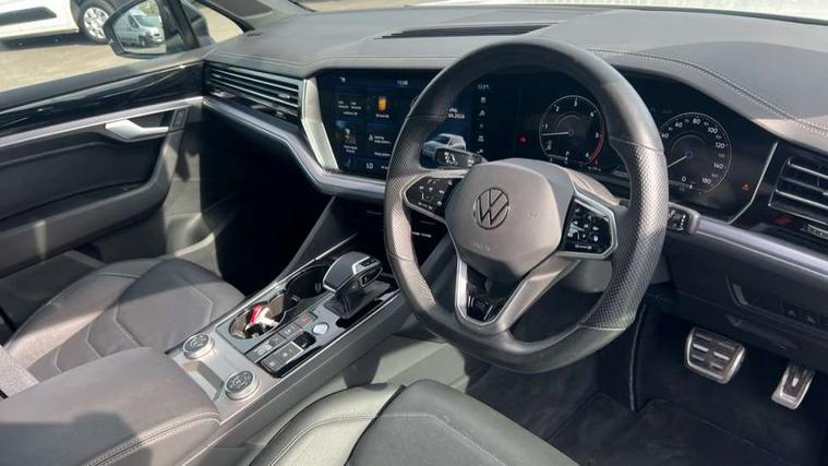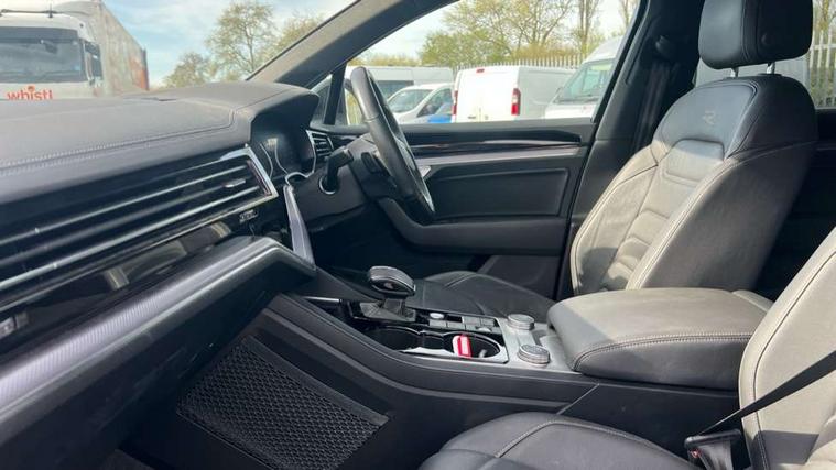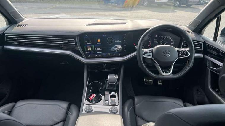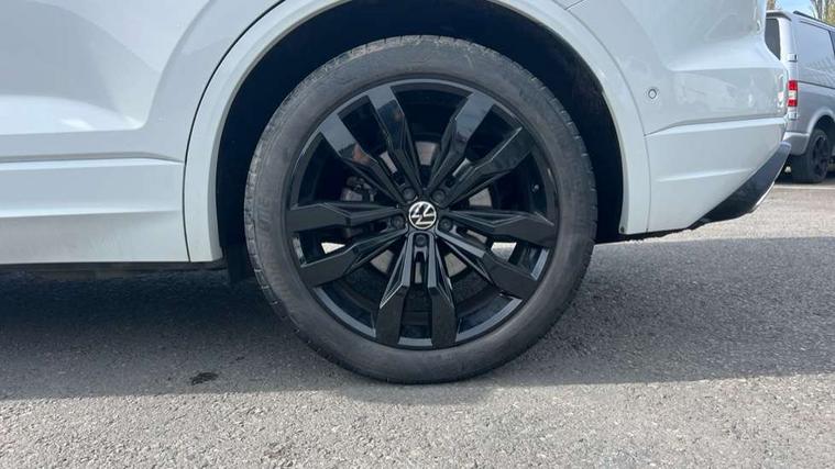 2D/3D map view, ACC - Adaptive cruise control with front assist, forward collision warning, distance monitoring, city emergency brake and speed limiter, Apple car play/Android Auto, Audible and visual fatigue detection system, Bluetooth hands free telephone connection, Car information display, Drive select with Damper control, Driver alert system, Driver profile selection, Dynamic road sign display camera controlled system with visual warning for traffic and road signs, eCall emergency system, Fully electric tailgate + keyless entry and start, Instrument cluster, MirrorLink, Multifunction camera, Multifunction computer premium with 7" colour display, One touch indicators with repeat function, Service interval indicator, Speed sensitive power steering, Start/stop system with regenerative braking, Tailgate power latch, Think blue trainer driver tips and journey analysis, Traffic sign recognition, Voice control system, Wireless Smartphone charger, 24 litre AdBlue tank, Torsen limited slip differential, DAB Digital radio, Dynamic navigation based on TMC+, Gesture control for infotainment system, Multi device interface (MDI) with illuminated USB-C connection, Music playback - MP3, WMA and AAC files, SD card slot, Simultaneous pairing of 2 compatible mobile devices, SMS functionality - read, compose and send SMS messages using touch-screen display, Title and cover art display, Volkswagen media control, Adaptive low beam for urban and motorway use, Auto dimming rear view mirror, Automatic coming/leaving home lighting function, Automatic headlights, Black anodised roof rails, Black door mirrors, Black rear diffuser, Black side window surrounds, Black upper and lower grille louvres extending into headlights and radiator grille, Body colour door handles, Body coloured wheel arches, C signature gloss black front air intake, Chromed tailpipe on the left and right integrated in the bumper with trapezoid design, Dusk sensor, Dynamic headlight range control, Electric front tilt/slide panoramic sunroof and fixed rear sunroof, Electrically power adjustable, heated, folding, auto dimming, front passenger exterior door mirror lowering function, Front and rear electric windows, Galvanised body, Gloss black finish B pillar, Gloss black rear diffuser, Headlight washers, Heat insulating darkened glass in side and rear windows, Heated windscreen washer jets, IQ.Light-LED matrix headlight, daytime running light with dynamic cornering light and indicator, LED 3rd brake light, LED rear fog light, LED rear number plate lights, Plastic scuff plates in door apertures, Poor weather light, Puddle lights, Rain sensor, Rear side wing doors, Rear wiper, 12V socket in front and rear centre console and boot, 2 Coat hooks on B pillar, 3 rear head restraints, 3 seat bench in 2nd row, 3 spoke sport heated leather multi-function sports steering wheel with gear shift paddles - generation 2, 4 way adjustable front head restraints, 4 way electric lumbar support for driver and front passenger, 4 zone climate control, 40:20:40 split folding slide/recline rear seat, B pillar vents, Black lower edge of door extending sills, Branded points of interest, Double sun visor for drivier and passenger with LED illuminated vanity mirrors, Electric luggage compartment cover, Folding rear centre armrest with 2 cupholders, Front + rear carpet mats, Front centre armrest with storage box, Gear shift indicator, Height/reach adjust steering wheel, Illuminated air conditioned glovebox, Isofix preparation for 2 rear child seats, Jack and tool kit, Leather trimmed gear knob with gloss black inlay/aluminum trim, Leatherette door trim, LED luggage compartment lighting, Load through provision, Luggage compartment with load lashing rings, Plastic loading edge protection, Rear seat remote release levers, Single front passenger seat, Soul black headlining, Stainless steel pedals, Innovision cockpit pack - Touareg, 3 point front seatbelts with pre-tensioners, ABS, Active bonnet, Automatic post collision braking system, Curtain airbags, Driver/Front Passenger airbags, EBD + Brake Assist, EDL, Electronic parking brake with auto hold, ESC with ASR, Front seat side impact airbags, Hill descent control, Hill start assist, Passenger airbag deactivate switch, Seatbelt warning lamp and buzzer, Three 3 point rear seatbelts, Two tone horn, Volkswagen roadside assistance, Warning triangle and first aid kit, Alarm with interior monitoring in cab, backup horn and towing protection, Child security locks for front and rear doors, Electronic engine immobiliser, Remote central locking, Black decorative trims on the side windows, High gloss black centre console,