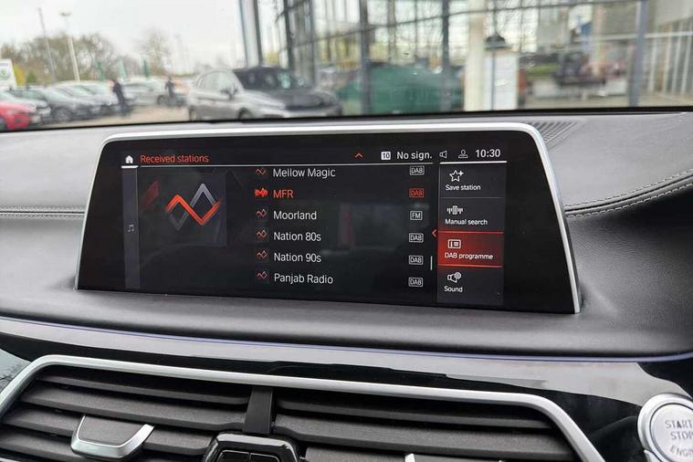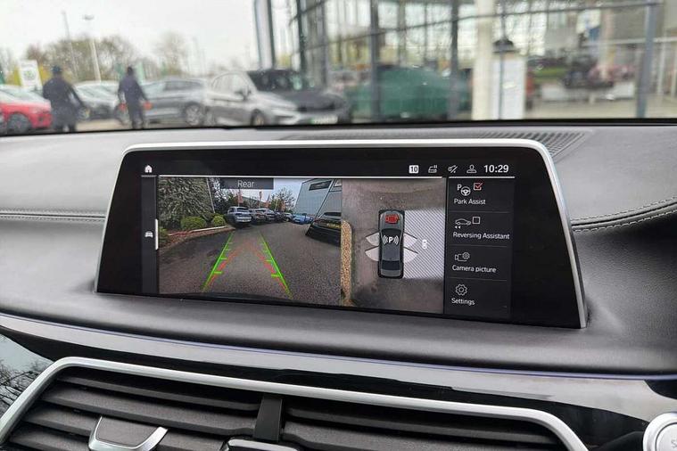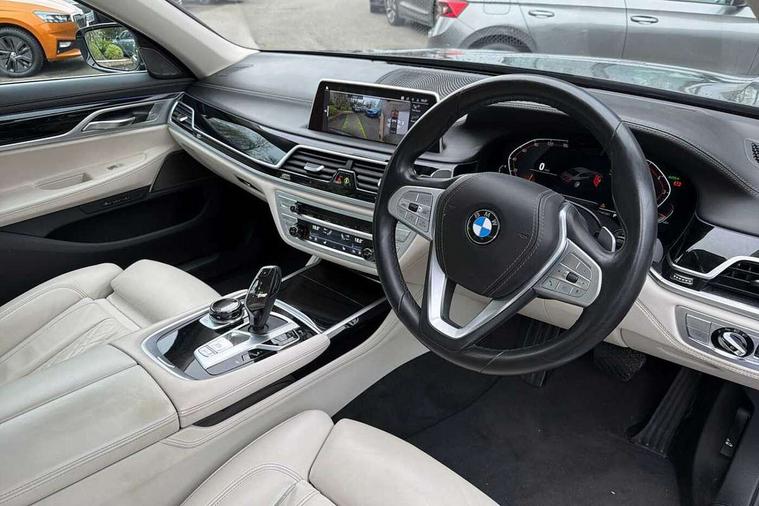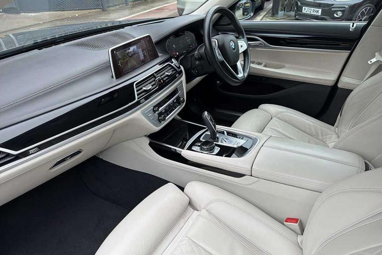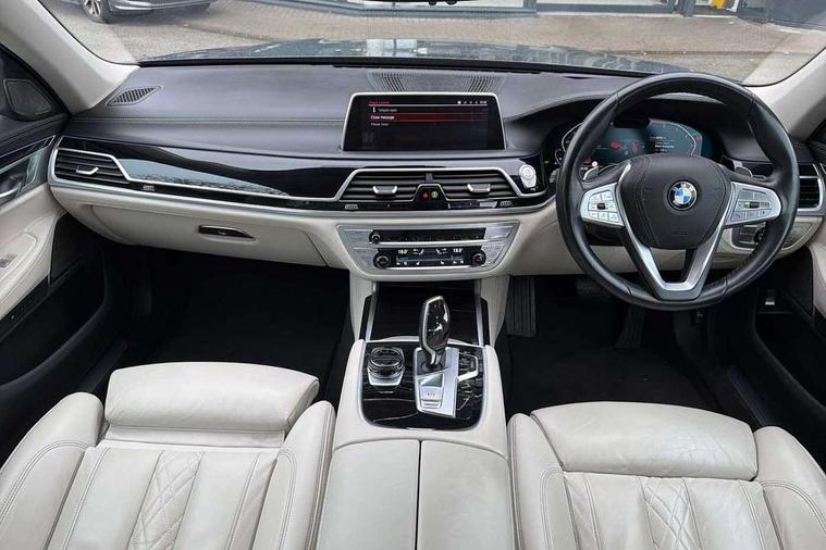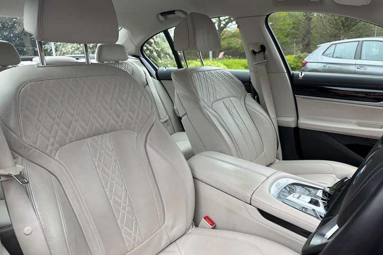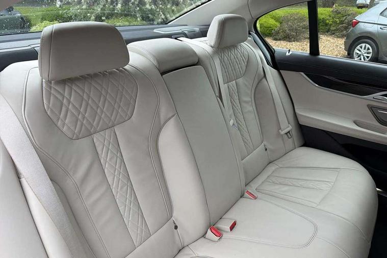 10.25" display screen, 20GB hard disc drive (HDD) memory, Active Guard incl speed limiting and lane departure functions with auto steering, and front collision warning with brake intervention, Average speed gauge, BMW apps interface, BMW ConnectedDrive - Online, BMW display key, BMW gesture control, BMW information plus, BMW legal emergency call, BMW Live Cockpit Professional sat nav system including 10.25" high resolution display and Intelligent Voice Assistant, BMW Teleservices, Brake force display, Brake pad wear indicator warning light, Colour information display, Comfort access system with smart opener, Condition based service, Cruise control with brake assist, Driving experience control with adaptive mode, Engine start/stop button, Enhanced bluetooth with wireless charging, Fuel consumption and range, iDrive touch controller with shortcut buttons, Integrated owner's handbook, Lights on warning, Multifunctional instrument panel, Oil sensor for level and grade, On board computer, On-board diagnosis - OBD, Outside temperature gauge, Park distance control, Personal Profile, Powered bootlid operation, Run flat indicator, Service indicator, Servotronic PAS, Smartphone wireless charging plate, Speed limiter, Trip computer, Wifi hotspot preparation, 2 Axle air suspension, Anti roll bar front and rear, Double wishbone front axle, Dynamic Damper Control, Integral rear axle, Petrol Particulate Filter, Sport automatic transmission, DAB Digital radio, Favourite buttons, All round anti-corrosion system, Auto dimming rear view mirror, Automatic headlights, Body colour bumpers, Body colour door mirrors, Carbon core - innovative lightweight construction with highly rigid and light carbon elements, Chrome kidney grill struts in front and side, Dynamic brake lights, Electric front and rear windows with fingertip open/close + anti-trap all round and comfort closing function, Electric heated door mirrors, Exterior mirrors - electrically folding with anti-dazzle, Follow me home headlights, Heated windscreen washer jets, High beam assistant, i designation on front side panels, left and right, Interior mirror, LED daytime driving lights with front and rear active, LED front and rear fog lights, LED rear lights, Left and right single chrome quadrilateral exhaust tailpipes, Model logo, Outer door handle illumination, Rain sensor + automatic driving lights control, Third brake light, Welcome lighting, 12V power sockets, Ambient interior lighting, Battery in luggage compartment, Centre console with armrest, Driver + front passenger electric lumbar support, Electric seat adjustment with memory, Footwell courtesy lights front and rear, Four zone automatic air conditioning, Front and rear cupholders x 2, Front and rear reading lights, Front and rear seat heating, Front armrest, Front comfort seats, Glove compartment, Grab handles, Isofix child seat mounting, Lashing eyelets in boot, Lockable glovebox, Microfilter and active carbon filter, Reach and rake adjustable steering column, Rear centre console, Rear headrests, Soft close doors, Storage options, Sun visors, Three spoke M sports leather multifunction steering wheel, Velour floormats, Connected Package Professional - 7 Series, Non smokers pack - 7 Series, Parking Assistant Plus - 7 Series, Pure excellence exterior design pack - 7 Series, Active protection, Advanced Head Protection System front + rear, Anti-lock braking system (ABS), Anti-whiplash front headrests, Automatic Stability Control (ASC), Brake assist function, Brake energy regeneration, Comfort exit stepless door brake, Cornering brake control, Crash Sensor - activates hazard/interior lighting + unlocks doors, Deformation zones - front and rear with door reinforcements and bumpers up to 2.5 mph, Driver and front passenger airbag with front passenger airbag deactivation, Driver/front passenger side airbags, DSC - Dynamic Stability Control, Dynamic brake control, Dynamic safety, Dynamic Traction Control - DTC, EBD - Electronic brakeforce distribution, Electromechanical parking brake + auto hold function, Engine drag torque control, Front and rear brake discs with interior ventilation, Front seatbelt pretensioners with force limiters, Head airbags for first and second row seats, Mechanical child proof lock on rear doors, Rear airbags, Side impact protection, Three inertia reel rear seatbelts, Three point rear seat belts, Two tone horn, Tyre pressure monitoring system, Warning triangle and first aid kit, Electronic vehicle immobiliser, Locking wheel bolts, Remote central locking, Thatcham Cat.1 alarm, Ceramic finish for controls, Leather instrument panel,