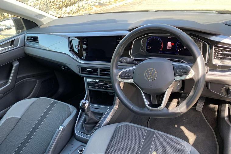 Adaptive cruise control without follow-to-stop and speed limiter, Bluetooth mobile phone interface, Digital Cockpit Pro with 10.25" Display, Driver alert system, Dynamic road sign display, Emergency call service, Power assisted speed sensitive steering, Preparation for We connect and We connect plus, Speedo and rev counter, electronic odometer, trip, service interval display and fuel gauge, Standard rear axle, Travel Assist - Lane keeping system and traffic jam assist, Travel assist including emergency assist, Trip computer, Warning signal and warning light for front and rear seatbelts not fastened, Washer fluid level indicator, Wireless app connect, Front wheel drive, Rear shock absorpion, Start-stop system with battery regeneration (recuperation - energy recovery during braking), DAB Digital radio, Diversity antenna for FM reception, Front and rear 6 speakers, Automatic dimming interior rear view mirror, Automatic headlights, Body colour door handles, Body coloured bumpers and radiator grille with chrome trims, Electric front windows, Front fog lights with static cornering function, Heat insulating darkened glass in side and rear windows, Heat insulating glass windscreen, LED separate daytime running lights with coming/leaving home function, Power folding adjustable/heated exterior mirrors and front passenger exterior mirror lowering function, Rain sensor, Rear electric windows, Rear fog light, Rear side wing doors, Rear windscreen washer and wiper with interval delay, Third brake light, 12V power socket in centre console, 2 USB-C ports in the front, 2 USB-C charging sockets on the center console in the rear, 3 rear head restraints, 60/40 split folding rear seat and rear seat bench not split, Air care climatronic air conditoning system with active combination filter and 2-zone temperature control, Ambient lighting, Ceramique headliner, Chrome plated radiator grille inserts, air vent surrounds and light switch surrounds, Door and side trim panel, Driver and front passenger seat height adjustment, Driver/passenger sunvisors with illuminated vanity mirrors, Front + rear carpet mats, Front centre armrest, Front footwell illumination, Front seat backrest storage pockets, Front sports comfort seats, Handbrake lever handle in leather, Isofix child seat preparation easy-fit (for two outer rear seats, and front passenger seat) compatible with I-size, Leather trimmed gear knob, LED interior light with switch off delay and dimmer, 2 reading lights front and rear, Luggage compartment cover, Luggage compartment floor, Luggage compartment lighting, Lumbar adjustment for front seats, Multifunction steering wheel, Single front passenger seat, Standard pedal cluster, IQ LED matrix headlights pack - Polo, Light and vision pack - Polo, 3 point height adj front seatbelts + pretensioners, 3x3 point rear seatbelts, ABS, Driver and front passenger airbag with front passenger airbag deactivation, Drivers and front passengers safety optimised head restraints, ESC (Electronic stability control) + EDL (Electronic Differntial lock) and ASR (Traction control), Extended and predictive pedestrian/ cyclist protection, Front curtain and side airbags with center airbag, Front disc brakes, Hill hold control, Manual child lock in rear doors, Rear drum brakes, Single tone horn, Tyre pressure loss indicator, Alarm with interior protection, Anti-theft alarm system with interior monitoring, backup horn, and towing protection, Anti-theft wheel bolts, Electronic engine immobiliser, Chrome applications on rotary light, mirror adjustment, window regulator switches, outlet with frame in black, Deep iron gloss decorative inserts in dash and front door panels, Low rolling resistance tyres,