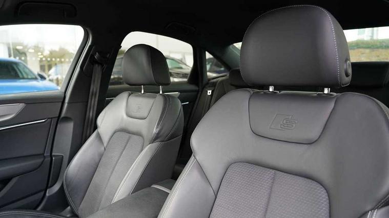 7" high resolution colour driver information display system, Audi connect safety and service (e-call), Audi drive select, Audi parking system plus - acoustic and visual park assist system for front and rear, Audi smartphone interface, Automatic start/stop system with coasting functionality, Bluetooth interface, Electric boot lid release, Lane departure warning system, MMI navigation with MMI touch + twin touch screens 8.8" and 8.6" with haptic and acoustic feedback, Progressive steering, Rear view camera, Service interval indicator, Voice control system, 12V Mild hybrid, Quattro on demand, Sports suspension, Audi music interface, Audi sound system, Auxiliary input socket, DAB Digital radio, USB connection, Body coloured door mirrors, Electric front/rear windows, Frameless auto dimming interior rear view mirror, Headlight washers, Heat insulating darkened glass in side and rear windows, Heat insulating glass in windshield, LED rear lights, LED signature front daytime running light, Matrix LED headlights with dynamic rear indicators, Matt black side air intake grille with inlay in matt aluminium, Privacy glass, Radiator grille in titanium black matt, single frame in chrome and horizontal struts in matt aluminium silver, Rain and light sensors, S line air inlet design with inlay in matt aluminium, S Line badge on front fender, S Line front and rear bumpers, S line rear diffuser and grille in matt black with matt aluminium tailpipes, S Line side skirts, Signature rear LED light design, 2 zone deluxe electronic climate control, 4 way electric lumbar support for driver and front passenger, 40/20/40 split folding 3 rear seat bench in 3 parts with rear centre armrest, Black cloth headlining, Electrically adjustable front seats with driver memory, Front centre armrest, Front head restraints, Heated front seats, Height/reach adjust steering wheel, Illuminated door sill trims with S logo, Illuminated sun visors with vanity mirrors, ISOFIX child seat mounting and Top Tether with front passenger airbag deactivation, Leather gear knob, Rear headrests, S line front and rear floor mats with contrast stitching, Stainless steel pedals and foot rest, Tool kit and car jack, LED Interior Ambient Lighting Pack - A6, Non smoking pack - A6, 3 point seatbelts on all seats, Airbags - Front side, front and rear including head, Audi pre-sense front, EBD - Electronic brakeforce distribution, Electromechanical parking brake, Electronic Stability Control (ESC) including ABS, ASR and EDL, Extended pedestrian protection measures, Seatbelt monitoring, Tyre pressure warning light, Warning triangle and first aid kit, Anti theft alarm with tow away protection, Anti-theft wheel bolts and wheel loosening detection, Immobiliser, Keyless Go, Remote central locking, Black seatbelts, Matt brushed aluminium dark inlays,