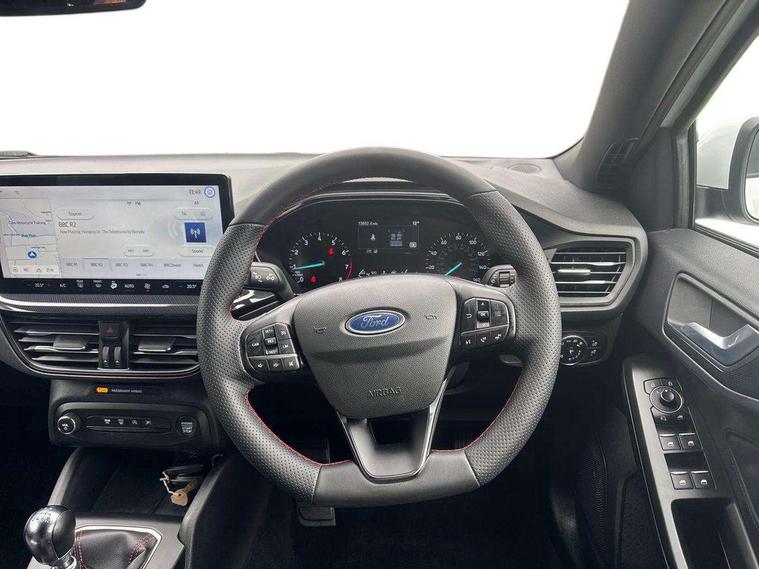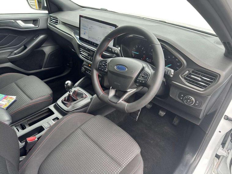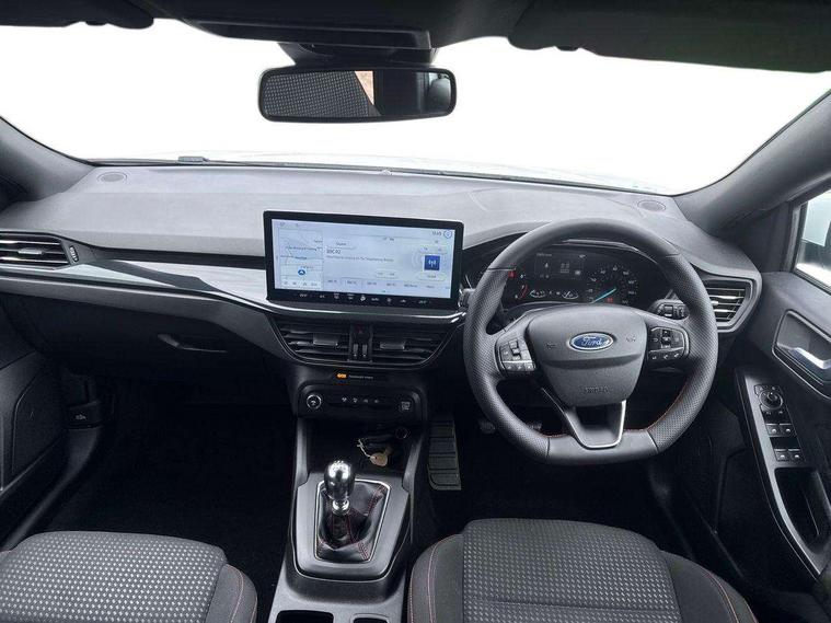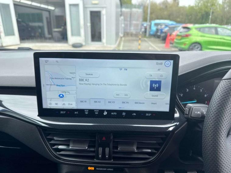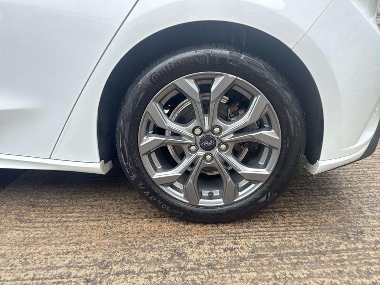 4.2" Colour TFT Ice blue illumination analogue cluster with trip computer, Bluetooth system, Digital clock, Easy fuel capless refuelling system, Eco mode, Ford SYNC 4 Navigation with 13.2'' touchscreen, DAB radio, Emergency Assistance, Apple Carplay & Android Auto, 6 speakers & FordPass Connect, Lane keeping system - lane keeping alert and lane keeping aid, PAS, Rev counter, Selectable drive mode, Service interval indicator, Sports tuned suspension, 2 USB ports, Auto headlamps (on/off), Body coloured door handles, Electrically operated front and rear windows with one touch opening and closing, Electrically operated heated power fold door mirrors with puddle lamp with side indicators, Front variable intermittent wipers with electric wash, Full fixed LED headlamps, Heated rear window, LED daytime running lamp, LED rear lamps, LED third brake light, Polished twin tailpipe, Privacy glass, Quickclear heated windscreen, Rain sensor, Rear side wing doors, Tailgate wash/wipe, Unique ST-Line grille, full bodystyling kit, and large body coloured rear spoiler, 3 rear headrests, 3 seat bench in 2nd row, Cloth upholstery, Dual zone electronic air temperature control, Height adjustable front headrests, Isofix child seat preparation, Reach + rake adjustable steering column, Single front passenger seat, 3x3 point rear seatbelts, ABS+Electronic Brake force Distribution, Auto hold function, Driver airbag, EDL traction control, Electronic parking brake, Electronic stability control, Front and rear seatbelt reminder, Front inertia reel height adjustable seatbelts with pre-tensioners, Front passenger airbag, Front side airbags, Passenger airbag deactivate switch, Post collision braking, Pre collision assist with autonomous emergency braking and pedestrian/cyclist detection, Remote/power child rear door locks, Side curtain airbags, Three rear inertia reel lap/diagonal seatbelts, Tyre pressure monitoring system, Keyless entry and keyless start, MyKey system, Remote central locking & engine immobiliser, Thatcham alarm with power door dead locks, 17" 5 spoke Rock mettalic finish alloy wheels with mini spare wheel,