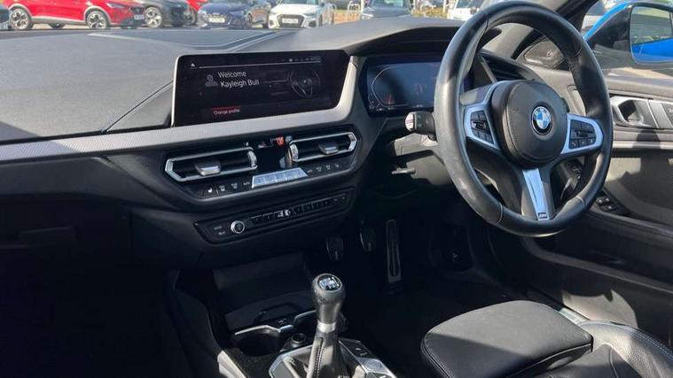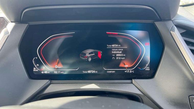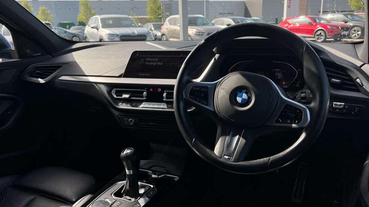Active guard plus, Attentiveness assist, BMW Online services, BMW Teleservices, Check Control warning system for monitoring of lights and door/luggage compartment open warning, Connected eDrive Services, Cruise control with brake assist, Eco pro mode, Electric power steering with Servotronic steering optimised at all speed ranges, Integrated owners handbook, Lane departure warning system, Oil sensor for level and grade, On board computer, Optimum shift indicator, Personal Profile, Pull away assistant, Speed limiter, 6 speed manual transmission, Aluminium lightweight construction, Anti roll bar front and rear, Balancer shaft, Diesel particulate filter, Drive Performance Control, Electronic differential lock, M sports suspension + self levelling, Bluetooth audio streaming, DAB Digital radio, Auto dimming rear view mirror, Automatic headlight beam throw control, Body colour door handles, Body colour mirror caps, Chrome 'M' logo side designation, Chrome exhaust tailpipe in single, round (Exhaust tailpipe, stainless steel - single, round), Chrome kidney grille frame with Satin Aluminium struts, Direction indicator side lights in exterior mirrors, Electric folding and anti dazzle exterior mirrors, Fading support, Follow me home headlights, Front and rear electric windows with open and close fingertip control, anti trap facility and comfort closing, Front bumper in Body colour with exclusive Sport air inlets finished in High gloss Black, Front door sill finishers in black plastic with BMW designation, Green tinted heat protection glazing, Heated, electrically adjustable exterior mirror aspheric on driver side, convex on passenger side, High gloss shadow line exterior trim, High gloss shadowline window frame, Recess cover mirror frames and B/C pillar embelisher trim, High level third brake light, LED daytime running lights, LED eyebrow turn indicators, LED front fog lights, Lightweight engineering, Matt black air guide grilles, Model designation on right side of tailgate, Nearside reverse light in rear light cluster, Preparation for high beam assistant, Rain sensor including auto headlights activation, Rear bumper in Body colour with exclusive Sport design elements finished in High gloss Black, Rear fog lights, Rear window wiper, Shark fin antenna, Visible VIN plate, Welcome lighting, Windscreen wipers with integrated washing jets, 12V power socket in centre console, 2 cupholders in front centre console, 3 rear seat head restraints, 3 spoke M sports design leather steering wheel finished in nappa leather with specific M badge, Anthracite headlining, Anthracite Velour floor mats, Child seat ISOFIX attachment for two outer rear seats and front passenger seat with anchorage points, Conditioned based service, Dakota leather upholstery with perforation and contrast stitching, Driver and front passenger seat heating, Driver side folding compartment in instrument panel, Folding rear clothes hook, Folding rear seats, Four grab handles integrated in roof lining, Front and rear door pockets, Front and rear side armrest integrated into door trim, Front Armrest foldable with integrated storage compartment, Front sports seats with electric side bolster adjustment, Gearshift lever with M designation, Glove compartment, Height adjustable front head restraints, Manual adjust steering wheel, Multi-function controls for steering wheel, Rear seat backrest with manual 60:40 split folding with 3 top tether clips integrated on rear of seat panels, Storage compartment in centre console, Sun visors with vanity mirrors and insert tab, Two zone automatic air conditioning, Connected pack professional - 1 Series, Extended Lighting pack - 1 Series, Extended storage pack - 1 Series, Interior lights pack - 1 Series, Luggage compartment pack - 1 Series, M Sport exterior styling aerodynamics pack - 1 Series, 2 tone horn, 3 point seatbelts on all seats, front pyrotechnic belt tensioners, stopper and belt force limiters, rear coded belt buckles, Airbags - Front driver and passenger, front and rear head, front side, curtain head protection, Anti lock braking system (ABS) with brake assist, BMW emergency call, Brake drying, Braking readiness, City braking function, Crash sensor activating central locking release, hazard warning lights, fuel cut off, interior lighting + activation of safety battery terminal clamp, Driver and front passenger seat belt security check, Dynamic stability control + (DSC+), Dynamic Traction Control - DTC, Electrically operated hand brake, Front and rear disc brakes, Front passenger manual airbag deactivation, Rear child proof door locks, Seatbelt warning, Side impact protection, Tyre pressure monitoring system, Warning triangle and first aid kit, Automatic drive away locking facility, Central locking switch for all doors, fuel filler cap and luggage compartment, Deadlocking function system to all doors, Incorrect fuel protection system, Locking wheel bolts, Remote control with integrated key with High-gloss Black inlay and M designation and 1 button for open/ close lock, window, open luggage compartment, Start/stop button with comfort go keyless engine start and auto start stop deactivation button, Thatcham Cat.1 alarm and immobiliser, Contrast stitching on instrument panel, Reduced rolling resistance tyres,