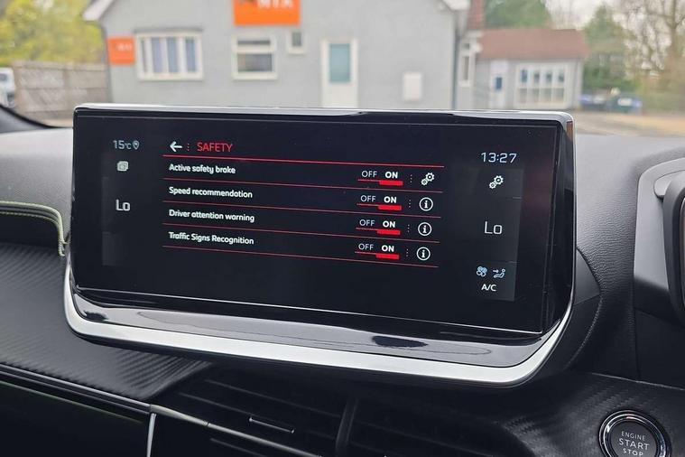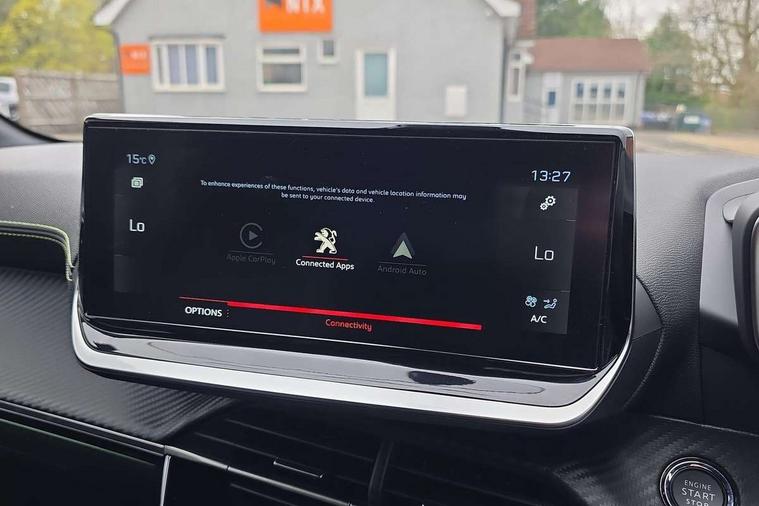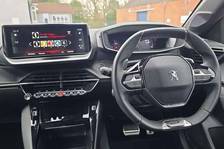 10" Capacitive colour touchscreen with connected 3D navigation, Bluetooth telephone facility, Driver attention warning, e-Toggle driving selector, Exterior temperature indicator with ice warning, Mirror screen with mirror link, apple carplay and android auto, Multi function trip computer, PEUGEOT i-Cockpit with compact steering wheel, PEUGEOT i-Cockpit with configurable 3D headup instrument panel, PEUGEOT SOS and assistance, Push button start, Smart phone docking station, Speed limit recognition and recommendation, Start/stop system, Visio park assist 180 with colour reversing camera + front and rear parking sensor, 2 front USB socket with USB-C, 2x USB sockets in rear, 6 speakers radio with mp3 compatible, DAB Digital radio, Voice recognition for radio, navigation and telephony features, 2 X Rear number plate lights, Automatic hazard light activation upon heavy brake application, Automatic lights, Automatic windscreen wipers, Body coloured exterior door handles, Dark tinted rear side and tailgate windows, Diamond Black roof, Electric front windows + one touch + anti-pinch, Electric rear windows with one touch/anti-pinch, Electrically adjustable, heated and power folding door mirrors, Extended diamond black rear spoiler, Follow me home headlights, Frameless electrochrome interior rear view mirror, Full LED headlights with smartbeam assist, Gloss black finish on B pillar, Gloss black rear cluster connecting strip, Gloss black wheel arch extensions, Gloss black window surround, GT model designation badging on C pillar, GT model designation badging on tailgate, Headlights left on audible warning, LED daytime running lights with 3 claw headlight with distinctive tooth design, LED side indicator lights integrated into door mirrors, LED third brake light, Model designation badges front and rear, Nera black door mirror shells, Peugeot scuff plates, Radiator grille - Dark chrome chequered and gloss black edge trim, Rear bumper with gloss black finish, Rear full LED 3D peugeot signature claw effect lights with daylight function, Rear lower bumper diffuser effect trim in gloss black, Rear reversing lights, Rear side wing doors, Rear windscreen wiper triggered automatically in reverse gear, Roof mounted aerial with fin design, Roof spoiler, Tailgate with heated rear windscreen and wiper blade, Twin chrome exhaust tailpipes, Variable front intermittent wipers, 1/3 to 2/3 split folding rear seats, 12V socket, 3 seat bench in 2nd row, 8 Colour personalisable ambient lighting, Aluminium pedals and foot rest, Automatic air conditioning, Automatic gear lever in full grain leather and satin chrome, Driver and front passenger seat manual adjustment in longitudinal and back rest angle, Driver and front passenger seat mechanical height adjustment, Driver and front passenger sport seats, Electric power steering with reach and rake adjustable steering column, Front and rear carpet mats in black with lime green stitch detail, Front centre armrest with storage compartment, Front LED interior light with 2 reading spotlights and rear interior light with timer, High centre console with 2 cup holders, ISOFIX child seat mounting points on passenger seat, Lime green contrast stitching to armrest, front centre console, door panels and dashboard facia, Map pockets on the backs of the front seats, Mistral full grain perforated leather steering wheel with aikinite stitch detail and satin chrome 'GT' emblem, Paddle shifts, Piano keys gloss black plated toggle switches to access main functions of the vehicle, Piano keys gloss black plated toggle switches to access touchscreen functions, Push button finished in black with chrome circle, Rear centre headrest, Roof lining - Mistral black, Seatbelt unfastened on the move audible and visual alert for front and rear seats, Single front passenger seat, 3 rear 3 point seatbelts, ABS (Anti-lock Braking System) with EBD (Electronic Brakeforce Distribution) and EBA (Emergency Braking Assistance), Active safety brake with night function/cyclists/pedestrians, Adaptive driver and front passenger airbags with passenger airbag deactivation function, Child locking functionality on rear doors, Driver/front passenger side airbags, Electric parking brake, ESP with Hill Assist, Front and rear curtain airbags, Front and rear disc brakes, Front optimised safety headrests and 3 x rear retractable headrests with height adjustable, Front three point retractable seatbelts with force limiters, Tyre pressure sensor, Acoustic vehicle alert system (AVAS), Automatic door locking when moving off, Deadlock, Electronic code immobiliser, Remote central locking, Thatcham cat. 1 alarm with anti lift sensor, Carbon effect Dashboard, front and rear door panel finish, 17" Bronx two-tone alloy wheels, Space saver spare wheel,
