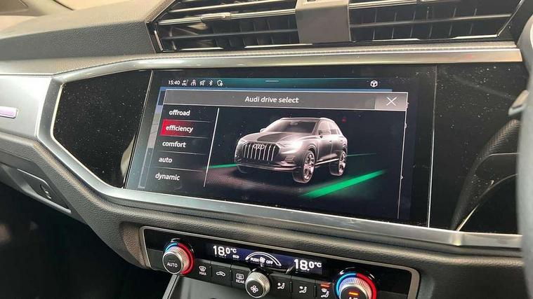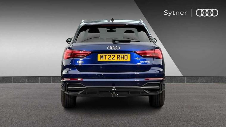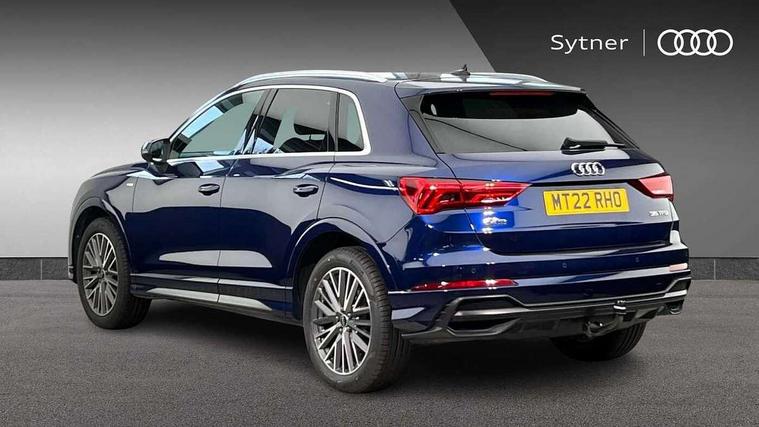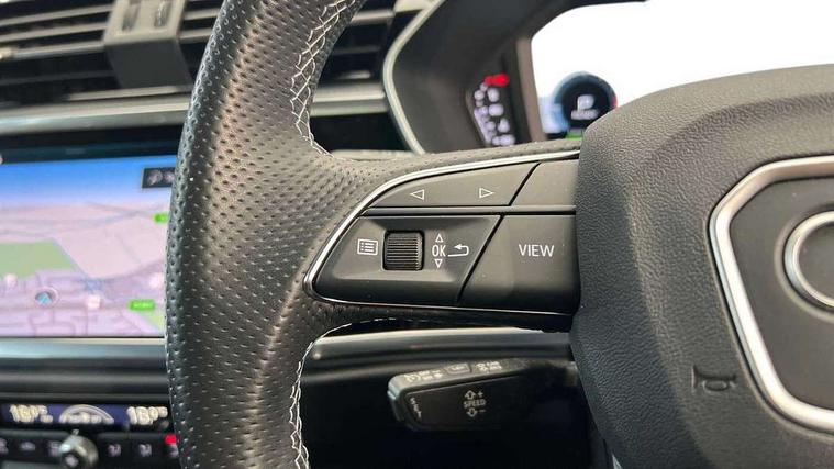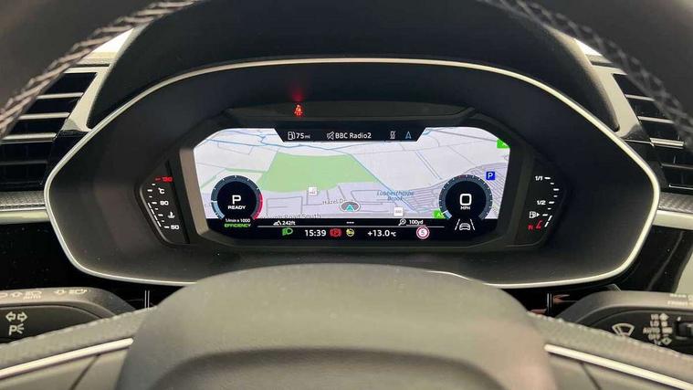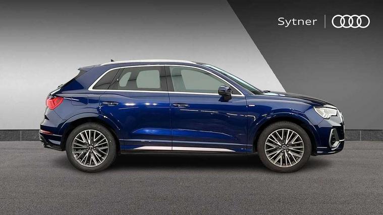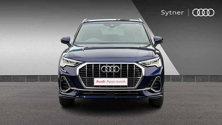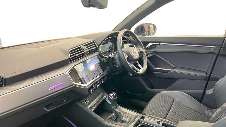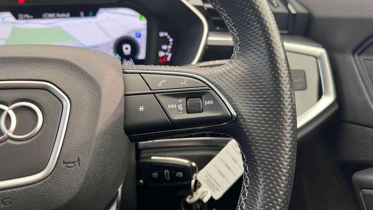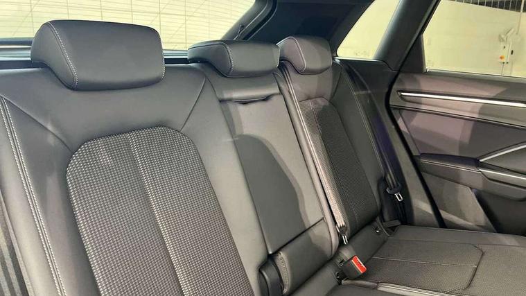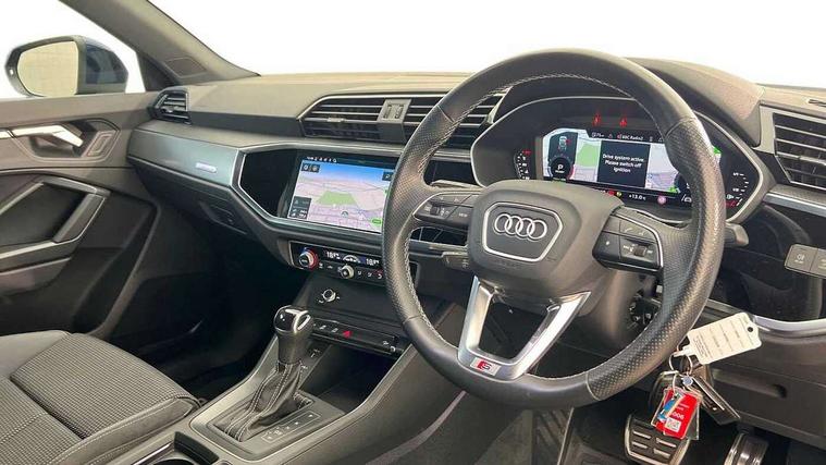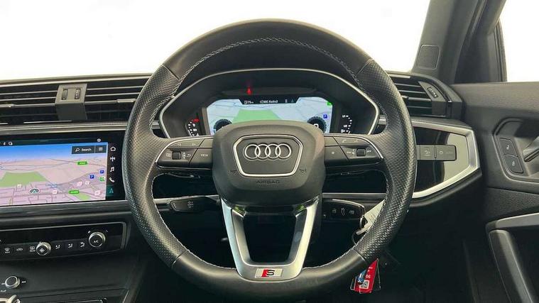 Amazon alexa Integration, Audi connect safety and service (e-call), Audi drive select, Audi lane departure warning, Audi Virtual Cockpit - 10.25" display, Bluetooth interface, Camera based traffic sign recognition, MMI Navigation Plus with high resolution 10.1 inch touchscreen colour display, Power operated tailgate, Progressive steering, Service interval indicator, Smartphone interface includes wireless Apple carplay/Android Auto, Start stop system with recuperation, Voice control system with natural language interaction, 48V Mild hybrid technology, Sports suspension, 2 USB-C ports with charge and data functions, 6 passive loudspeakers, DAB digital radio module, Acoustic windscreen, Aluminium roof rails, Aluminium window trim, Auto dimming frameless rear view mirror, Body coloured bumpers, Electrically folding, adjustable and heated door mirrors with integrated LED side indicators and kerb view function for passenger side, Front and rear electric windows, Front fog lights, Front side air inlets in matt platinum grey, Front spoiler blade in matt platinum grey, Grille vertical bars in aluminium silver/Matt, High gloss black finish B and C pillars, LED headlights with LED daytime running lights, LED rear lights, LED third brake light, Privacy glass dark tinted rear and rear-side windows (from B-pillar backwards), Rain and light sensors, Rear diffuser strip in matt titanium black, Rear side wing doors, Rear wiper, S line badges on front wings, S Line front and rear bumpers, Side skirt insert in matt Platinium grey, Silver chrome grille surround, Titanium black radiator grille, Variable front intermittent wipers, 12V socket in rear centre console, 3 seat bench in 2nd row, 40:20:40 folding with manual adjustment for 60:40 forwards/backwards position and backrest angle, Adjustable rear seat bench/backrest with centre armrest and cupholder, Black cloth headlining, Dual zone electronic climate control, Front and rear black floor mats with contrast stitching in rock grey, Front and rear headrests, Front and rear roof module including reading lights, Front centre armrest, Glove compartment lighting, Height and reach adjustable steering wheel, Illuminated door sill trims with S logo, ISOFIX child seat mounting for front passenger with airbag deactivation and outer rear seat including top tether attachment point for outer rear seats, Luggage compartment light, Manual front seats with height adjustment, Perforated leather gearknob, Single front passenger seat, Stainless steel luggage compartment sill finisher, Stainless steel pedals, Non smoking pack - Q3, 3x3 point rear seatbelts, 6 airbags - Driver, front passenger, curtain and side windows, Audi pre-sense front with pedestrain and cyclist recognition, Electromechanical parking brake, Electronic stabilisation control including ABS, ASR and EDL, Front seatbelt reminder, Hill descent control, Hill hold assist, Manual child lock in rear doors, Pre sense basic, Seatbelt monitoring, Tyre pressure warning, Warning triangle and first aid kit, Anti theft alarm, Anti theft wheel bolts, Immobiliser, Remote central locking, Dark matt brushed aluminium inlay, Detail dashboard around MMI touch colour display in glass look, black with surround in aluminium look, Leatherette door armrest, Tool kit, Tyre repair kit,