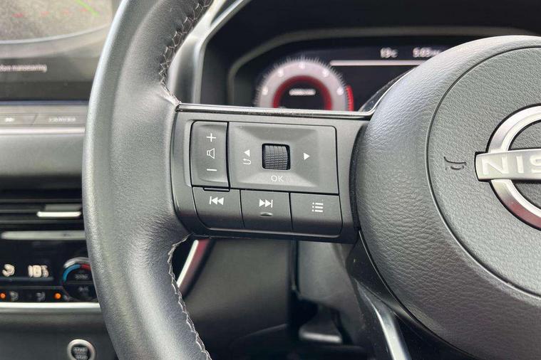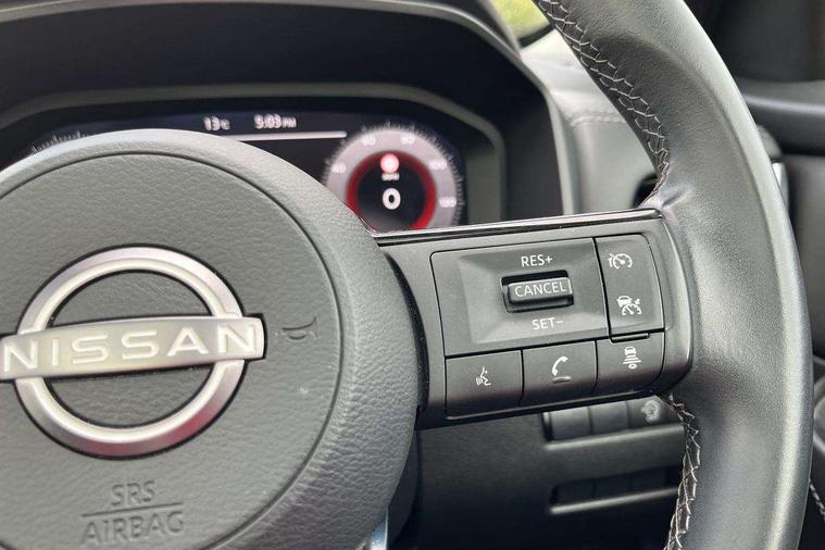 Android auto/Apple CarPlay (Wired), Blind spot warning, Drive modes (sport, normal, eco), Electric speed sensitive power steering, Emergency and breakdown call, Front and rear parking sensors, Full Digital 12.3" TFT Digital Combimeter, Google maps services - search, weather, 3D maps and Google street view, Idle stop/start system, Intelligent around view monitor, Intelligent Cruise control (ICC), Intelligent driver alert system, Intelligent forward collision warning, Intelligent lane intervention, Lane departure prevention, Lane departure warning system, Maximum speed limiter, Moving object detection, Nissan connect 12.3 inch touchscreen infotainment system, Nissan connect navigation, Push button starter, Rear cross traffic alert, Rear view camera, Remote control services - door locks, lights, horn and car locator, Telematics - notifications and connectivity services, TomTom live traffic services, Traffic sign recognition with legal speed adjustment, Trip computer, Virtual personal assistant and firmware over the air capability, Wireless apple carplay, 6 speakers, AM/FM audio system with DAB, Bluetooth audio streaming, Front USB connections (Type-A and Type-C), Rear USB charging only ports (Type-A and Type-C), Auto dimming rear view mirror, Auto rear wiper when reversing, Automatic hazard signal with emergency stop signal, Body colour mirror caps, Body coloured door handles, Bodyside mouldings, Chrome side window finisher, Door handle with button, Electric auto folding door mirrors, Electrically adjustable and heated door mirrors with LED turn indicator, Follow me home headlights, High beam assist, Intelligent auto headlights, LED daytime running lights, LED Headlights, LED rear lights, One touch front and rear electric windows with remote opening and closing, Partially body coloured bumpers, Privacy glass, Rear bumper with graphite insert, Rear reversing light (bulb lighting), Rear roof spoiler, Rear side wing doors, Rear styling plate, Shark fin antenna, Splash free rain sensing wipers, Super UV and infrared cut glass, Three blink turn signal, 12v power socket in dashboard and luggage, 2x Rear coat hooks, 3 bench rear seats in 2nd row, 3 rear headrests, 4 folding assist grip, 6 Luggage hooks - 4 on floor, 2 on side, 6-way manually adjustable driver's seat, 60/40 split folding rear seat bench, Ambient lighting around centre console, Centre console storage tray, Chrome interior door handles, Cloth monoform upholstery, Driver and front passenger sunvisors with illuminated vanity mirrors, Driver seat back pocket, Dual zone automatic climate control with pollen filter, Electrically adjustable lumbar support for driver, Front and rear door storage, Front centre console and armrest, Front cupholders x 2, Front door with bottle holders, Glovebox with light, Hard trunk cover, Height adjustable driver's seat, Height adjustable front headrests, Height adjustable passenger seat, Leather shift knob, Leather steering wheel, Luggage board system, Luggage space lighting, Manually adjustable passenger (slide recline + lifter), Multifunction steering wheel, Passenger seat back pocket, Rear armrest with 2 cupholders, Rear door bottle holders, Single front passenger seat, Soft PVC kneepad, Steering wheel switches, Sunglasses holder, Tilt/telescopic adjustable steering wheel, Two rear isofix child seat anchorage points with top tether, Welcome light and console tray ambient lighting, 3x3 point rear seatbelt pretensioners + load limiters, ABS with EBD and brake assist, Active brake limited slip, Auto hold function, Child locks on rear doors, Curtain and front side, far side airbags, Driver and passenger airbags, Driver, passenger and 2nd row rear seat belt reminder, Electronic parking brake, Front seatbelt pretensioners + load limiters, Height adjustable front seatbelts, Hill start assist, Intelligent blind spot intervention, Intelligent front emergency braking with pedestrian, cyclist recognition and junction assist, Intelligent rear automatic braking, Tyre pressure monitoring system, Vehicle dynamic control, Capless fuel filler, Engine immobiliser, Intelligent Key, Remote central door locking with deadlocking, Thatcham Cat.1 alarm, Interior instrumental panel B finisher, 18" Diamond cut alloy wheels, Tyre puncture repair kit,