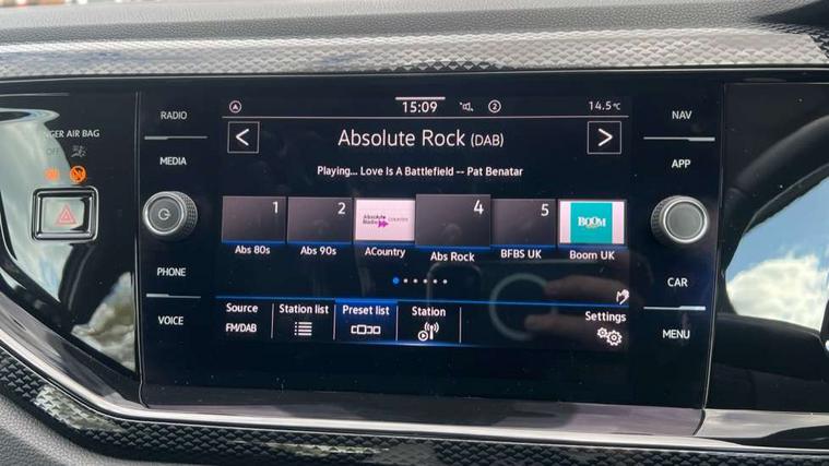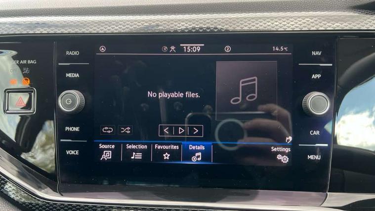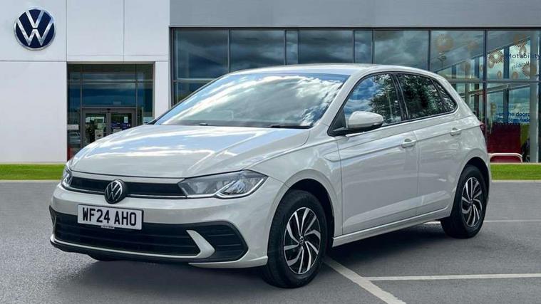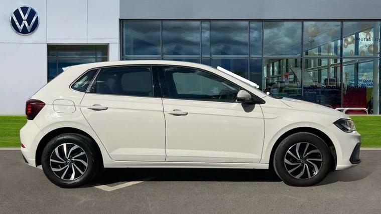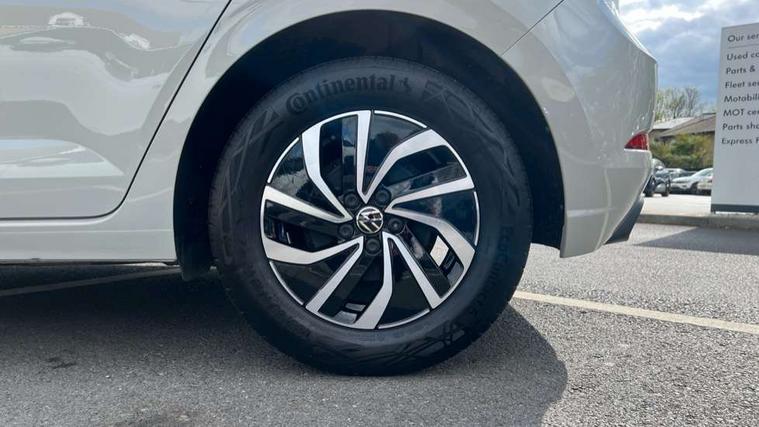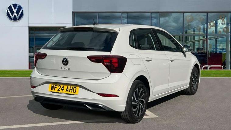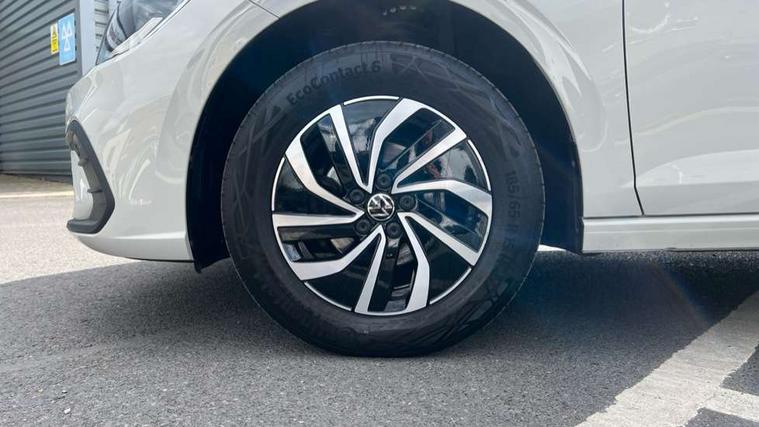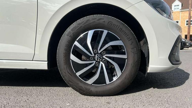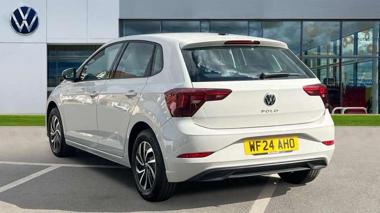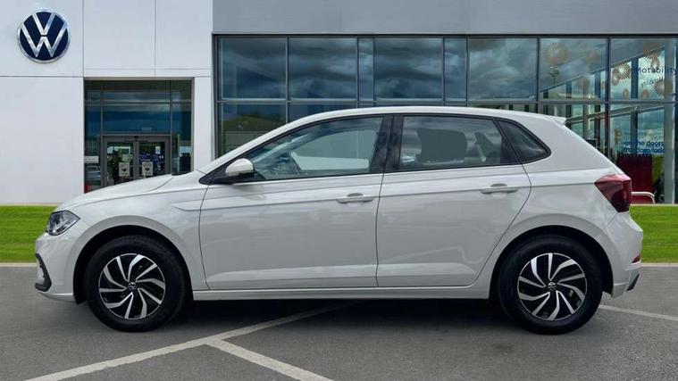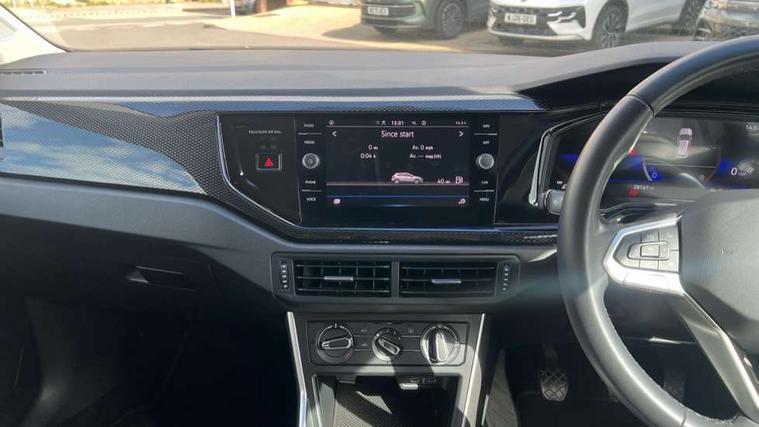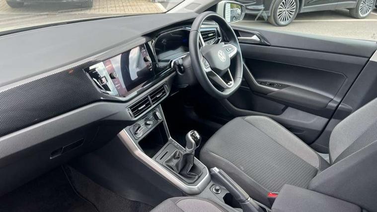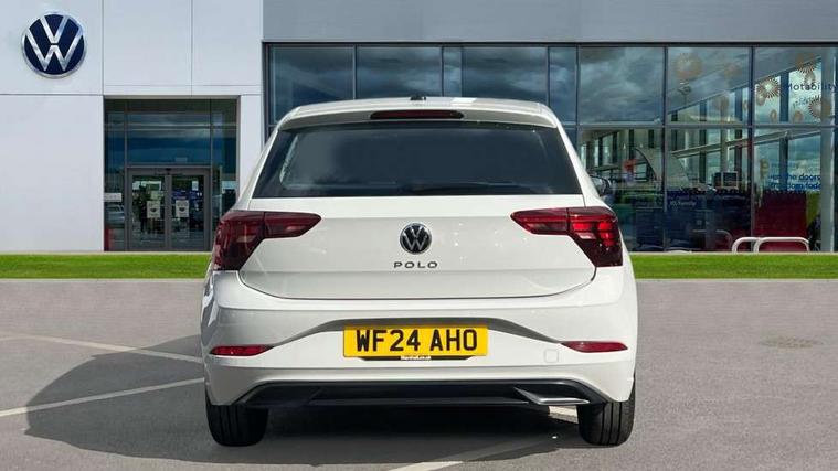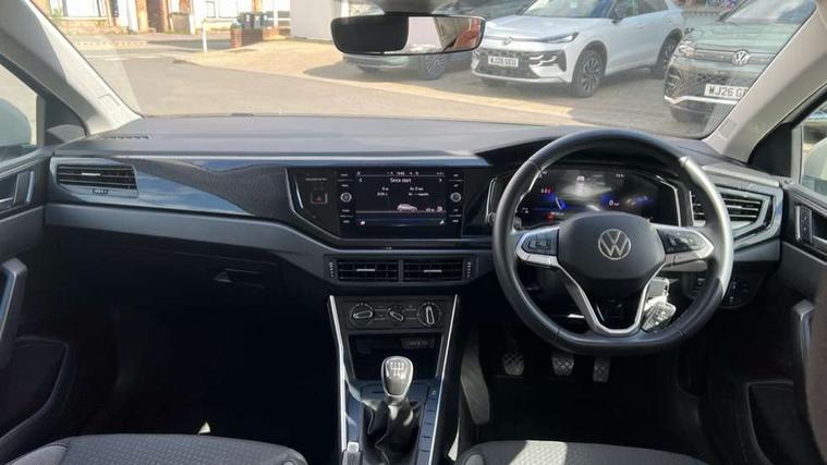 Adaptive cruise control without follow-to-stop and speed limiter, Advanced driver attention and drowsiness monitor, Bluetooth mobile phone interface, Dynamic road sign display, Emergency call service, Power assisted speed sensitive steering, Preparation for navigation system with media and internet package, Preparation for We connect and We connect plus, Speedo and rev counter, electronic odometer, trip, service interval display and exterior temperature gauge, Standard rear axle, Travel Assist - Lane keeping system and traffic jam assist, Travel assist including emergency assist, Trip computer, Warning signal and warning light for front and rear seatbelts not fastened, Washer fluid level indicator, Wireless app connect, Front wheel drive, Rear shock absorpion, Start-stop system with battery regeneration (recuperation - energy recovery during braking), DAB Digital radio, Diversity antenna for FM reception, Front and rear 6 speakers, Automatic dimming interior rear view mirror, Automatic headlight control with LED separate daytime running lights with coming/leaving home function, Body colour bumpers with chrome inserts, Body colour door handles, Body colour door mirrors, Electric front windows, Engine badge deletion, Headlight range adjustment, Heat insulating and laminated safety glass windshield, Heat insulating darkened glass in side and rear windows, Heat insulating glass windscreen, LED Headlights, LED rear combination lamps, Power folding adjustable/heated exterior mirrors and front passenger exterior mirror lowering function, Rain sensor, Rear electric windows, Rear fog light, Rear side wing doors, Rear windscreen washer and wiper with interval delay, Third brake light, 12V power socket in centre console, 2 front and 2 rear reading lights with switch off delay and dimmer, 2 USB-C ports in the front, 2 USB-C charging sockets on the center console in the rear, 3 rear head restraints, 60/40 split folding rear seat and rear seat bench not split, Ceramique roof lining, Chrome plated radiator grille inserts, air vent surrounds and light switch surrounds, Door and side trim panel, Driver and front passenger seat height adjustment, Driver/passenger sunvisors with illuminated vanity mirrors, Front centre armrest, Front seat backrest storage pockets, Front standard seats, Handbrake lever handle in leather, Hartley/Thomas cloth upholstery, Headliner in recycled material, Isofix child seat preparation easy-fit (for two outer rear seats, and front passenger seat) compatible with I-size, Leather trimmed gear knob, Luggage compartment cover, Luggage compartment lighting, Removable luggage compartment floor, Single front passenger seat, Standard climatic zones, Standard pedal cluster, Three spoke leather wrapped multifunction steering wheel, Light and vision pack - Polo, 3 point height adj front seatbelts + pretensioners, 3x3 point rear seatbelts, ABS, Driver and front passenger airbag with front passenger airbag deactivation, Drivers and front passengers safety optimised head restraints, ESC (Electronic stability control) + EDL (Electronic Differntial lock) and ASR (Traction control), Extended and predictive pedestrian/ cyclist protection, Front assist with autonomous emergency braking (for Adaptive Cruise Control ACC up to 130 mph), Front curtain and side airbags with center airbag, Front disc brakes, Hill hold control, Manual child lock in rear doors, Rear drum brakes, Single tone horn, Tyre pressure loss indicator, Alarm with interior protection, Anti-theft alarm system with interior monitoring, backup horn, and towing protection, Anti-theft wheel bolts, Electronic engine immobiliser, Lava stone black gloss/matt decorative inserts in dash and front door panels, Low rolling resistance tyres,