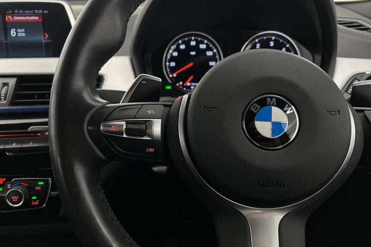 Active Guard incl speed limiting and lane departure functions with auto steering, and front collision warning with brake intervention, Automatic powered tailgate, Bluetooth hands free facility with USB audio interface, BMW Navigation system with 8.8" monitor, BMW Online services, BMW remote services, BMW Teleservices, Brake pad wear indicator in front and rear, Check Control warning system for monitoring of lights and door/luggage compartment open warning, Eco pro mode, Instrument cluster with black optic and 5.7" colour display + speedometer + tachometer + fuel gauge + instant fuel economy, Lights on warning by audio warning signal when ignition is switched off, On board computer - average speed+fuel consumption, service interval, clock/date, odometer/trip meter, outside temperature display and ice warning, Optimum shift indicator, Personal Profile, Real time traffic information, Speed limiter, TMC for lifetime of vehicle, 12V compressor with integrated sealant injection bottle and hose, Anti roll bar front and rear, Balancer shaft, Diesel particulate filter, Drive performance control with ECO PRO comfort + sport mode, Electronic differential lock, Performance Control, Sport automatic transmission, Twin tube gas filled shock absorbers with degressive characteristic curve, 2x USB sockets in front, 6 Speaker Loudspeaker system, Bluetooth audio streaming, BMW professional radio with CD player, DAB Digital radio, Steering wheel mounted audio/telephone controls, Adjustable headlights, Automatically dimming rear view mirror, BMW badge on bonnet, tailgate with integrated tailgate release and C pillars, Body colour door handles, Body colour mirror caps, Body colour roof trims, Chrome kidney grille with black vertical slats, Clear lenses direction indicator lights, Dark shadow front air intakes, Direction indicator side lights integrated in exterior mirrors using LED technology, Door mirror integrated indicators, Dynamic brake lights, Electrically adjustable and heated door mirrors glass aspheric on driver's side and convex on passenger side, Fingertip control / anti-trap function on electric window, Front and rear bumper system, Front and rear electric windows, Green tinted heat protection glazing, Halogen headlights, Heated windscreen washer jets, High gloss black front side air intake with matt black insert, High gloss black in window frame, recess covers and B-Pillar trim, High gloss shadowline in mirror frame and B-Pillar trim, High level third brake light, LED front fog lights, LED headlights with extended contents - cornering, high beam assist, LED day running lights with dynamic beams-through for urban and motorway, Lightweight engineering, M logo designation in side chrome, M rear spoiler, Model designation in left tailgate, Model designation in right tailgate, Rain sensor with automatic headlight activation, Rear fog lights, Rear tail lights with LED technology and 3D design, Rear window aerial, Rear window wiper with wash/wipe function, Reversing light in rear light cluster, Shark fin antenna, Twin chrome exhaust tailpipes, Visible VIN plate, Welcome lighting, 40:20:40 manually split folding rear seat with two tilt positions for backrest, Ambient light in front centre console/cup holder area, Anthracite headlining, Armrest in centre section of rear seat backrest and folding, Automatic two zone climate control air conditioning, Child seat ISOFIX attachment for two outer rear seats and front passenger seat with anchorage points, Conditioned based service, Dakota leather upholstery + sport seats, Driver and front passenger seat heating, Driver/passenger sunvisors with ticket holders, Drivers folding storage compartment, Floor mats with black surround and M flag detail on front mats, Front and rear door armrests, Front armrest, Front door sill finishers with M designation, Front head restraints, Front sports seats, Gearshift paddles on steering wheel, Interior light in front centre interior mirrors and rear centre auto interior light activation when door is opened when ignition switched off, LED ambient lighting in upper door trim and dashboard trim, Luggage compartment lighting, Luggage compartment loading edge with stainless steel insert, M Sport multifunction leather steering wheel, Rake/reach adjustable steering wheel, Retaining strap on the left side of the luggage compartment, Three rear headrests, Two cupholders in front and rear centre console, Extended storage pack - X2, M Sport aerodynamic pack - X2, 3 point seatbelts on all seats, front pyrotechnic belt tensioners, stopper and belt force limiters, rear coded belt buckles, Airbags - Front driver and passenger, front and rear head, front side, curtain head protection, Anti lock braking system (ABS) with brake assist, ASC - Active stability control, BMW emergency call, Brake drying, Brake energy regeneration, Braking readiness, Child proof locking system in rear door, Crash sensor activating central locking release with hazard warning lights and interior lighting + battery safety cut-off, Driver and front passenger seat belt security check, DSC - Dynamic Stability Control, Dynamic Traction Control - DTC, Electrically operated parking brake with automatic drive release, Electronic parking brake, Front passenger airbag deactivation, Front ventilated brake disc, Hill descent control, Hill start assist, Multi collision braking system, Rear brake discs, Side impact protection, Twin horns, Tyre pressure monitor, Warning triangle and first aid kit, Auto door lock when driving, Central locking switch for all doors, fuel filler cap and luggage compartment, Engine immobiliser, Incorrect fuel protection system, Locking wheel bolts, Remote control including integrated key with M specific highlight, Remote control Thatcham category 1 alarm, Start/stop button with comfort go keyless engine start and auto start stop deactivation button, Dash top finished in black with decorative stitching line on upper section, High gloss black centre console, R
