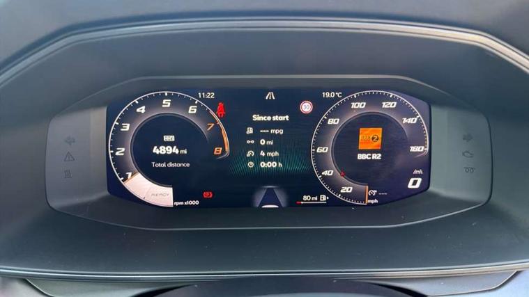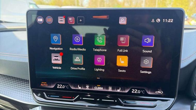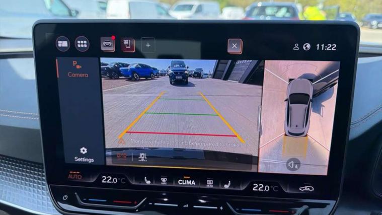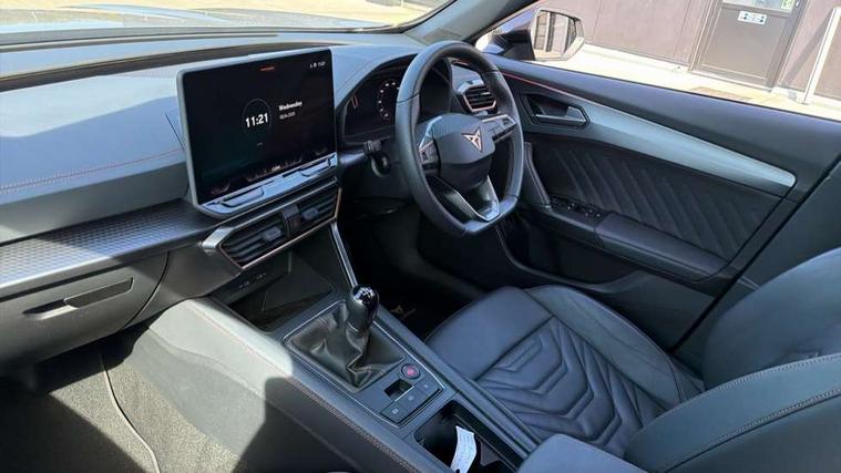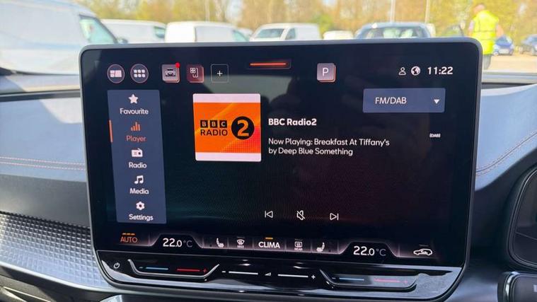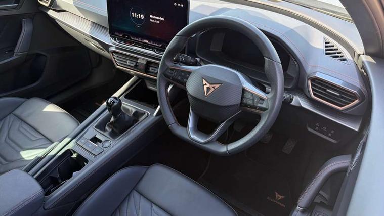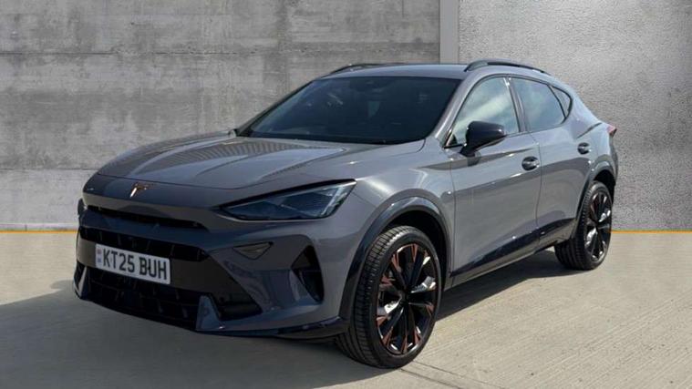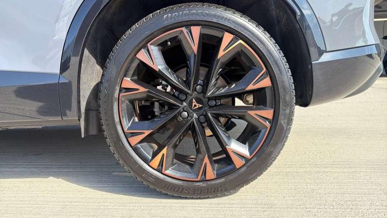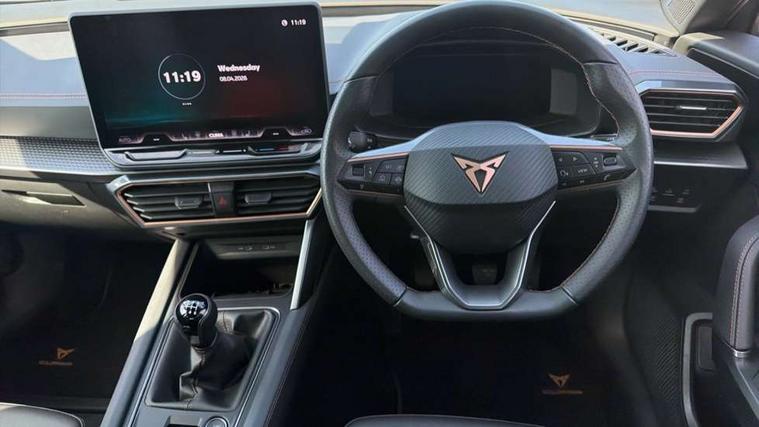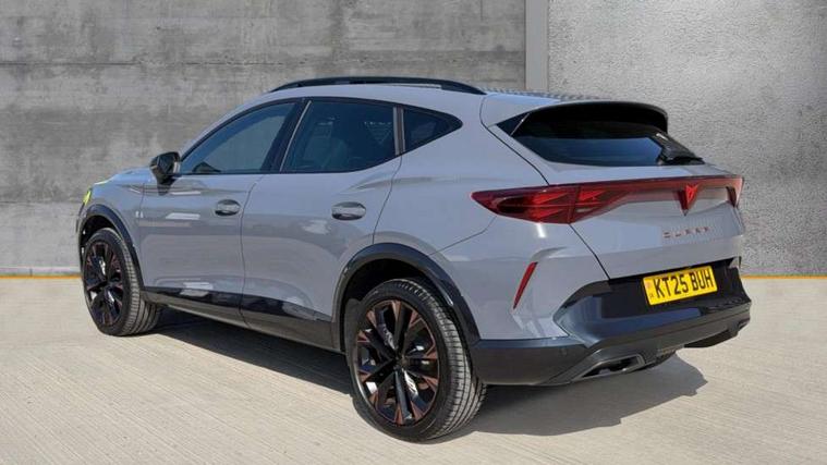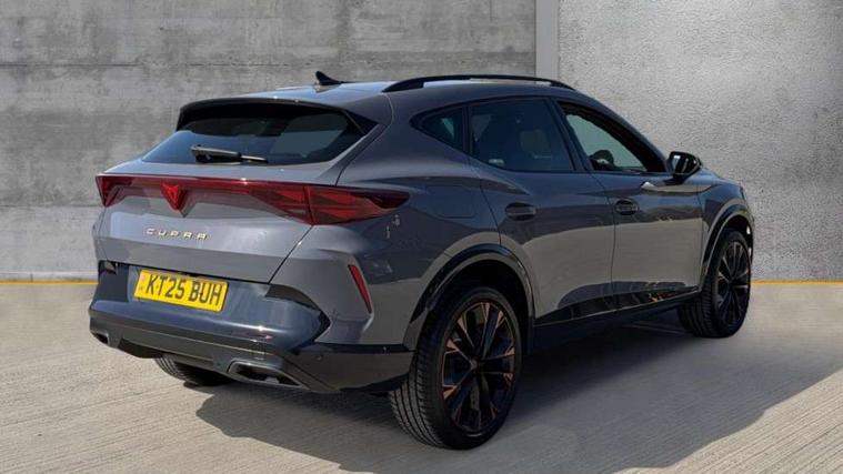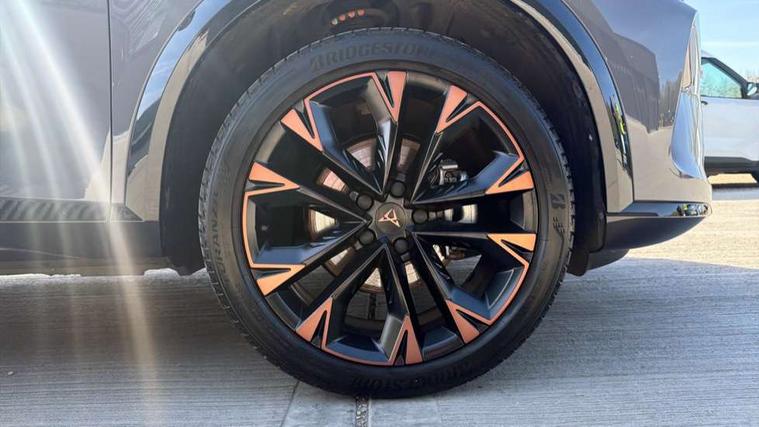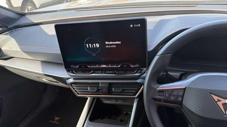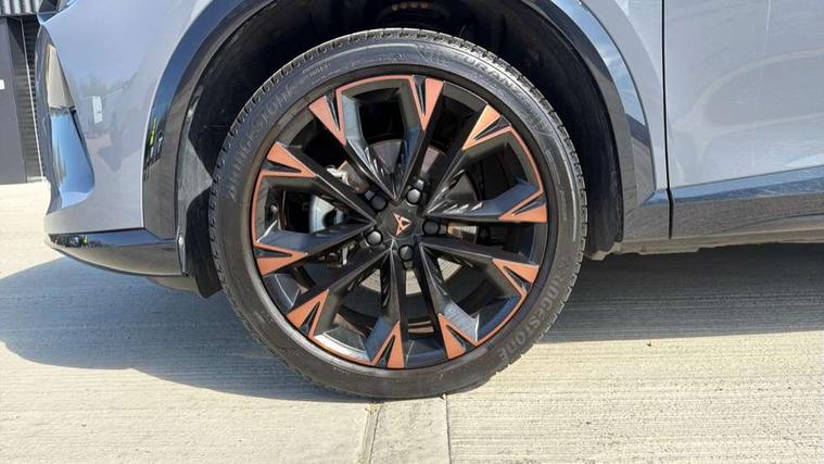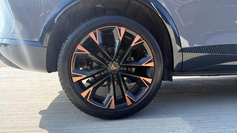 10.25" digital cockpit and configurable dashboard, Adaptive cruise control with follow-to-stop and speed limiter, Advanced driver alert system, Advanced lane assist with semi-automatic vehicle control in a medical emergency and traffic jam assist, Driving profile selection, Dynamic road sign display, Emergency steering support with turn assist, Forward collision warning with automatic braking, Front and rear parking sensors, Front cross traffic assist, Full link phone integration, Progressive steering, RPM, trip computer, outside temp gauge, instrument light brightness, low fuel warning light, lights on reminder, gearshift indicator, Service interval indicator, Side and exit assist, Start/stop system with regenerative braking, Top view camera, Virtual pedal and electric tailgate, Voice control system, Wired Android Auto, Wireless apple carplay, Wireless phone charger, CUPRA sport suspension, Electronic locking differential and dynamic traction support, 2 front and 2 rear USB type C sockets, Media system with navigation, 12.9" touchscreen display, voice control, DAB, steering wheel mounted controls, Auto dimming rear view mirror, Body colour door handles, Body coloured bumpers, Dark grey wing mirror, Daytime running light with automatic headlight control and coming home feature, Door panel ambient lighting, Dynamic headlight range control, Electric front/rear windows, Electrically adjustable heated and folding door mirrors with memory function, Gloss black roof rails and window surrounds, High beam assist, LED 3rd brake light, LED front fog lamps with cornering function, LED Headlights, LED Taillights with dynamic indicator, Rain sensing wipers, Rear diffuser with black simulated exhaust pipes, Rear fog lights, Rear side wing doors, Rear wash/wipe, Tinted rear windows, Welcome lights (within exterior mirror housing), 12V socket, 2 front and 2 rear reading lights, 3 seat bench in 2nd row, 60/40 split rear bench seat with armrest and mechanical seat release, Black headlining, Black interior roof lining, Dust/pollen filter, Electrically adjustable front seats with lumbar support and memory function, Front and rear head restraints, Front centre armrest, Heated front seats, Height/reach adjust steering wheel, Illuminated aluminium doorsteps, Illuminated interior front door sills, Illuminated sunvisor with mirror, Isofix, Leather dashboard, door insert and side trim panel, Leather multi function steering wheel, LED smart wraparound lighting, PVC/Leather upholstery, Single front passenger seat, Storage pockets on rear of front seats, Three zone climate control with control panel in rear, Variable luggage/load compartment floor, 3 point seatbelts on all rear seats, ABS, Brake control system - ESC and brake booster, Child proof door locks, Driver and front passenger airbags with front passenger airbag de-activation, Electronic parking brake, Front and rear disc brakes, Front side curtain airbags, Hill hold control, Pre-crash front and rear seat belt tensioner, window closure and hazard lights, Public e-call, Seat belt reminder for front and rear seats, Tyre pressure monitoring system, Anti theft alarm system, KESSY Advanced - Keyless start, keyless entry with SAFELOCK, Locking wheel bolts, Warranty - 5 years/90, 000 miles, Copper and aluminium interior detailing,