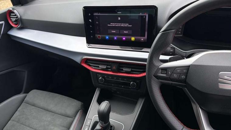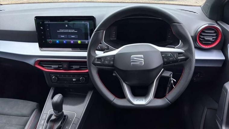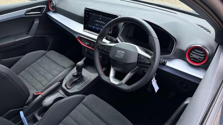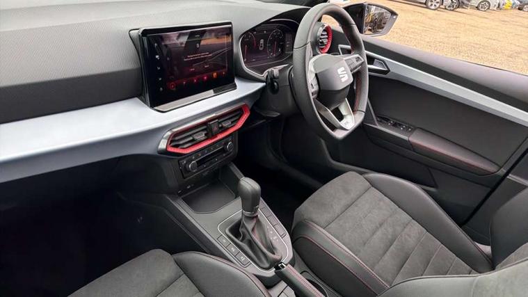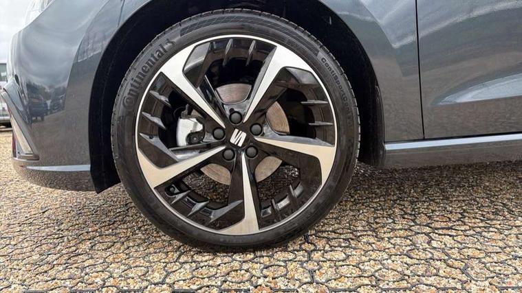 'Lights On' Reminder warning buzzer, 10" Digital cockpit, 9.2" touchscreen navigation system with type C USB socket, Voice control and DAB/AM/FM radio, Auto start and stop system, Bluetooth audio streaming with handsfree system, Digital clock, E-call, Full link smartphone integration with mirror link, wireless apple carplay, Google android auto + USB Type C cable for apple and android devices, Lane assist, Low fuel warning light, Outside temperature gauge, Power Steering, Rear parking sensor, Seat connect plus with safety, service, remote and online, SEAT drive profiles and ECO function, SEAT logo boot release, Speed limiter, Traffic sign recognition, Trip computer, Sports suspension, Auxiliary input socket, Radio/MP3 player, SD card slot, Steering wheel mounted controls, Anti theft roof antenna, Auto dimming rear view mirror, Automatic rain sensing wipers, Black door mirror caps, Body colour bumpers, Body colour door handles, Brilliant black window surrounds, Dark tinted rear windows, Electric adjustable/heated/folding door mirrors, Electric front windows, Electric headlight adjustment, Electric rear windows, Front/rear fog lights, FULL LED automatic headlights with dynamic headlight range control, coming and leaving home, LED daytime running lights, LED 3rd brake light, LED tail lights, Rear roof spoiler with FR twin exhausts, Rear side wing doors, Rear wiper, 3 seat bench in 2nd row, 60/40 split folding rear seat, Ambient interior lighting, Chrome detailing and black headlining, Comfort seats, Dual zone climate control with combination filter, Front courtesy lights, Front cupholders x 2, Front reading lights, Gear shift indicator, Glovebox, Height adjustable front and rear headrests (five), Height adjustable front seats, Height/reach adjust steering wheel, Illuminated air vent surrounds, Illuminated boot, Instrument lighting with brightness control, Isofix, Leather multifunction flat bottomed sports steering wheel with gearshift paddles, Microsuede cloth upholstery, Passenger sunvisor, Single front passenger seat, Storage pockets on back of front seats, Sunvisors with mirror and driver side card holder, Safety and driving pack (S) - Ibiza, 3 point seatbelts on all 3 rear seats, ABS, Active front headrests, Child locks on rear doors, Electronic stability control, Energy recovery system, Front driver and passenger side airbags with curtain airbag and front passenger airbag deactivation, Hill hold control, Multi-Collision braking, Seat belt reminder for front and rear seats, Tiredness recognition system, Tyre pressure monitoring system, Locking wheel bolts, Perimeter alarm and interior monitoring with backup horn and tow away protection, Remote central locking + deadlocks, 18" Performance machined alloy wheels in black and grey,