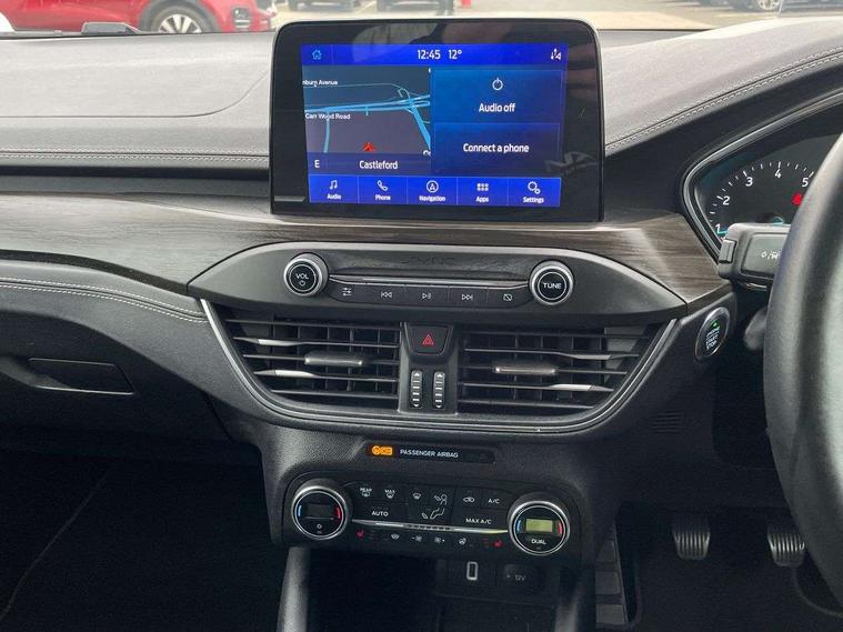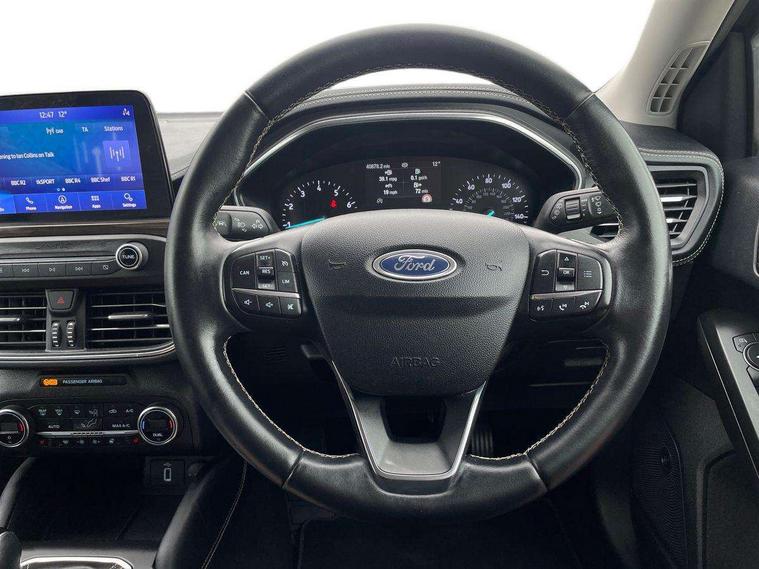 Active park assist system, Bluetooth system, Digital clock, Easy fuel capless refuelling system, Eco mode, Ford pass connect, Ford SYNC 3 nav system with DAB radio, 8" colour touch screen, voice control, app link, Apple car play/Android auto and 4.2" TFT coloured cluster, Front and rear parking sensors, Head up Display, Intelligent speed assist, Lane keeping aid with lane departure warning, PAS, Rear wide view camera, Selectable drive mode, Trip computer, 2 USB ports, Aux input, B&O Audio system with 360 degree sound, 10 speakers, 675 watts of total amplifier power and digital sound processor, 'Quickclear' heated windscreen/heated washer jets, Auto dimming rear view mirror, Auto headlamps (on/off), Automatic rain sensing wipers, Body coloured bumpers, Body coloured door handles, Body coloured electrically operated and heated door mirrors with side indicators, Door edge protectors, Electrically operated front and rear windows with one touch opening and closing, Front variable intermittent wipers with electric wash, Heated rear window, LED daytime running lamp, LED front fog lamps with cornering function, LED rear lamps, Polished twin tailpipe, Power folding door mirrors with puddle lights, Rear privacy glass, Tailgate wash/wipe, Unique door and instrument panel inserts, Vignale front grille and body styling, 3 spoke leather trimmed steering wheel with integrated audio controls, 6 way power adjustable driver seat, 60/40 split back and cushion rear seats with 2 height adjustable headrests, Ambient LED multi colour interior lighting, Centre console with sliding front armrest, Dual zone electronic air temperature control, Front passenger seat manual height and lumbar adjust, Front/rear floor mats, Heated front seats, Heated steering wheel, Height adjustable front headrests, Isofix child seat preparation, Leather gear knob, Leather upholstery, Load through ski hatch, Reach + rake adjustable steering column, Rear centre headrest, Soft console knee pads, ABS+Electronic Brake force Distribution, Auto hold function, Driver airbag, Electronic parking brake, Electronic stability control, Front and rear seatbelt reminder, Front inertia reel height adjustable seatbelts with pre-tensioners, Front passenger airbag, Front side airbags, Hill start assist, Passenger airbag deactivate switch, Post collision braking, Pre collision assist with autonomous emergency braking and pedestrian/cyclist detection, Side curtain airbags, Three rear inertia reel lap/diagonal seatbelts, Tyre pressure monitoring system, Ford keyfree system with Keyless entry and keyless start, MyKey system, Remote central locking & engine immobiliser, Thatcham category 1 alarm, 18" 5x3 spoke liquid aluminium alloy wheels, Mini steel spare wheel,
