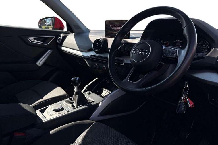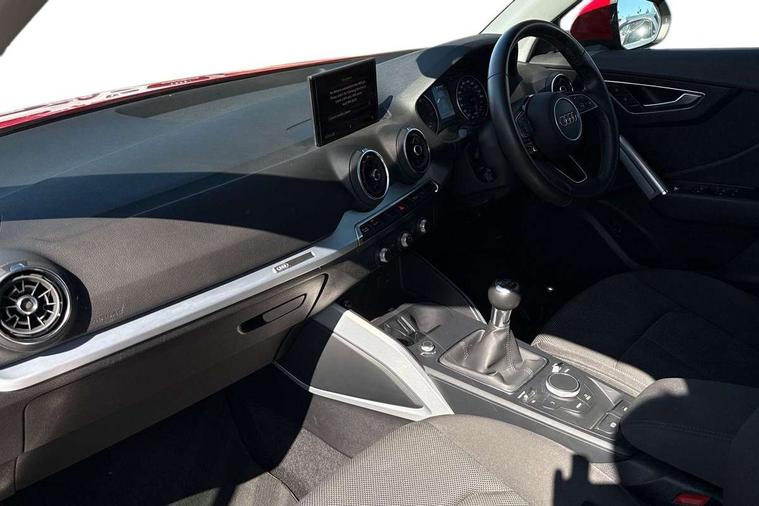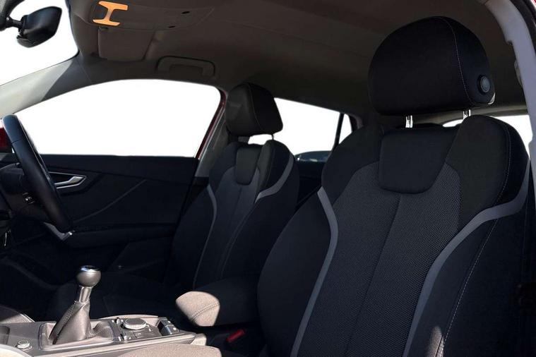 Audi drive select, Audi smartphone interface, Automatic start/stop system with recuperation, Bluetooth interface includes bluetooth audio streaming, Cruise control, MMI - Multi Media Interface control system, MMI SD card integrated nav with 3D map display, dynamic route guidance with TMC, MMI search, natural voice recognition and myAudi special destinations, Power operated tailgate, Progressive steering, Service interval indicator, Dynamic suspension, 2 x SDXC card reader, Audi music interface - apple iPod, apple iPhone, USB storage media, compatible MP3 players, 2 x USB charging points and 1 x Aux-in, CD Drive, DAB digital radio and AM/FM radio, MMI radio plus with 7" colour MMI screen and MMI controller, Air inlet in manhattan grey metallic, Black window trims, Body colour door mirrors, Chrome exhaust tailpipe, Electrically adjustable and heated door mirrors with integrated LED side indicators, Front and rear electric windows, Front underbody guard and rear diffuser trim in selenite silver, Front windscreen with grey tinted sunband, Halogen headlights including headlight range adjustment, High gloss black radiator grille, Interior mirror, LED indicator lights, Manual folding door mirrors, Rain and light sensors, Rear wiper, Side skirts in manhattan grey, Wheel arch trims in manhattan grey, 60/40 split folding rear seat bench, Door sill trims with aluminium inlay, Electronically operated child locks, Front centre armrest, Front headrests, Front sports seats, Front/rear floor mats, Height/reach adjust steering wheel, ISOFIX child seat mounting for front passenger with airbag deactivation and outer rear seat including top tether attachment point for outer rear seats, Manual seat adjustment including seat height adjustment for front seats, Storage compartments - Glovebox, cupholder compartment in centre console, storage compartment in rear centre console, front and rear door pockets, Three rear headrests, Titanium grey cloth headlining, Non smoking pack - Q2, 3x3 point rear seatbelts, 6 airbags - Front, curtain and front side airbags, Electromechanical parking brake, Electronic stabilisation control including ABS, ASR and EDL, Extended and proactive pedestrian protection, Hill hold assist, Multi collision brake assist, Pre-sense front with pedestrian recognition, Seatbelt monitoring, Tyre pressure warning light, Warning triangle and first aid kit, Anti theft alarm, Anti theft wheel bolts, Central locking system with remote control key, Aluminium interior element,