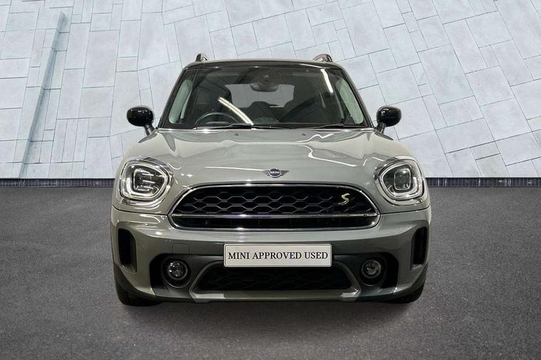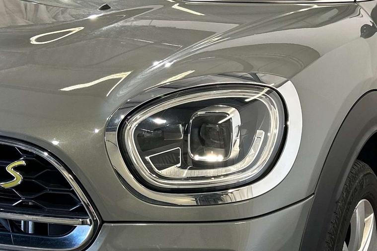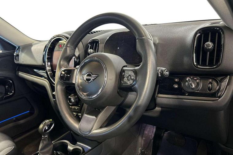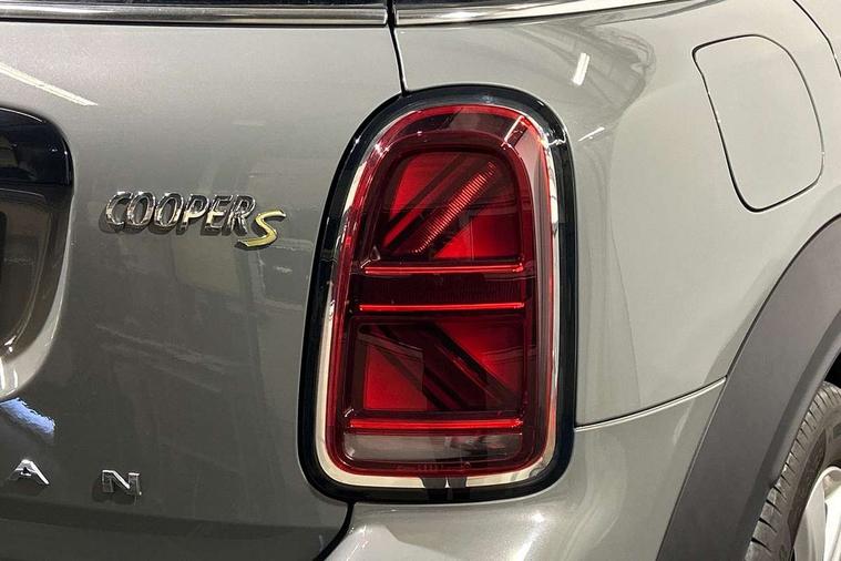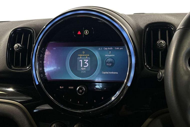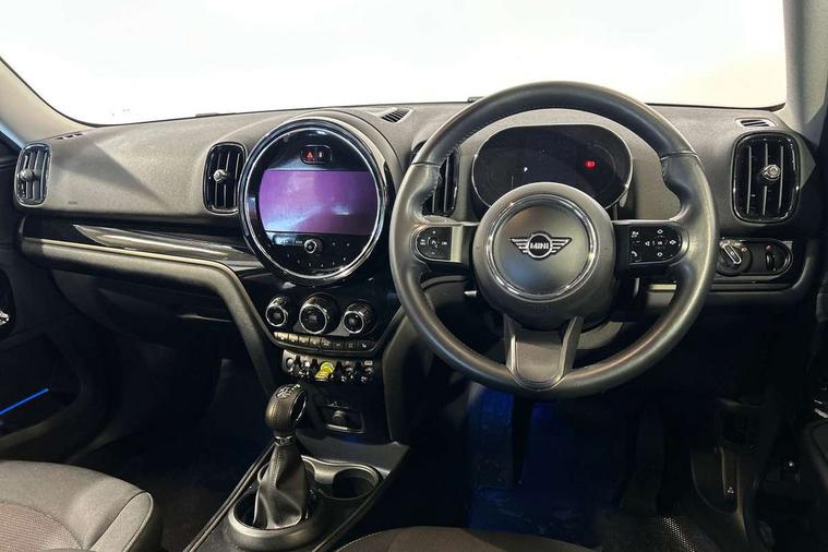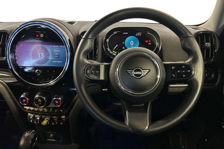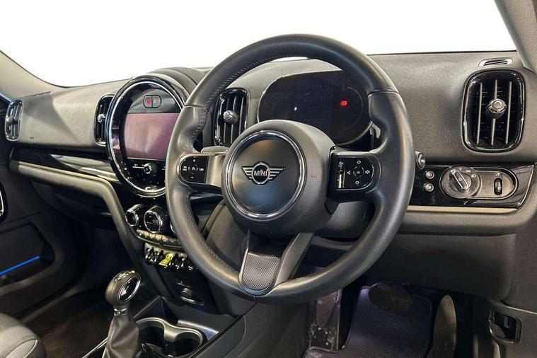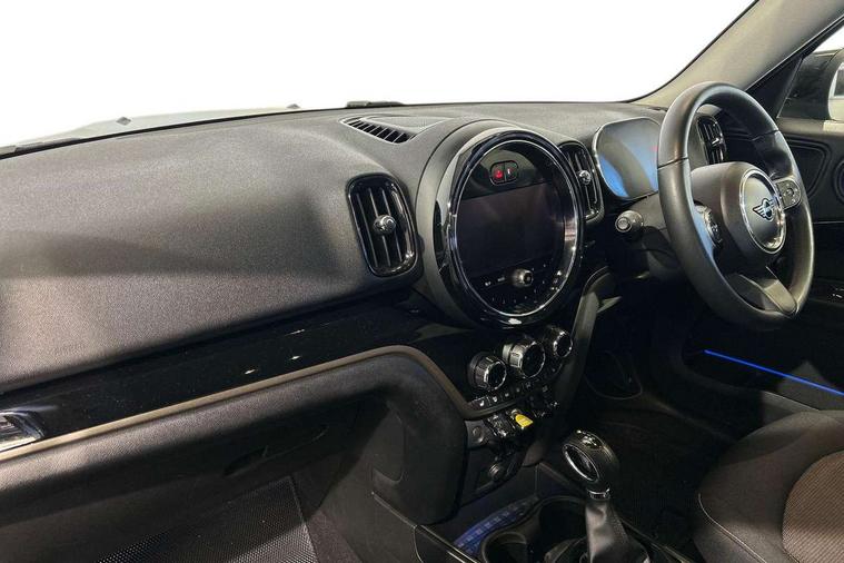 Active Guard incl speed limiting and lane departure functions with auto steering, and front collision warning with brake intervention, Automatic start/stop function with brake energy recuperation, Compatible mobile phone bluetooth with audio streaming, eDrive button, Electro-mechanical speed dependant steering assistance, Instrument cluster, On board computer, Rear parking distance control, 36L fuel tank, Automatic transmission, Charging flap on front left lower A-panel, Double Vanos system, Fully variable valve control, High precision injection, Home charging cable, Performance Control, Public charging cable, FM tuner and DAB digital radio, Bonnet scoop, Chrome border honeycomb structure radiator grille with S badge, Chrome fuel filler cap, Day time driving lights, Dynamic brake lights, Electric windows, Heated rear window, Heated windscreen washer jets, LED fog lights, LED Headlights, Metal door sill strips with Cooper S imprint, Model logo, Model logo on Tailgate, Rain sensor with auto headlights, Rear fog lights, Rear window wiper, Side scuttle panel with integrated indicator, Split rear doors, Sun/heat protection glass, Twin exhaust tailpipe, White indicator lenses, 12V socket in centre console, 3 spoke sport leather steering wheel + limiter function and audio controls, 360L luggage compartment capacity, 4 lashing eyes in luggage compartment, 40:20:40 split folding rear seats, Chrome interior highlights, Colour line - Carbon black, Cupholders, English handbook, Floor mats, Front headrests, Glove compartment, Headliner with grab handles and clothes hooks, Height and length steering column adjustment, Interior lighting with 12 basic colours selectable via toggle switch in roof, Isofix rear child seat preparation, Leather gearshift lever and handbrake gaiters, LED reading lights, vanity mirror lights, front foot well light and spotlight on front seats, Manual air conditioning, Mechanical seat adjustment, driver seat height adjust, forward/back and front seats backrest, Multifunction steering wheel, Passenger seat height adjuster, Rear headrests, Storage compartments in doors, Sunvisors with vanity mirrors, Excitement pack - Countryman, Navigation pack - Countryman, 2 tone horn, 3 point seatbelts on all seats, 6 Airbags - front, side, head and seat belt tensioners, Acoustic pedestrian protection, Anti-lock braking system (ABS), DSC - Dynamic Stability Control, Electronic handbrake, Front and rear disc brakes, Hill start assist, Tyre pressure monitoring system, Alarm system with tilt sensor, monitoring doors, bonnet interior and tailgate, Auto drive away locking, Deadlocking function, Electronic vehicle immobiliser, Locking wheel bolts, Start/stop toggle with keyless go, Piano black interior trim, Tool kit,
