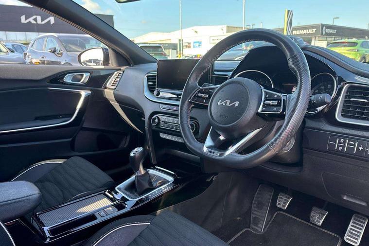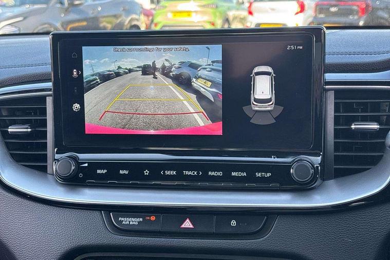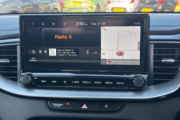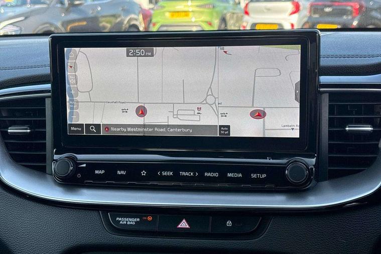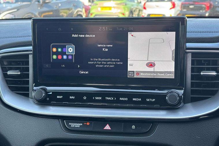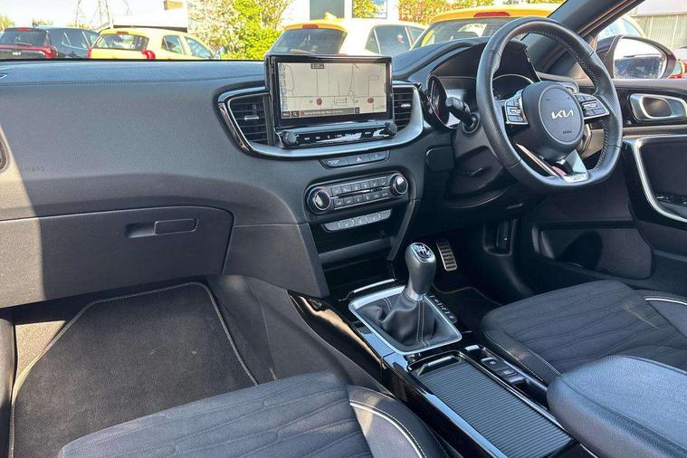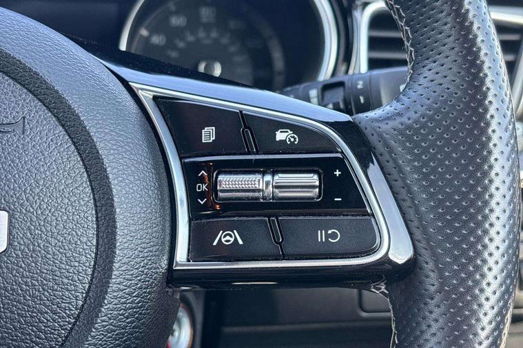 10.25" touchscreen satellite navigation, 4.2" supervision colour cluster display, Apple car play/Android Auto with voice control, Bluetooth with Voice Recognition & Music Streaming, Cruise control + speed limiter, Driver Attention Warning (DAW), Emergency call service, Emergency stop signalling system, Forward Collision-Avoidance Assist (FCA) - City/Pedestrian/Cyclist, Kia connect UVO, Lane Following Assist (LFA), Lane keep assist, Manual speed limit assist, Motor driven power steering, Rear parking sensor, Reversing camera system with dynamic guidelines (Integrated into centre fascia screen), Trip computer, Intelligent Stop and Go, 6 speaker audio system, DAB Radio with MP3, Illuminated USB ports, Steering wheel mounted controls, USB Fast Charger in Front Centre Console, USB port for connection of a media device, All-round Electric Windows with Front Auto Up & Down Function, Auto dimming rear view mirror, Automatic defog system, Automatic headlights control, Body colour bumpers, Body colour exterior door handles, Body coloured and dark chrome rear skid plate, Body coloured side sill mouldings, Dark chrome window surround, Electric adjustable/heated/folding door mirrors with LED Indicators, Heated rear window with timer, High beam assist, High gloss black and dark chrome radiator grille, High gloss black door mirrors, High Gloss Black rear spoiler, LED daytime running lights, LED front fog lights, LED Headlights, LED High-mounted Brake Light, LED honeycomb rear light, LED rear combination lights, LED rear fog light, Privacy glass (rear side windows and tailgate), Rain sensing front wipers, Rear side wing doors, Rear wash/wipe, Satin chrome dual exhaust trim, Tinted glass, Wide view drivers door mirror, Windscreen Washer Level Warning, 1 x Front 12V socket, 12V power socket in luggage compartment, 3 seat bench in 2nd row, 3 x passenger assist grips, 60/40 split folding rear seat, All-round height adjustable headrests, Aluminium pedals, Black headlining, Centre console storage box/armrest, Cloth/faux leather upholstery, Cupholders in centre console, Cupholders in rear armrest, Dash illumination dimmer switch, Door courtesy lamps, Driver & Front Passenger Sunvisors with Vanity Mirror Illumination & Ticket Holder, Driver + front passenger electric lumbar support, Driver's seat height adjuster, Dual Height Luggage Area Floor, Dual zone automatic air conditioning, Faux leather door centre trim, Front and rear door storage, Front cabin map light with sunglasses case, Front Passenger Seat Height Adjuster, Front seat back pockets, Gear shift indicator, Heated front seats, Heated steering wheel, Interior door lock/unlock function, ISOFIX Child seat top tethers and anchor fixings, Leather D-Cut steering wheel, Leather handbrake, Luggage area light, Luggage area parcel shelf, Luggage hooks, Rear centre armrest, Rear coat hooks, Satin chrome interior door handles, Single front passenger seat, Tilt/telescopic adjustable steering wheel, All round 3-point seatbelts, Anti-lock braking system (ABS), Brake assist system, Dual front side airbags, Dual horn, EBD - Electronic brakeforce distribution, Electronic parking brake, Electronic stability control (ESC) and vehicle stability management (VSM), Front passenger airbag cut-off switch, Height adjustable front seatbelts, Hill start assist control (HAC), Impact sensing auto door unlocking, Rear door child safety locks, Seatbelt reminder warning, Twin curtain airbags, Twin front airbags, Tyre pressure monitoring system, Alarm system, Engine Immobiliser & Deadlocks, Locking wheel nuts, Remote central door locking with fold away key, Speed sensitive auto door locking, Black high gloss front console garnish & door trim, Satin Chrome Fascia Trim, 17" GT-Line alloy wheels, Tyre mobility kit,