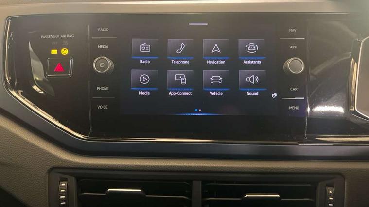 Air vents in High gloss black, Limestone grey decorative inserts, Seat covers in the Waveform design, Composition Media Pack - Polo United, Light and sight pack - Polo, Winter pack - Polo, 15" Dublin alloy wheels, Tyre mobility kit, Alarm with interior protection and deactivation via infotainment system, Electronic engine immobiliser, Remote central locking with 2 remote folding keys, DAB digital audio broadcast, Diversity antenna for FM reception, Premium USB cable in choice of either Apple or Android smartphone compatibility, 3 point height adj front seatbelts + pretensioners, 3x3 point rear seatbelts, ABS, Automatic post collision braking, Driver/front passenger airbag, Drivers and front passengers safety optimised head restraints, ESP with EDL + ASR, Front and rear passenger curtain airbags, Front disc brakes and rear drum brakes, Front passenger airbag deactivation, Front seat side impact airbags, HBA (Hydraulic Brake Assist), Hill hold control, Single tone horn, Tyre pressure monitoring system, Black grille with chrome surround, Black radiator grille with chrome louvres, Body colour bumpers, Body colour door handles, Body colour door mirrors with integrated indicators, Body colour rear spoiler, Body coloured side sills, Electric front windows, Electric operated/heated door mirrors, Front fog lights including static cornering, Front windscreen washers and wipers with 4 speed intermittent delay, Halogen clear headlights with range adjustable including automatic headlights on, Heat insulating tinted glass, Heated rear window with auto timer, High level 3rd brake light, Internally adjustable door mirrors, LED daytime running lights, LED rear number plate lights, Manual dimmable interior rear-view mirror, Rear electric windows, Rear tinted glass from B-pillar backwards approx 65% tinted, Rear windscreen washer and wiper with interval delay, reverse activated, United badge on B-pillar, United door sill protector, 2 bag hooks in luggage compartment, 2 front and 2 rear reading lights, 2 front cupholders and 12 V socket with cover, 3 rear head restraints, 4 grab handles, 60/40 split folding rear seat, Atlantic blue dash insert and centre console, Centre console storage with open storage compartment, Chrome interior door handles, Driver and front passenger seat height adjustment, Driver and front passenger sunvisors with illuminated vanity mirrors, Dust/pollen filter, Folding rear seat backrest, Front + rear carpet mats, Front head restraints, Front seat backrest storage pockets, Gear lever gaiter in black trim surround, Glovebox, Handbrake grip button in chrome effect, Height/reach adjustable steering column, Instrument lighting, adjustable panel illumination, Interior light with delay, Isofix Preparation 2 Rear child seats, Leather gear knob and handbrake grip, Leather multifunction steering wheel, Luggage compartment cover, removable, Luggage compartment lighting, Luggage compartment with variable load floor, Lumbar adjustment for front seats, Manual air conditioning, Storage compartment in front doors, Storage compartment in rear doors, Storage compartment under front seats, Sunglasses holder, United cloth upholstery, Cruise control + speed limiter, Digital clock, Discover navigation - 8.0" colour touch screen navigation/infotainment systems with Car- net guide and inform, Driver alert system, Emergency call service, Front assist, radar sensor controlled distance monitor, city emergency braking and predictive pedestrian protection, Multifunction computer plus, Power assisted speed sensitive steering, Speedo and rev counter, electronic odometer, trip, service interval display and fuel gauge, Start/stop system, Ultrasonic front and rear optical and audible parking sensors, Voice activation, Volkswagen connect, Warning buzzer and light for front seatbelts unfastened, Wireless app connect, Battery regeneration during braking, Galvanished body,