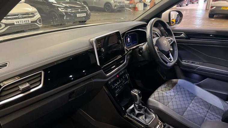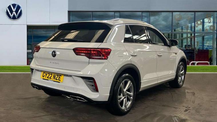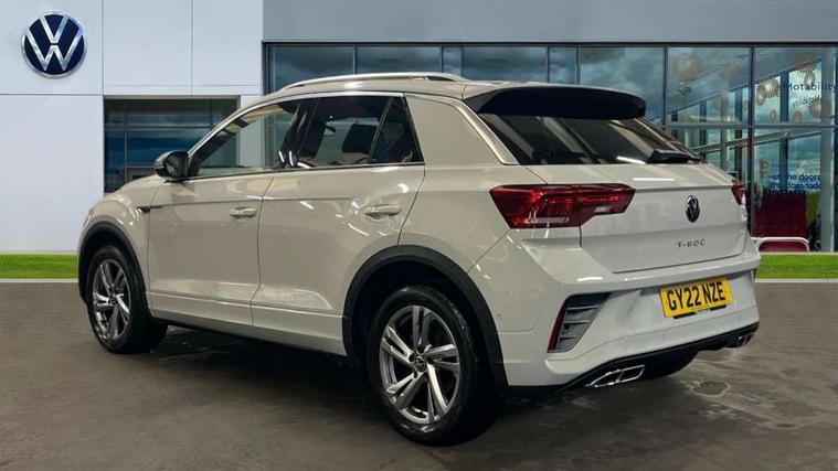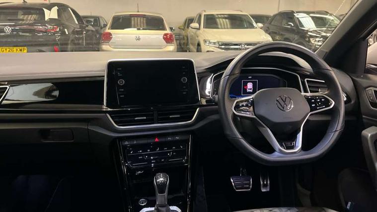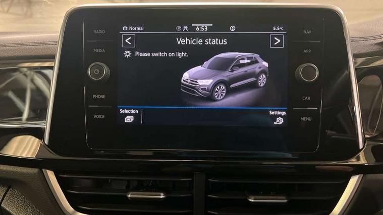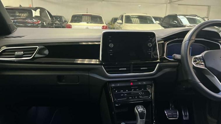 10.25" Digital cockpit pro, Bluetooth mobile phone interface, Driver alert system with fatigue detection, Driver tips and journey analysis, Emergency call service, Lane keeping system Lane Assist, Modified key software - reduce switch off time for key status change to Long no motion, Online services, Park assist including front and rear parking sensors, Service interval indicator, Tailgate/trunk lid release from outside, Think blue trainer driver tips and journey analysis, Warning sound and light for front seatbelts unfastened, Wireless app connect, Battery regeneration during braking, Start/stop function with battery regeneration, Diversity antenna for FM reception, Front and rear 6 speakers, Music playback - MP3, WMA and AAC files, Premium USB cable in choice of either Apple or Android smartphone compatibility, SD card slot, Simultaneous pairing of 2 compatible mobile devices, Title and cover art display, We Connect and We Connect Plus functionality, 3rd brake light, Auto dimming interior rear view mirror, Automatic hazard lights activation under emergency braking, Automatic headlight control with LED separate daytime running lights with coming/leaving home function, Extended roof spoiler, Exterior mirrors aspherical on driver side, convex on front passenger side, External USB type C socket and charging sockets, Front windscreen wiper with intermittent wipe and 4 position delay, Heated rear window, LED Plus headlamps, LED rear combination lamps, LED rear number plate lights, LED tail lamp rear comination lamps, Power windows with comfort operation and circuit breaker, R-Line design body coloured bumpers, Rain sensor, Rear exhaust tailpipe, Rear fog light on one side and reversing lights on both sides, Rear side wing doors, Rear wash/wipe with intermittent wipe setting, Remote electrically foldable door mirrors, puddle lights and reverse activated passenger's door mirror, 12V power socket in centre console, 3 rear head restraints, 3 seat bench in 2nd row, 4 load lashing points in luggage compartment, Air care climatronic air conditoning system with active combination filter and 2-zone temperature control, Black roof lining, Chrome plated radiator grille inserts, air vent surrounds and light switch surrounds, Door and side trim panel with leatherette insert, Drawer under drivers seat, Front + rear carpet mats, Front centre armrest, Front cupholders x 2, Front footwell illumination, Front reading light, Front scuff plates with R logo, Instrument lighting, white adjustable panel illumination, Interior ambient lighting and surround lighting, Interior light delay, Isofix child seat preparation, Leather gearshift handle, Load-through provision with cup holder when folded down ('Unsplit rear seat bench, split folding backrest, with centre armrest), Luggage compartment lighting, Single front passenger seat, Stainless steel pedals, Storage compartment in left and right luggage area, Storage compartment in rear doors, Storage compartments in driver and front passenger doors, Sunvisors with illuminated vanity mirrors, Variable boot floor, height adjustable and removable, Driver assistance pack - T-Roc, 3 point height adj front seatbelts + pretensioners, 3 point seatbelts in outer rear with ECE label, ABS, Child locks on rear doors, Driver and front passenger airbag with front passenger airbag deactivation, Driver and front passenger safety-optimised head restraints, Drivers seatbelt reminder, Electronic parking brake, Electronic Stability Control (ESC) inc EDL (Electronic Differential Lock) and ASR (Traction Control), Front and rear passengers curtain airbag system including front side airbags, Front assist with city emergency braking and pedestrian monitoring, Front seat side impact airbags, Hill start assist, Predictive pedestrian protection, Rear disc brakes, Single tone horn, Tyre pressure loss indicator, Volkswagen roadside assistance, Alarm with interior protection, Anti-theft alarm system with interior monitoring, backup horn, and towing protection, Remote central locking with SAFELOCK, radio remote control with 2 remote control folding keys, Trims for alloy wheels,