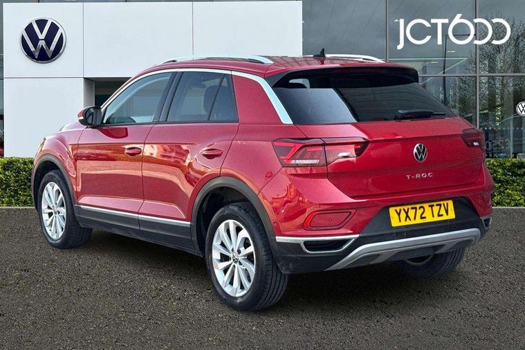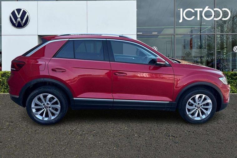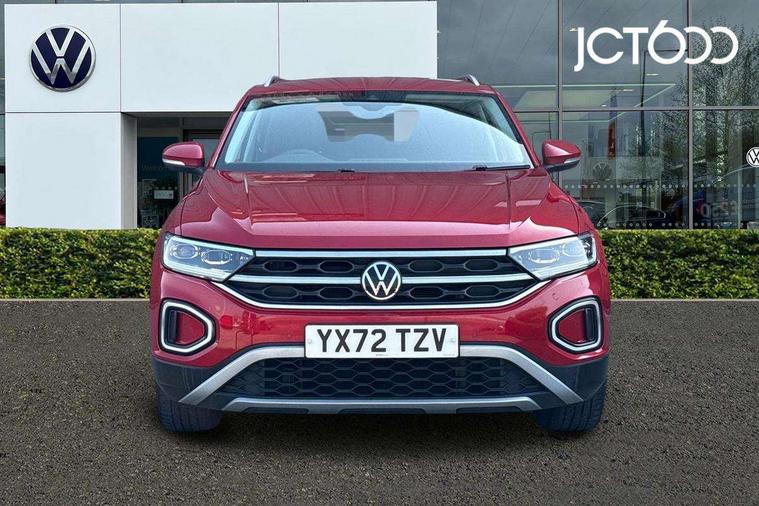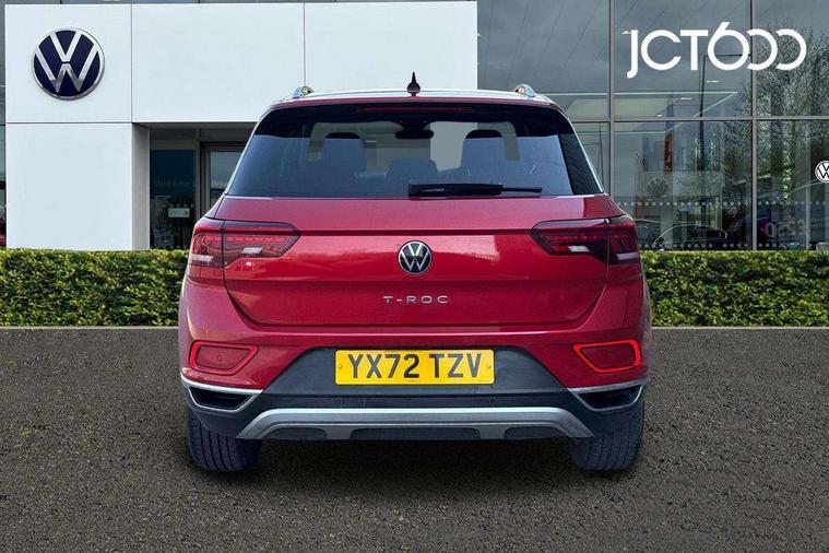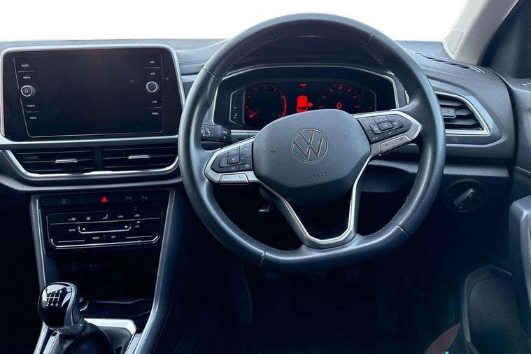 10.25" Digital cockpit pro, Bluetooth mobile phone interface, Driver alert system with fatigue detection, Driver tips and journey analysis, Dynamic road sign display, Emergency call service, Lane keeping system Lane Assist, Modified key software - reduce switch off time for key status change to Long no motion, Online services, Park assist including front and rear parking sensors, Power assisted speed sensitive steering, Service interval indicator, Tailgate/trunk lid release from outside, Think blue trainer driver tips and journey analysis, Warning sound and light for front seatbelts unfastened, Wireless app connect, Battery regeneration during braking, Front shock absorption, Rear shock absorption chassis with increased ride height, Start/stop function with battery regeneration, Diversity antenna for FM reception, Front and rear 6 speakers, Music playback - MP3, WMA and AAC files, Premium USB cable in choice of either Apple or Android smartphone compatibility, SD card slot, Simultaneous pairing of 2 compatible mobile devices, Title and cover art display, We Connect and We Connect Plus functionality, 3rd brake light, Auto dimming interior rear view mirror, Automatic hazard lights activation under emergency braking, Automatic headlight control with LED separate daytime running lights with coming/leaving home function, Body colour sports bumpers with silver metallic underbody fascia, Dynamic headlight range control with self adjusting whilst driving, Extended roof spoiler, Exterior mirrors aspherical on driver side, convex on front passenger side, External USB type C socket and charging sockets, Front windscreen wiper with intermittent wipe and 4 position delay, Heated rear window, LED Plus headlamps, LED rear combination lamps, LED rear number plate lights, LED tail lamp rear comination lamps, Light mode for poor weather, rain, fog or snow, Power windows with comfort operation and circuit breaker, Rain sensor, Rear exhaust tailpipe, Rear fog light on one side and reversing lights on both sides, Rear side wing doors, Rear wash/wipe with intermittent wipe setting, Remote electrically foldable door mirrors, puddle lights and reverse activated passenger's door mirror, 12V power socket in centre console, 3 rear head restraints, 3 seat bench in 2nd row, 4 load lashing points in luggage compartment, Air care climatronic air conditoning system with active combination filter and 2-zone temperature control, Chrome plated radiator grille inserts, air vent surrounds and light switch surrounds, Door and side trim panel with leatherette insert, Drawer under drivers seat, Front + rear carpet mats, Front centre armrest, Front comfort sports seats, Front cupholders x 2, Front footwell illumination, Instrument lighting, white adjustable panel illumination, Interior ambient lighting and surround lighting, Interior light delay, Isofix child seat preparation, Leather gearshift handle, LED interior light with switch off delay/dimmer and 2 front/rear LED reading lights, Load-through provision with cup holder when folded down ('Unsplit rear seat bench, split folding backrest, with centre armrest), Luggage compartment lighting, Non-folding front passenger seat backrest, Single front passenger seat, Storage compartment in left and right luggage area, Storage compartment in rear doors, Storage compartments in driver and front passenger doors, Sunvisors with illuminated vanity mirrors, Variable boot floor, height adjustable and removable, Driver assistance pack without proactive passenger protection - T-Roc, 3 point height adj front seatbelts + pretensioners, 3 point seatbelts in outer rear with ECE label, ABS, Child locks on rear doors, Driver and front passenger airbag with front passenger airbag deactivation, Driver and front passenger safety-optimised head restraints, Drivers seatbelt reminder, Electronic parking brake, Electronic Stability Control (ESC) inc EDL (Electronic Differential Lock) and ASR (Traction Control), Front and rear passengers curtain airbag system including front side airbags, Front assist with city emergency braking and pedestrian monitoring, Front disc brakes, Front seat side impact airbags, Predictive pedestrian protection, Rear disc brakes, Single tone horn, Tyre pressure loss indicator, Volkswagen roadside assistance, Alarm with interior protection, Anti-theft alarm system with interior monitoring, backup horn, and towing protection, Remote central locking with SAFELOCK, radio remote control with 2 remote control folding keys, Trims for alloy wheels,