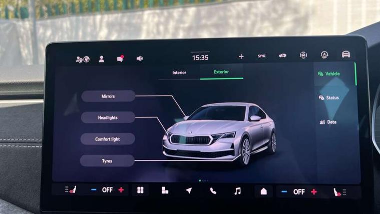1x USB Typc C port in rear view mirror, 4x USB Type C ports - 2x in front centre console and 2x in rear (45W), Drive mode selection, Driver fatigue sensor, eCall emergency system, Electro-mechanical power steering, Front assist system, Traffic sign recognition, Turn Assist, Virtual Cockpit - 10.25" digital display, Voice control system, Wireless charging (15W) with cooling function, Wireless SmartLink for Apple CarPlay and Android Auto, 13" touchscreen display with navigation, DAB Digital radio, Aero front windscreen wipers with intermittent function, Auto dimming rear view mirror, Body colour bumpers, Body colour door mirrors and handles, Chrome grille surround, Chrome strip in lower front bumper, Chrome window surrounds, Electric front and rear windows, Electrically adjustable, heated, folding and driver side auto-dimming door mirrors, Heated rear windscreen, High level third brake light, Ice scraper in fuel cap, LED daytime running lights, LED Headlights, Logo projection in front doors, Rain and light sensors, Rear fog light on one side and reversing lights on both sides, Rear privacy glass, Rear side wing doors, 12 volt socket in boot, 3 rear headrests, 3 seat bench in 2nd row, 4 foldable roof handles, Boot net programme, Electric auxiliary air heater, Front head restraints, Heated front seats, Illuminated glovebox, Interior door handles in dark chrome, Jumbo Box storage, Luggage compartment lighting x2 lights, Mechanical rear seat release from boot, Parcel shelf - folding, Single front passenger seat, Steering wheel in black leather with black stitching, Storage compartment under passenger seat, Storage compartments in left and right of boot, Sun visors with mirrors, Sunglasses storage, Ticket holder, Two-spoke leather multi function steering wheel with paddles, Umbrella in door panel, Unsplit rear bench seat, split folding backrest with centre armrest with cupholder, Comfort package - Octavia, 3x3 point rear seat belts, Alarm with interior monitoring, tilt sensor and back up horn, Curtain airbags and front side airbags, Driver and front passenger airbags, Drivers knee airbag, Electronic parking brake, ESC including ABS, EBV, MSR, ASR, EDS, HBA, DSR, Front central airbag, Hill hold assist, ISOFIX on front passenger seat and outer rear seats, Passenger airbag deactivate switch, Three point seat belts in front and rear, Two tone horn, Tyre pressure monitor, Visual and acoustic seat belt reminder, Warning reflectors in front door, Anti-theft wheel bolts, Keyless entry and start/stop, Remote central locking, Chrome air vent surrounds,