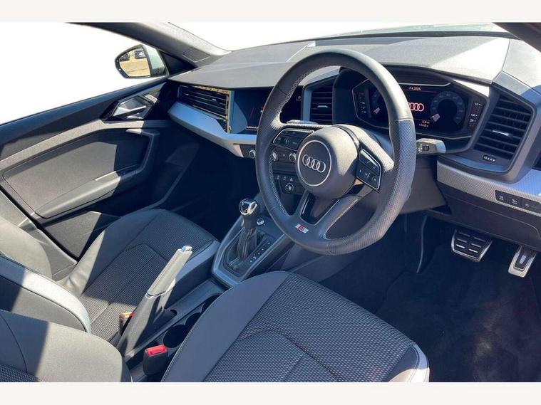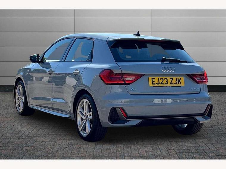 10.25" Digital instrument cluster display classis style instrument dials + speed, odometer, time, outside temperature, telephone menu + fuel level warning, Audi drive select - power steering assistance + engine + gear shift 3 preset modes (auto, dynamic, efficiency and an Individual mode), Audi smartphone interface with connect compatible smartphone via USB directly MMI display + Nav, music, third party apps controlled via MMI controller, Automatic start/stop system, Bluetooth interface, Cruise control, Driver's information system, Electromechanical power steering, Emergency e-call, Lane departure warning system, Rear parking sensor, Service interval indicator, Speed limiter, Voice control system, Washer fluid level indicator, Sports suspension, 2 x USB type C connection points, 6 passive loudspeakers, DAB Digital radio, MMI radio plus with 10.1" colour MMI display screen and MMI touch, Auto dimming rear view mirror, Body coloured door mirrors, Door sills with aluminium inlays and S Line logo, Electric front and rear windows, Electrically adjustable, heated, folding door mirrors with integrated LED side indicator, Front side air inlets in grained matt black and C frame in anthracite black, Heat insulating glass windscreen and side windows, Heated rear windscreen, High level LED brake light, LED headlights with LED rear lights + dynamic rear indicators + headlight adjustment and high beam, turning light + LED daytime running lights, Privacy glass, Radiator grille and rear diffuser in matt anthracite black, Radiator protective grille frame in matt aluminium silver, Rain and light sensors, Rear fog lights, Rear side wing doors, Rear wiper, S line badges on front wings, Side front spoiler lips in grained matt black, 12V socket in centre console with two cup holders, 3 rear seats with headrests, 3 seat bench in 2nd row, 3 spoke leather multi-function plus steering wheel features S badging and grips in perforated leather with contrast stitching, 40:60 Split folding rear seat or folded fully, Black cloth headlining, Driver and passenger seat with manual height adjust with forward and backwards adjustment, Front and rear black floor mats with contrast stitching in fine silver, Front head restraints, Front passenger seat, Height and reach adjustable steering wheel, ISOFIX child seat mounting for front passenger and outer rear seats including top tether attachment point of outer rear seats, Leather gear knob with aluminium trim, Leatherette handbrake grip, Luggage compartment light with front and rear reading lights, Manual air conditioning, Manually adjustable lumbar support in front seats, Stainless steel pedals, LED interior lighting pack - A1, Luggage compartment pack - A1, S line exterior styling pack - A1 Sportback, 3x3 point rear seatbelts, Audi pre-sense front with pedestrain and cyclist recognition, Brake assist function, Driver and front passenger airbag with front side and head airbags, Electronic Stability Control including ABS, EBD, ASR and EDL, Front passenger airbag deactivation switch, Hill hold assist, Manual rear child locks, Seatbelt height adjustment for front seats, Seatbelt monitoring, Tyre pressure warning light, Warning triangle and first aid kit, Anti theft alarm, Anti theft wheel bolts and loose wheel warning, Immobiliser, Remote central locking with 2 foldaway keys, Aluminium trim for control switches, air vents and digital instrument cluster, Black dashboard, Silver grey inlays polygon structure in diamond paint finish, Structured grey accent areas including air vents, door handle recesses and centre console in quartz paint finish,