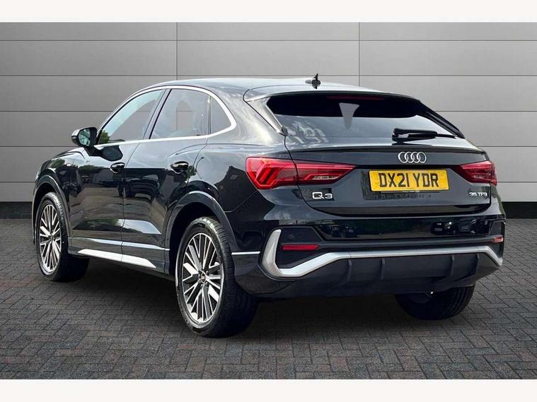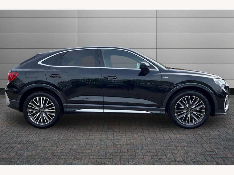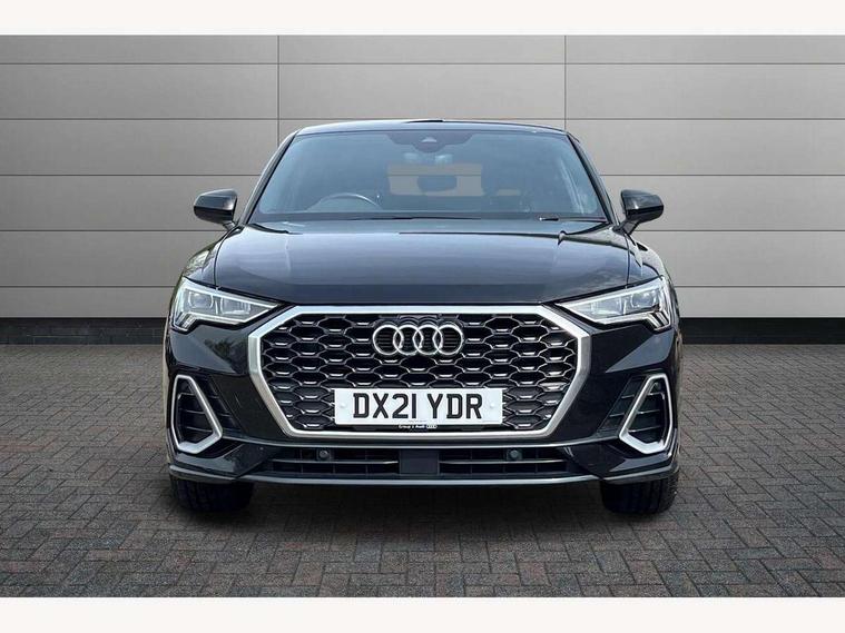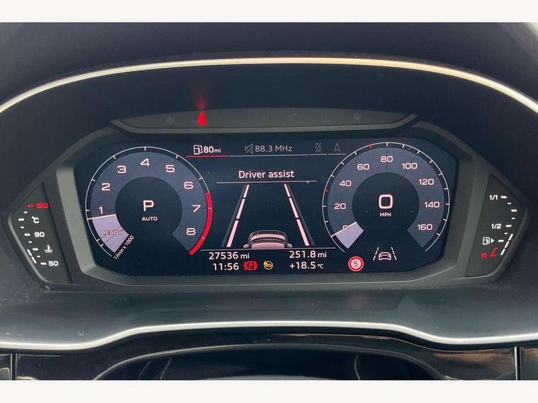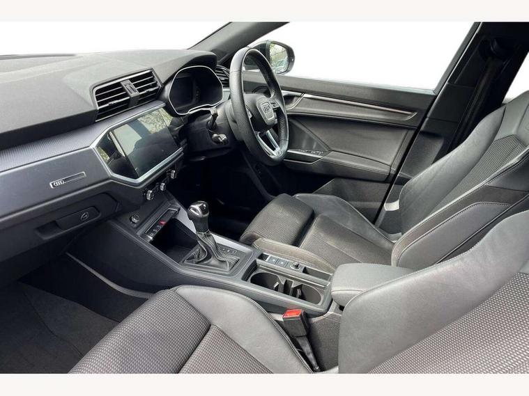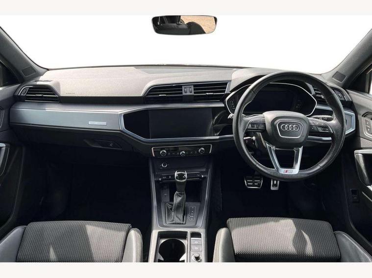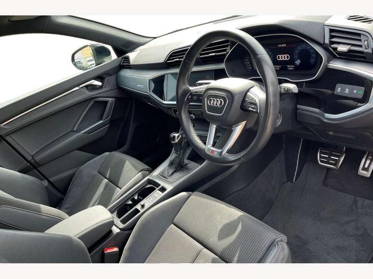 Audi connect safety and service (e-call), Audi drive select, Audi lane departure warning, Audi smartphone interface includes wireless Apple carplay/Android Auto, Audi Virtual Cockpit - 10.25" display, Bluetooth interface, Camera based traffic sign recognition, MMI Navigation Plus with high resolution 10.1 inch touchscreen colour display, Power operated tailgate, Progressive steering, Service interval indicator, Start stop system with recuperation, Voice control system with natural language interaction, 48V Mild hybrid technology, Sports suspension, 2 USB-C ports with charge and data functions, 6 passive loudspeakers, DAB digital radio module, Acoustic windscreen, Aluminium window trim, Auto dimming frameless rear view mirror, Diffuser grille in grained matt black, Diffuser trim in selenite silver, Electrically folding, adjustable and heated door mirrors with integrated LED side indicators and kerb view function for passenger side, Front and rear electric windows, Front fog lights, Front side air inlets in selenite silver, Front underbody protection in manhattan grey paint finish, Grille surround in aluminium silver matt, High gloss black finish B and C pillars, LED headlights with LED daytime running lights and dynamic rear indicator, LED rear lights, Privacy glass dark tinted rear and rear-side windows (from B-pillar backwards), Radiator grille in titanium black with inlay in matt aluminium silver, Rain and light sensors, Rear underbody protection in matt black, S line badges on front wings, Side skirt insert in matt Platinium grey, 12V socket in rear centre console, 40:20:40 folding with manual adjustment for 60:40 forwards/backwards position and backrest angle, Adjustable rear seat bench/backrest with centre armrest and cupholder, Black cloth headlining, Dual zone electronic climate control, Front and rear black floor mats with contrast stitching, Front and rear headrests, Front and rear roof module including reading lights, Front centre armrest, Glove compartment lighting, Height and reach adjustable steering wheel, Illuminated door sill trims with S logo, ISOFIX child seat mounting for front passenger with airbag deactivation and outer rear seat including top tether attachment point for outer rear seats, Luggage compartment light, Manual front seats with height adjustment, Perforated leather gearknob, Stainless steel luggage compartment sill finisher, Stainless steel pedals, Tool kit, Non smoking pack - Q3, 3x3 point rear seatbelts, 6 airbags - Driver, front passenger, curtain and side windows, Audi pre-sense front with pedestrain and cyclist recognition, Electrically operated child locks on rear doors, Electromechanical parking brake, Electronic stabilisation control including ABS, ASR and EDL, Hill descent control, Hill hold assist, Pre sense basic, Seatbelt monitoring, Tyre pressure warning, Warning triangle and first aid kit, Anti theft alarm, Anti theft wheel bolts, Remote central locking, Black dashboard, Dark matt brushed aluminium inlay, Detail dashboard around MMI touch colour display in glass look, black with surround in aluminium look, Leatherette door armrest, Tyre repair kit,