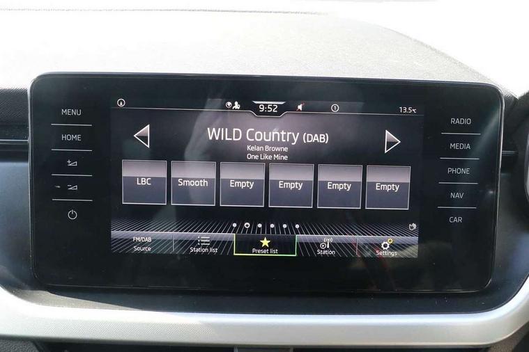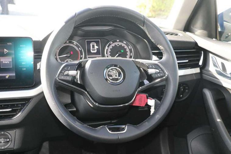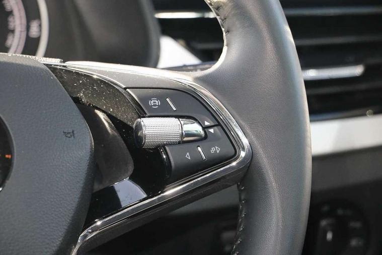 Amundsen satellite navigation with 9.2" glass colour touchscreen display, web radio, voice control and traffic sign recognition, Bluetooth system, E-call, Front assist system, Gesture control, PAS, Service indicator, Speed limiter, Wireless Smartlink for Apple CarPlay (wired for Android Auto), 8 Speakers, Auxiliary input socket, DAB Digital radio, Body colour bumpers, Body colour door mirrors and handles, Chrome grille surround, Dimming rear view mirror with black surround, Electrically adjustable and heated door mirrors, Front and rear electric windows, Headlight range control, Heated rear window, LED rear lights - low functionality, LED third brake light, Light sensors, Privacy glass, Rain sensor, Rear fog lights, Rear side wing doors, Rear wiper, 12V Accessory socket in centre console, 3 seat bench in 2nd row, Chrome inner door handles, Cloth upholstery, Front head restraints, Glove compartment with illumination, Height adjustable driver and front passenger seats - manual, Ice scraper, Isofix child seat fittings on outer rear seats, ISOFIX on front passenger seat, Manual lumbar support for front seats, Rake/reach adjustable steering wheel, Reading lights, Single front passenger seat, Sun visors with illumination on front passenger, Textile floor mats, Third rear headrest, Top tether for front passenger seat, Umbrella in driver's door, 3x3 point rear seatbelts, Airbags - driver and front passenger, ESP, Front passenger airbag deactivation switch, Front side airbags with curtain airbags, Hill hold control, Manual parking brake, Manual rear child locks, One tone horn, Rear disc brakes, Seatbelt reminder for driver an co-driver, Traction control, Tyre pressure monitor, Anti-theft alarm system with interior monitoring, backup horn, towing protection and remote central locking with SAFE system, Anti-theft wheel bolts, Electronic engine immobilizer, Silver haptic decorative insert on the dashboard with hot stamping in glossy black,