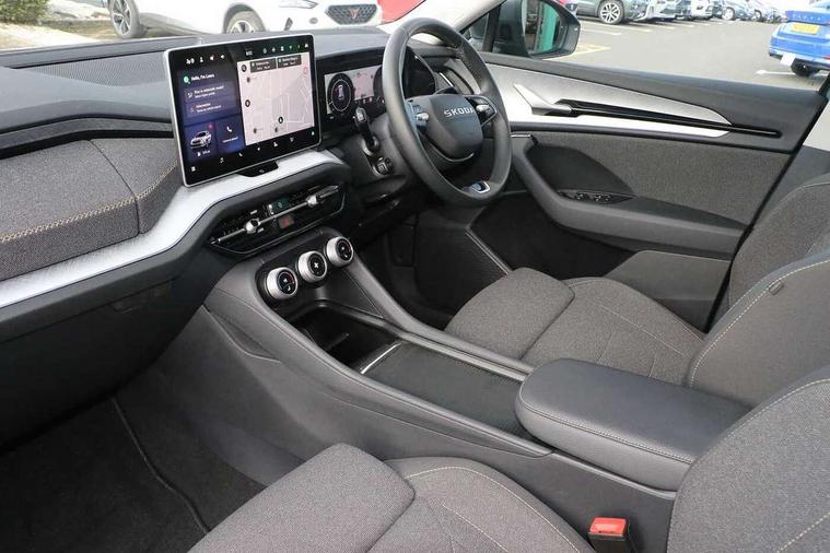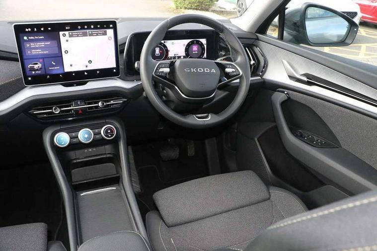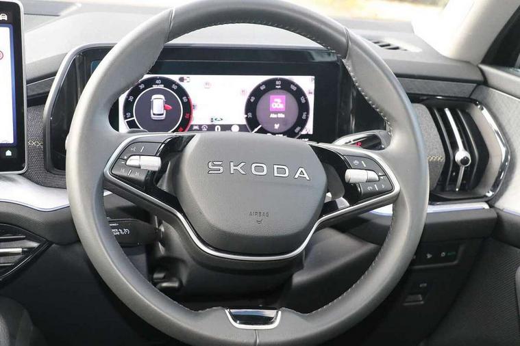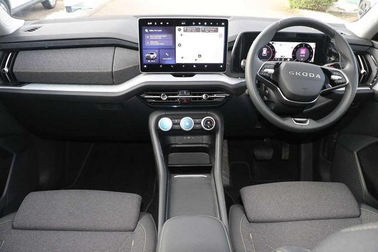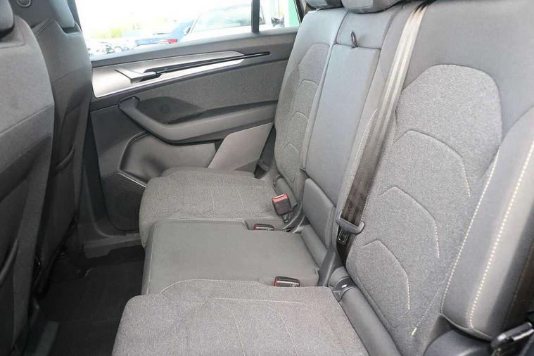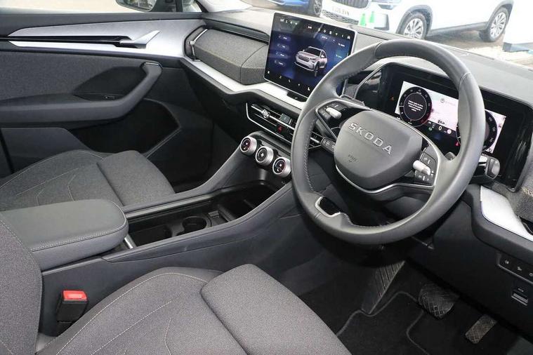 13" satellite navigation touchscreen display, Blind spot detection with door exit warning, Bluetooth system, ChatGPT functionality, Driver alert - Fatigue and drowsiness monitor, Dry display cleaner, Emergency call, Front and rear parking sensors, Front cross traffic assist, Lane assist, PAS, Rear traffic assist, Rear view camera, Tailgate unlocking from outside, Traffic sign recognition, USB C Port x 2 in front centre console, Virtual Cockpit - 10.25" digital display, Voice control system, Wireless charging for two smartphones (15W) with cooling function, Wireless SmartLink for Apple CarPlay and Android Auto, Stop/start function, 2x USB-C in the rear, 8 Speakers, DAB Digital radio, Aero front windscreen wipers with intermittent function, All weather light, Auto dimming rear view mirror, Black wheel arch surrounds, Body colour bumpers, Body colour door mirrors and handles, Cornering light and poor weather light, Electric folding /adjustable/separted heated/folding door mirrors, auto dimming with boarding sports and memory function, Electric front and rear windows, Exterior black decorative trims, Heat insulating glass in windshield, Heated rear window, Ice scraper in fuel tank cap, Invisible tailpipe, LED daytime running lights, LED front fog lamps, LED Headlights, LED rear fog light, LED rear lights, LED third brake light in rear spoiler, Light assistant with automatic headlight control and coming home feature, Logo projection in door mirrors, Rear roof spoiler, Rear side wing doors, Rear window wiper, Safety reflectors on front and rear doors, Unique dark chrome design logo on alloy wheels, Window control switches with black trim, Windscreen wipers with rain sensor, Without engine designation, 1.5l bottle holder points in all door, 1x centre rear reading light, 2 seat bench in 3rd row, 3 configurable smart dials with 32mm coloured display, 3 seat bench in 2nd row, 4 foldable roof handles with rear coat hooks, Ambient interior lighting - Dashboard, front-door stowage compartments, front and rear door panels and footwell lighting, Automatic gear selector on steering column, Chrome interior door handles, Driver/front passenger reading lights, Fabric headlining, Fixed bench 40:60:40 split folding backrests, Front and rear floor mats, Front centre armrest with jumbo box storage compartment, cup holder and 12V socket, Height adjustable front headrests, Isofix child seat fittings in outer middle row rear seats and front passenger with top tether, Manual height adjustment for front passenger seats and thigh support extender, Manual lumbar support for front passenger seat, Manually adjustable steering column, Pollen filter, Rear centre armrest with cupholders, Rear seat boot backrest release, Single front passenger seat, Skoda lettering on steering wheel, Storage pocket including mobile phone pockets on the backs of the front seats, Sunvisors with illuminated vanity mirrors, Three rear height adjustable headrests, Ticket holder on A Pillar, Tri zone climate control, Umbrella in door panel x1 made from sustainable materials, Upper and lower glovebox with card holder and coin compartment, USB C port by rear view mirror for charging only (15W), Variable boot floor, Auto door release and activation of warning lights in the event of an accident, Driver and front passenger airbag with knee airbag and front passenger airbag deactivation, Electric child locks, Electronic parking brake, ESC (incl. ABS+EMD+MSR+ASR+EDL+HBA+DSR+RBS+ESBS+MCB+TSA+XDS), Front assist with braking reaction to vehicles, pedestrians and cyclists, Front disc brakes, Fuel cut off safety device, Height adjustable front 3 point seatbelts + pretensioners, Hill hold assist, Junction assist with automatic emergency braking, Rear disc brakes, Safety vest holder in door, Seat belt reminder for all seats, Three point rear seat belts, Two tone horn, Tyre pressure monitor, Alarm with interior monitoring and tilt sensor with safe function, Anti-theft wheel bolts, Immobiliser, Remote central locking with 2 keys, Breakdown kit, Tool kit,