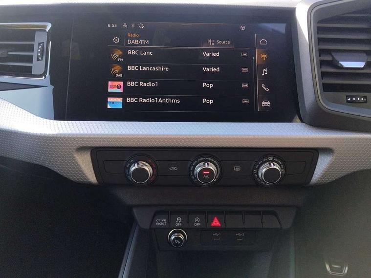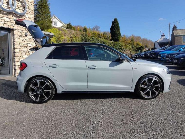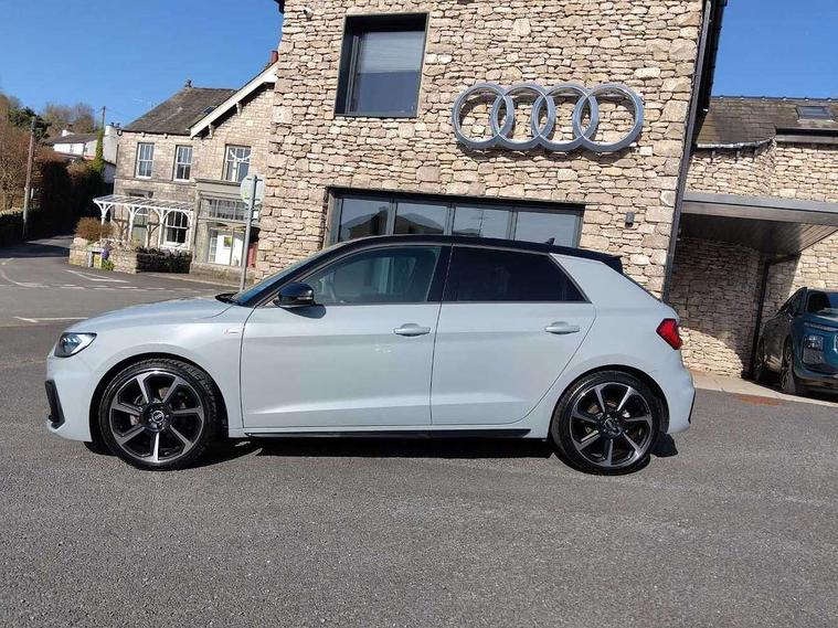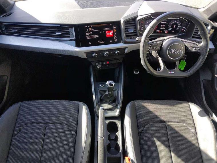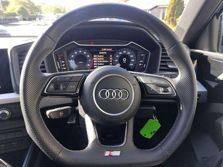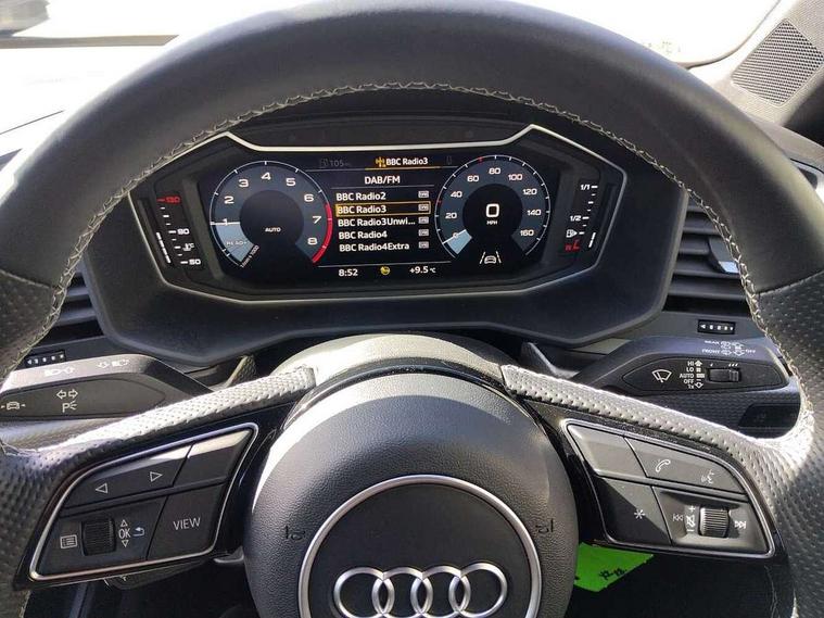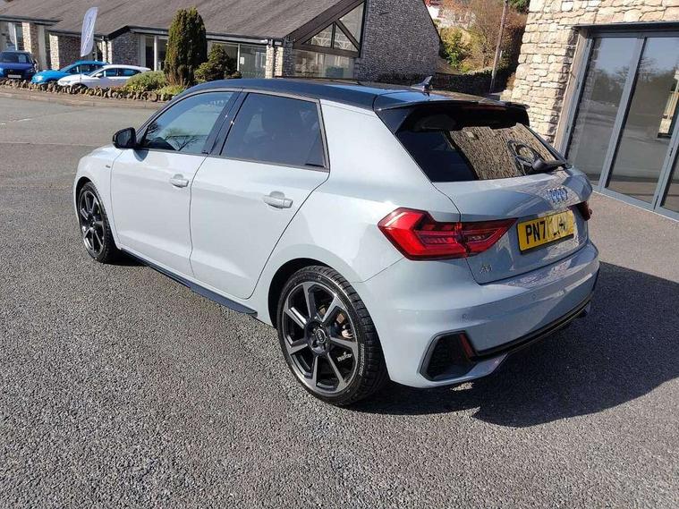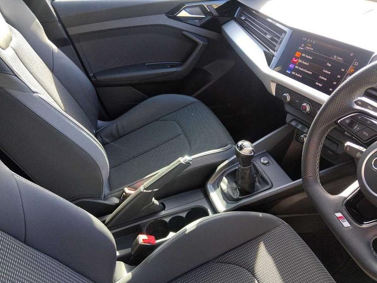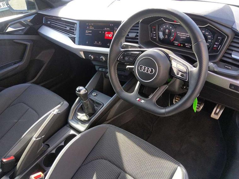 10.25" Digital instrument cluster display classis style instrument dials + speed, odometer, time, outside temperature, telephone menu + fuel level warning, Audi connect safety emergency and service including E-call, Audi drive select - power steering assistance + engine, Audi smartphone interface with connect compatible smartphone via USB directly MMI display + Nav, music, third party apps controlled via MMI controller, Automatic start/stop system, Bluetooth interface, Cruise control, Driver's information system, Electromechanical power steering, Lane departure warning system, Service interval indicator, Speed limiter, Voice control system, Washer fluid level indicator, Sports suspension, 1 x SDXC card reader, 2 x USB type C connection points, DAB Digital radio, MMI radio plus with 8.8" colour MMI display screen and MMI touch, Auto dimming rear view mirror, Black door mirrors, Black side skirts, Body coloured bumpers, Door sill trims with aluminium inlays and logo, Electric front and rear windows, Electrically adjustable, heated, folding door mirrors with integrated LED side indicator, Front side air inlets in grained matt black and C frame in titanium black, Heat insulating glass windscreen and side windows, Heated rear windscreen, LED headlights with LED rear lights + dynamic rear indicators + headlight adjustment and high beam, turning light + LED daytime running lights, Radiator protective grille frame in matt aluminium silver, Rain and light sensors, Rear diffuser strip in matt titanium black, Rear fog lights, Rear wiper, Side front spoiler lips in grained matt black, 12V socket in centre console with two cup holders, 3 rear seats with headrests, 3 spoke flat bottomed multi-function plus leather steering wheel with S badging, grips in preforated leather and contrast stitching, 40:60 Split folding rear seat or folded fully, Black cloth headlining, Driver and passenger seat with manual height adjust with forward and backwards adjustment, Front and rear black floor mats with contrast stitching in fine silver, Front head restraints, Height and reach adjustable steering wheel, ISOFIX child seat mounting for front passenger and outer rear seats including top tether attachment point of outer rear seats, Leather gear knob with aluminium trim, Luggage compartment light with front and rear reading lights, Manually adjustable lumbar support in front seats, Stainless steel pedals, Black styling pack - A1 Sportback Black Edition, LED interior lighting pack - A1, Luggage compartment pack - A1, 3x3 point rear seatbelts, Audi pre-sense front with pedestrain and cyclist recognition, Brake assist function, Driver and front passenger airbag with front side and head airbags, Electronic Stability Control including ABS, EBD, ASR and EDL, Front passenger airbag deactivation switch, Hill hold assist, Seatbelt height adjustment for front seats, Seatbelt monitoring, Tyre pressure warning light, Warning triangle and first aid kit, Anti theft alarm, Anti theft wheel bolts and loose wheel warning, Immobiliser, Remote central locking with 2 foldaway keys, Aluminium trim for control switches, air vents and digital instrument cluster, Silver grey inlays polygon structure in diamond paint finish, Structured grey accent areas including air vents, door handle recesses and centre console in quartz paint finish, 18" 7 spoke rotor design alloy wheels in gloss anthracite black, diamond cut finish,