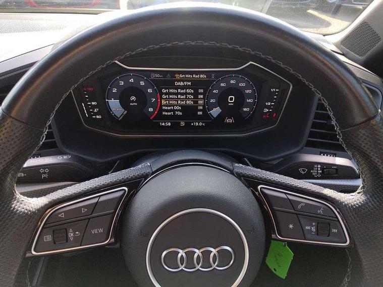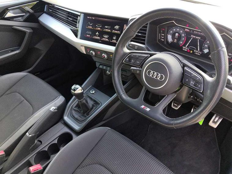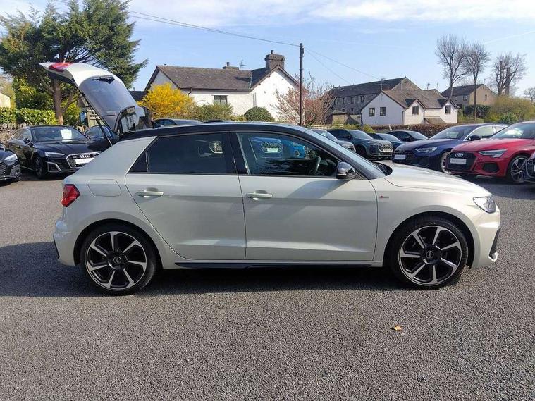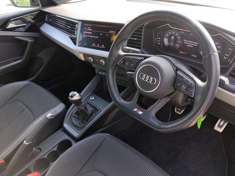 10.25" Digital instrument cluster display classis style instrument dials + speed, odometer, time, outside temperature, telephone menu + fuel level warning, Audi drive select - power steering assistance + engine, Audi smartphone interface with connect compatible smartphone via USB directly MMI display + Nav, music, third party apps controlled via MMI controller, Automatic start/stop system, Bluetooth interface, Cruise control, Driver's information system, Electromechanical power steering, Emergency e-call, Lane departure warning system, Rear parking sensor, Service interval indicator, Speed limiter, Voice control system, Washer fluid level indicator, Sports suspension, 2 x USB type C connection points, 6 passive loudspeakers, DAB Digital radio, MMI radio plus with 10.1" colour MMI display screen and MMI touch, Auto dimming rear view mirror, Black side skirts, Body coloured bumpers, Door sill trims with aluminium inlays and logo, Electric front and rear windows, Electrically adjustable, heated, folding door mirrors with integrated LED side indicator, Front side air inlets in grained matt black and C frame in anthracite black, Front wing badges, Heat insulating glass windscreen and side windows, Heated rear windscreen, High level LED brake light, LED headlights with LED rear lights + dynamic rear indicators + headlight adjustment and high beam, turning light + LED daytime running lights, Privacy glass, Rain and light sensors, Rear fog lights, Rear side wing doors, Rear wiper, Side front spoiler lips in grained matt black, 12V socket in centre console with two cup holders, 3 rear seats with headrests, 3 seat bench in 2nd row, 3 spoke flat bottomed multi-function plus leather steering wheel with S badging, grips in preforated leather and contrast stitching, 40:60 Split folding rear seat or folded fully, Black cloth headlining, Driver and passenger seat with manual height adjust with forward and backwards adjustment, Front and rear black floor mats with contrast stitching in fine silver, Front head restraints, Front passenger seat, Height and reach adjustable steering wheel, ISOFIX child seat mounting for front passenger and outer rear seats including top tether attachment point of outer rear seats, Leather gear knob with aluminium trim, Leather handbrake grip, Luggage compartment light with front and rear reading lights, Manual air conditioning, Manually adjustable lumbar support in front seats, Stainless steel pedals, Black styling pack - A1 Sportback Black Edition, LED interior lighting pack - A1, Luggage compartment pack - A1, 3x3 point rear seatbelts, Audi pre-sense front with pedestrain and cyclist recognition, Brake assist function, Driver and front passenger airbag with front side and head airbags, Electronic Stability Control including ABS, EBD, ASR and EDL, Front passenger airbag deactivation switch, Hill hold assist, Manual rear child locks, Seatbelt height adjustment for front seats, Seatbelt monitoring, Tyre pressure warning light, Warning triangle and first aid kit, Anti theft alarm, Anti theft wheel bolts and loose wheel warning, Immobiliser, Remote central locking with 2 foldaway keys, Aluminium trim for control switches, air vents and digital instrument cluster, Black dashboard, Silver grey inlays polygon structure in diamond paint finish, Structured grey accent areas including air vents, door handle recesses and centre console in quartz paint finish,