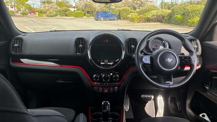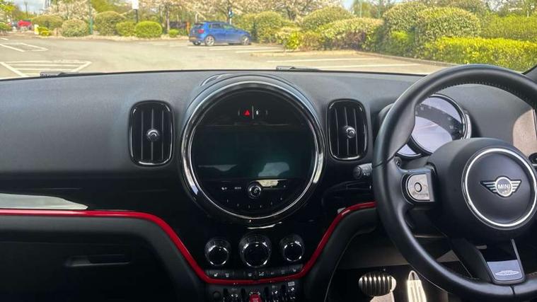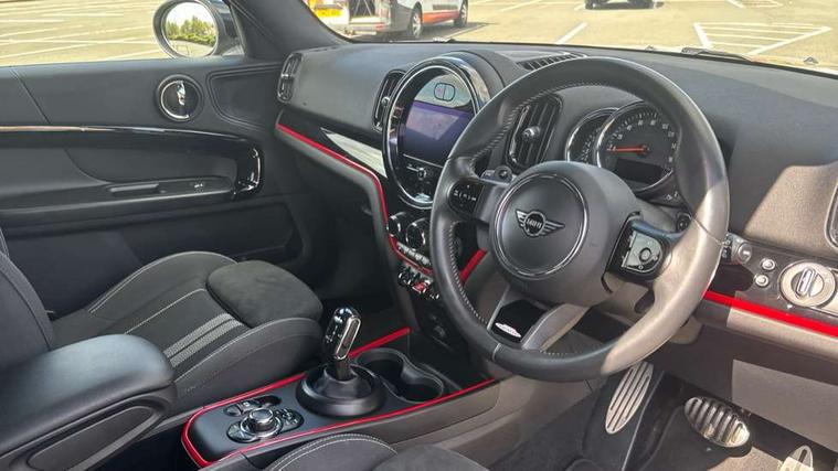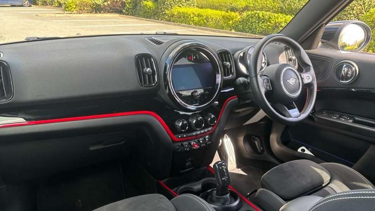 Active Guard incl speed limiting and lane departure functions with auto steering, and front collision warning with brake intervention, Automatic start/stop function with brake energy recuperation, Compatible mobile phone bluetooth with audio streaming, Cruise control with brake assist, Electro-mechanical speed dependant steering assistance, Instrument cluster, MINI Driving Modes - centre toggle switch to control driving setting (sport, mid and green), Mini E-call, On board computer, Rear parking distance control, 51 Litre fuel tank, Double Vanos system, Fully variable valve control, High precision injection, Performance Control, Steptronic sport transmission with double clutch and steering wheel paddles, FM tuner and DAB digital radio, 3rd brake light, Bonnet scoop, Chrome fuel filler cap, Day time driving lights, Dynamic brake lights, Electric windows, Heated rear window, Heated windscreen washer jets, John Cooper Works - aerodynamic kit (front and rear apron, spoiler), front and rear sport bumpers and part-painted side sills with door sill finishers, John Cooper Works Logo, LED fog lights, LED Headlights, Metal door sill strips with Cooper S imprint, Model logo, Model logo on Tailgate, Rain sensor with auto headlights, Rear fog lights, Rear side wing doors, Rear window wiper, Side scuttle panel with integrated indicator, Split rear doors, Sun/heat protection glass, White indicator lenses, 12V socket in centre console, 3 seat bench in 2nd row, 360L luggage compartment capacity, 4 lashing eyes in luggage compartment, 40:20:40 split folding rear seats, Anthracite headlining with grab handles and clothes hooks, Chrome interior highlights, Colour line - Carbon black, Cupholders, English handbook, Floor mats, Front headrests, Glove compartment, Height and length steering column adjustment, Interior lighting with 12 basic colours selectable via toggle switch in roof, Isofix rear child seat preparation, LED reading lights, vanity mirror lights, front foot well light and spotlight on front seats, Manual air conditioning, Mini John Cooper Works leather gearshift lever and handbrake gaiters, Multifunction steering wheel, Nappa leather steering wheel with MINI Yours logo, Rear headrests, Single front passenger seat, Stainless steel pedals and foot rest, Storage compartments in doors, Sunvisors with vanity mirrors, Excitement pack - Countryman, Navigation pack - Countryman, Piano black exterior pack - Countryman Cooper S/SD/SE/Boardwalk, 2 tone horn, 3 point seatbelts on all seats, 6 Airbags - front, side, head and seat belt tensioners, Anti-lock braking system (ABS), DSC - Dynamic Stability Control, Electronic handbrake, Front and rear disc brakes, Hill start assist, Manual rear child locks, Tyre pressure monitoring system, Alarm system with tilt sensor, monitoring doors, bonnet interior and tailgate, Auto drive away locking, Deadlocking function, Electronic vehicle immobiliser, Locking wheel bolts, Start/stop toggle with keyless go, Piano black JCW interior trim, Tool kit,