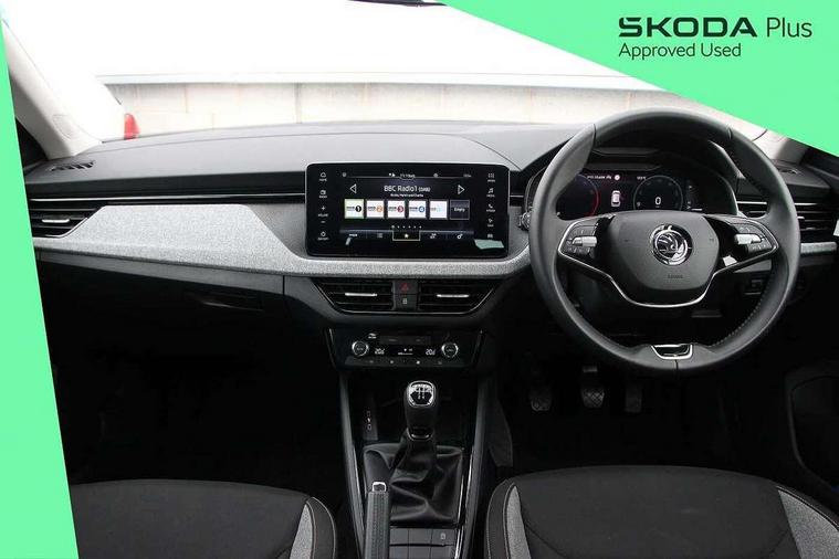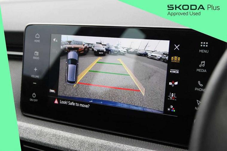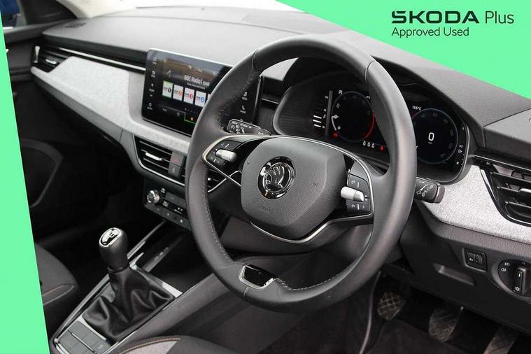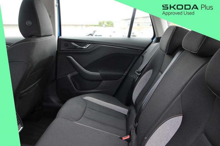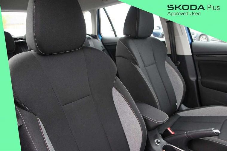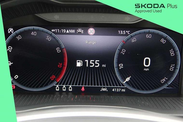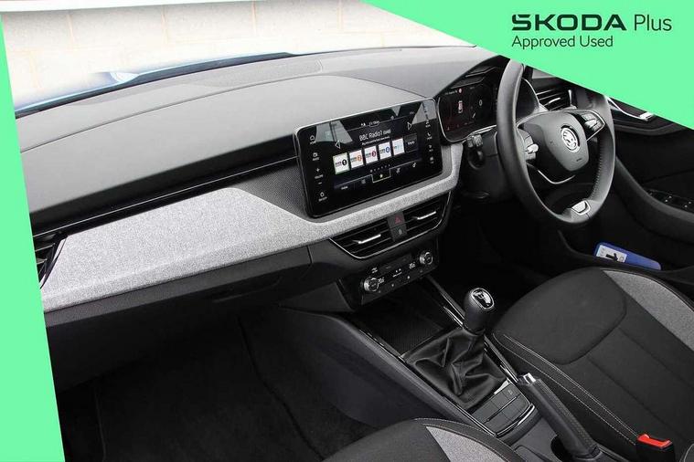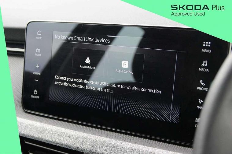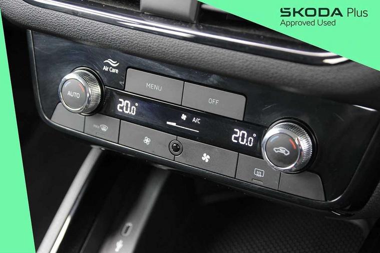 Advanced driver attention and drowsiness monitor, Bluetooth system, E-call, Front assist system, PAS, Rear parking sensors, Rear view camera, Service indicator, Speed limiter, Traffic sign recognition, Virtual cockpit with 10.25" display, Voice control system, Wireless smartlink, 4 USB C ports, 8 Speakers, 8.25" Skoda infotainment display, 9.2" Skoda navigation display, DAB Digital radio, Auto dimming rear view mirror, Automatic headlight control with coming home and leaving home feature, Black roof rails, Body colour bumpers, Body colour door mirrors and handles, Chrome grille surround, Front and rear electric windows, Full LED headlights, Heated rear window, LED brake lights, LED daytime running lights, LED front turning lights, LED high beam, LED low beam, LED third brake light, Rear LED fog light, Rear side wing doors, Rear wiper, Ticket holder inside windscreen, 12V socket in luggage compartment, 3 seat bench in 2nd row, Black hotstamping, Cargo elements, Chrome inner door handles, Driver and passenger sun visors with vanity mirror, Dual zone climate control, Front and rear roof lights, Front centre armrest, Front head restraints, Glove compartment with illumination, Height adjustable driver seat, Height adjustable front passenger seat, Ice scraper, Inner circulation control with pollen filter, ISOFIX on front passenger seat, Isofix preparation for back seats, Krepp recycled decor inserts, Leather gearknob and handbrake lever, Loft cloth upholstery, Manual lumbar support for front seats, Net package and top tether hooks in boot space, Net under rear shelf, Overhead glasses storage compartment, Pocket on the back of both front seats include mobile phone pockets, Rake/reach adjustable steering wheel, Reading lights, Satin black door inserts, Single front passenger seat, Textile floor mats, Third rear headrest, Top tether for front passenger seat, Umbrella in driver's door, 3x3 point rear seatbelts, Airbags - driver and front passenger, Disc brakes, ESP, Extended and predictive pedestrian/cyclist protection, Front passenger airbag deactivation switch, Front side airbags with curtain airbags, Hill hold control, Manual leather parking brake, Manual rear child locks, One tone horn, Seatbelt reminder for driver an co-driver, Traction control, Tyre pressure monitor, Anti-theft alarm system with interior monitoring, backup horn, towing protection and remote central locking with SAFE system, Anti-theft wheel bolts, Electronic engine immobilizer,