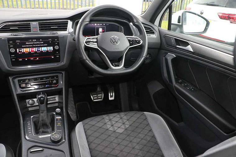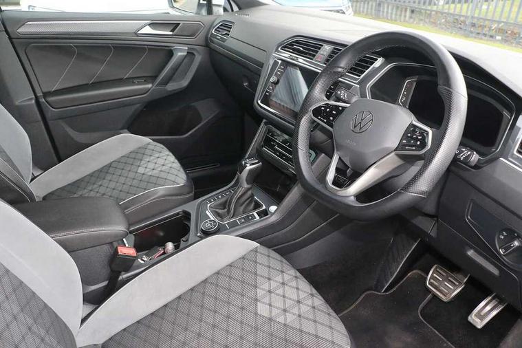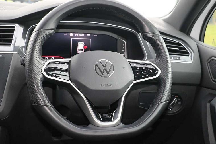 Adaptive cruise control ACC stop and go including speed limiter, App-Connect incl. App-Connect Wireless for Apple CarPlay and Android Auto, Bluetooth phone integration system, Digital Cockpit Pro - Active info display, Distance control assist, Driver alert system, Driver profile selection, Dynamic road sign display, eCall emergency call system, Electromechanical speed sensitive power steering, Engine start/stop button, Lane keeping system Lane Assist, Lights on warning, Multifunction front facing camera, Outside temperature display, Premium multifunction display with multi colour display, Remote control boot opening, Rev counter, Revision / skills operating concept travel assistant, Service interval indicator, Speed limit display, Start/stop system with regenerative braking, Trip computer, Warning sound and light for doors and tailgate open, All wheel drive - 4Motion, Battery regeneration during braking, XDS electronic differential lock for improved traction and handling, 2 USB-C ports in the front, 1 USB-C charging socket on the center console in the rear, Diversity antenna for FM reception, Radio, SD card slot, Simultaneous pairing of 2 compatible mobile devices, SMS functionality - read, compose and send SMS messages using touch-screen display, Title and cover art display, Auto dimming interior rear view mirror, Automatic headlight control system, Black roof rails, Body colour door handles, Body coloured bumpers in R Line style, Body coloured door mirrors with integrated indicators, Chrome moldings on the side windows, Coming/leaving home lighting function, Dynamic headlight range control, Front and rear electric windows, Heated rear window, High level 3rd brake light, Laminated safety glass windshield, heat and sound insulating, LED rear number plate lights, License plate carrier in front and rear, Poor weather light and cornering light, Privacy glass for rear side windows and rear window, R Line body kit, R Line side sills, Rain sensor windscreen wipers, Rear exhaust tailpipe, Rear fog lamp, Rear side wing doors, Rear spoiler in R style, Rear windscreen washer and wiper with interval delay, Side and rear windows in heat insulating glass, Trailer Stability Programme, Unique R Line badging, Windscreen wipers/ intermittent wipe + 4 position delay, 12V outlet in center console rear and in luggage compartment, 12V outlet in front and tray, 2 cup holders in front, 2 LED front reading lights, 2 LED rear reading lights, 3 bench rear seats in 2nd row, 3 rear headrests, 4 load lashing points, 40:20:40 split folding rear seats, Air Care Climatronic 3 zone automatic climate control with enhanced air filter and controls in the rear, Backrest release for left front seat, Black headlining, Brushed stainless steel pedals and footrest, Carpet mats in front and rear with decorative stitching in Gray, Climate control unit rear with touch function, Door and side trim panel in foam film, insert in leatherette, Front centre armrest, Front footwell illumination, Front seats head restraints (x-adjustment), Height adjustable front seats, Height/reach adjust steering wheel, Instrument lighting white adjustable panel illumination, Interior light with delay, Isofix Preparation 2 Rear child seats, Leather gear knob, Lockable cooled glovebox, Luggage compartment lighting, Luggage net, Rear bench seat asymetrically split folding, longitudinally movable and folding with load-through hatch and center armrest, Remote unlocking for rear seat backrest, Removable luggage cover, Removable rear headrests, Safety optimised front head restraints, Single front passenger seat, Sliding/reclining rear seats, Standard rear seat release, Storage compartment in driver's door, Storage compartment in passenger's door, Storage compartment in rear doors, Storage compartments in luggage area left and right, Storage tray on dashboard, Sun visors with illuminated vanity mirrors, Top front comfort seats, Variable boot floor, height adjustable and removable, Ambience pack - Tiguan R Line, Driver assistance pack plus - Tiguan DSG, Park assist pack - Tiguan, 3 point seat belt for centre rear seats, 3 point seat belts with seat belt pretensioners for the outer rear seats, Active bonnet, Curtain airbags for front and rear passengers, Driver/Front Passenger airbags, Drivers knee airbag, Electronic parking brake with auto hold, Electronic Stability Control with driver steering recommendation, ABS, ASR, EDL, EDTC and trailer stabilization, Front assist with autonomous emergency braking (for Adaptive Cruise Control ACC up to 130 mph), Front disc brakes, Front passenger airbag deactivation, Front side airbags, Height adjustable front 3 point seatbelts + pretensioners, Hill hold control, Manual child proof rear door locks, Pedestrian monitoring system, Power assisted brakes, Proactive passenger protection system in combination with front assist, Rear disc brakes, Rigid safety cell with front and rear crumple zones, Two tone horn, Warning sound and light for front seat belts if unfastened, Anti theft alarm system with interior monitoring, backup horn and towing protection, Anti theft wheel bolts, Electronic engine immobiliser, 20" Misano black with diamond turned surface alloy wheels with Airstop tyres, Tool kit,