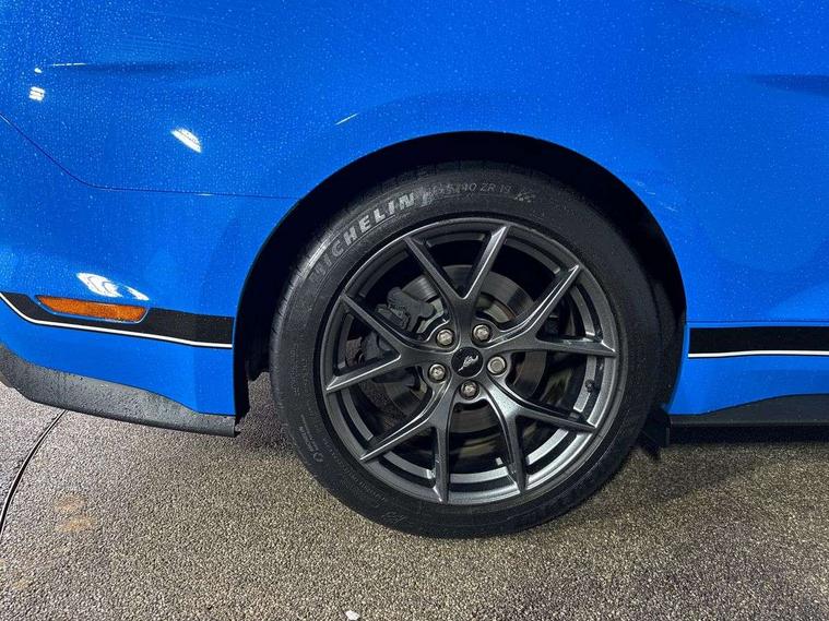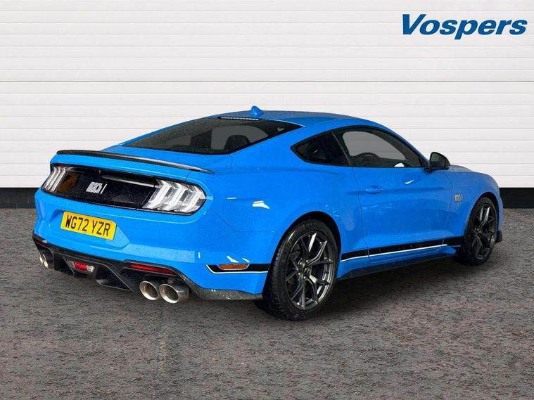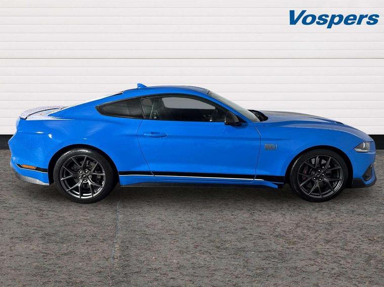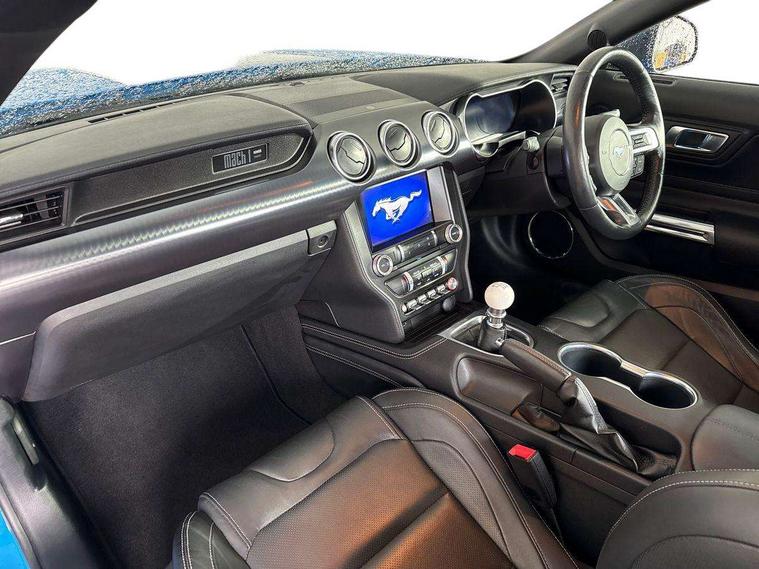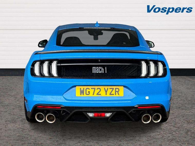 12" digital LCD instrument cluster, 8" colour touch screen, Apple car play/Android Auto, Bluetooth connectivity with voice control, Cruise control with adjustable speed limiter, Emergency services call system, Ford copilot 360, Ford pass connect embedded modem, Ford SYNC 3 satellite navigation + B and O 1000w premium audio system with 12 speakers, Lane keeping aid with lane keeping assist, Oil pressure gauge, Rear view camera, Selectable driving modes - normal, mymode, snow/wet, sport+, track and drag mode, Service interval indicator, SYNC Emergency Assistance, Track apps with accelerometer technology, Trip computer, Unique front splitter, belly pan and rear defuser upto 25% more downforce, Unique Mach 1 steering - new EPAS Calibration, front and rear subframe, Launch control, Limited slip differential, Magneride adaptive suspension system, Open air induction system, Unique Mach 1 suspension set up - stiffer bars and front springs, DAB Digital radio, USB connection, 3rd brake light, 5.0 Exterior badge on front wings, Active exhaust system with chrome tips, Auto dimming rear view mirror, Auto high beam, Automatic headlights, Automatic rain sensing wipers, Body colour bumpers, Bonnet air intake, Electric front windows, LED headlamps with daytime running lights and LED fog lamps, LED rear lights, Low gloss magnetic mirror caps, Mach 1 badge on instrument panel with unique chassis number, Mach 1 fender and rear bootlid badge, Magnetic decklid spoiler, Power folding door mirrors with Mustang logo projection puddle lamps, Rear boot, Unique Mach 1 front bumper design, Unique Mach 1 front grille with low gloss magnetic pony badge, 6 way power adjustable front seats and driver seat power lumbar adjust, Ambient lighting, Cup holders, Dual electronic automatic temperature control, Front headrests, Heated steering wheel, Illuminated entry system, Individually folding 2 rear seats in 2nd row, Isofix system on outer rear seats, Leather multifunction steering wheel, Reach and rake adjustable leather steering wheel with integrated controls, Rear head restraints, Single front passenger seat, Unique white cue ball gearknob, Track capable aero dynamics pack - Mustang, Track capable cooling pack - Mustang, Unique Mach 1 stripe pack - Mustang, 4 seatbelts, ABS, Drivers knee airbag, Dual front airbags, Electronic Line Lock, Electronic Stability Control (ESC) with three settings, ESP, Front side airbags, Pre-collision assist with AEB and pedestrian and cyclist detection, Side curtain airbags, Tyre pressure monitor, Ford key free system with power starter button and keyless entry, Immobiliser, MyKey system, Thatcham Cat.1 alarm, Michelin pilot sport 4 tyres, Tyre repair kit,