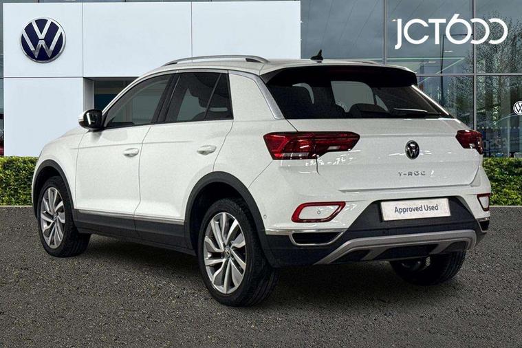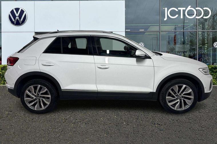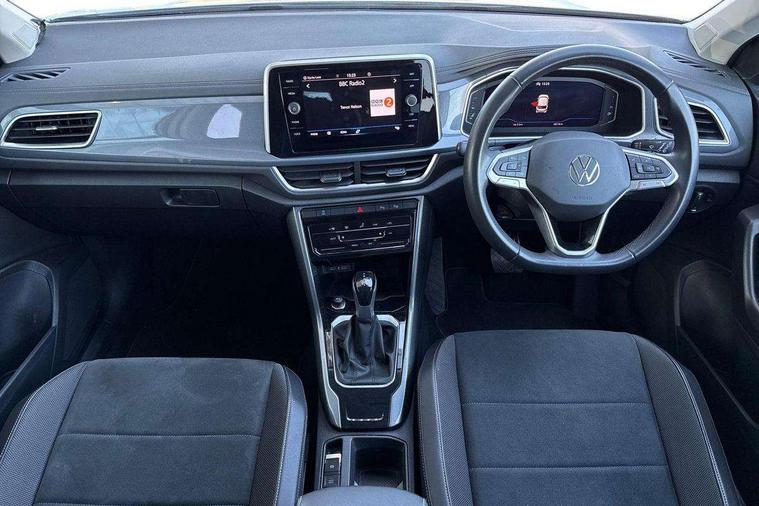 10.25" Digital cockpit pro, Bluetooth mobile phone interface, Driver alert system with fatigue detection, Driver tips and journey analysis, Emergency call service, Lane keeping system Lane Assist, Modified key software - reduce switch off time for key status change to Long no motion, Online services, Park assist including front and rear parking sensors, Service interval indicator, Tailgate/trunk lid release from outside, Think blue trainer driver tips and journey analysis, Warning sound and light for front seatbelts unfastened, Wireless app connect, Battery regeneration during braking, Start/stop function with battery regeneration, Diversity antenna for FM reception, Music playback - MP3, WMA and AAC files, Premium USB cable in choice of either Apple or Android smartphone compatibility, SD card slot, Simultaneous pairing of 2 compatible mobile devices, Title and cover art display, We Connect and We Connect Plus functionality, 3rd brake light, Auto dimming interior rear view mirror, Automatic hazard lights activation under emergency braking, Automatic headlight control with LED separate daytime running lights with coming/leaving home function, Body colour sports bumpers with silver metallic underbody fascia, Dynamic headlight range control with self adjusting whilst driving, Extended roof spoiler, Exterior mirrors aspherical on driver side, convex on front passenger side, External USB type C socket and charging sockets, Front windscreen wiper with intermittent wipe and 4 position delay, Heated rear window, LED rear combination lamps, LED rear number plate lights, LED tail lamp rear comination lamps, Light mode for poor weather, rain, fog or snow, Power windows with comfort operation and circuit breaker, Rain sensor, Rear exhaust tailpipe, Rear fog light on one side and reversing lights on both sides, Rear side wing doors, Rear wash/wipe with intermittent wipe setting, Remote electrically foldable door mirrors, puddle lights and reverse activated passenger's door mirror, 12V power socket in centre console, 3 rear head restraints, 3 seat bench in 2nd row, 4 load lashing points in luggage compartment, Air care climatronic air conditoning system with active combination filter and 2-zone temperature control, Chrome plated radiator grille inserts, air vent surrounds and light switch surrounds, Door and side trim panel with leatherette insert, Drawer under drivers seat, Front + rear carpet mats, Front centre armrest, Front comfort sports seats, Front cupholders x 2, Front footwell illumination, Instrument lighting, white adjustable panel illumination, Interior ambient lighting and surround lighting, Interior light delay, Isofix child seat preparation, Leather gearshift handle, LED interior light with switch off delay/dimmer and 2 front/rear LED reading lights, Load-through provision with cup holder when folded down ('Unsplit rear seat bench, split folding backrest, with centre armrest), Luggage compartment lighting, Non-folding front passenger seat backrest, Single front passenger seat, Storage compartment in left and right luggage area, Storage compartment in rear doors, Storage compartments in driver and front passenger doors, Sunvisors with illuminated vanity mirrors, Variable boot floor, height adjustable and removable, Driver assistance pack without proactive passenger protection - T-Roc, 3 point height adj front seatbelts + pretensioners, 3 point seatbelts in outer rear with ECE label, ABS, Child locks on rear doors, Driver and front passenger airbag with front passenger airbag deactivation, Driver and front passenger safety-optimised head restraints, Drivers seatbelt reminder, Electronic parking brake, Electronic Stability Control (ESC) inc EDL (Electronic Differential Lock) and ASR (Traction Control), Front and rear passengers curtain airbag system including front side airbags, Front assist with city emergency braking and pedestrian monitoring, Front seat side impact airbags, Predictive pedestrian protection, Rear disc brakes, Single tone horn, Tyre pressure loss indicator, Volkswagen roadside assistance, Anti-theft alarm system with interior monitoring, backup horn, and towing protection, Remote central locking with SAFELOCK, radio remote control with 2 remote control folding keys, Trims for alloy wheels,