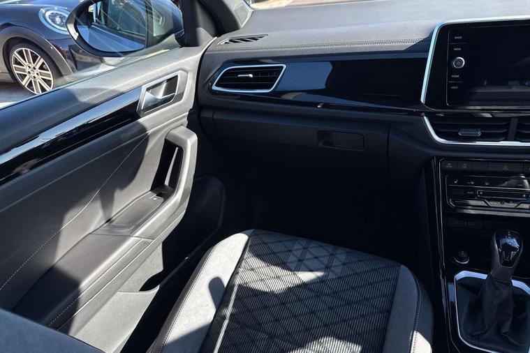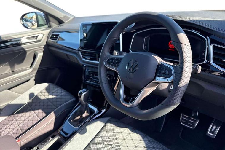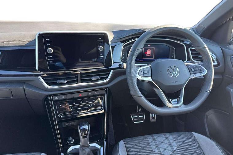 10.25" Digital cockpit pro, Advanced driver attention and drowsiness monitor, Dynamic road sign display, Emergency call service, Lane keeping system Lane Assist, Mobile phone interface, Modified key software - reduce switch off time for key status change to Long no motion, Online services, Park assist including front and rear parking sensors, Service interval indicator, Tailgate/trunk lid release from outside, Think blue trainer driver tips and journey analysis, Warning sound and light for front seatbelts unfastened, Wireless app connect, Battery regeneration during braking, Start/stop function with battery regeneration, DAB Digital radio, Diversity antenna for FM reception, Front and rear 6 speakers, Music playback - MP3, WMA and AAC files, Premium USB cable in choice of either Apple or Android smartphone compatibility, SD card slot, Simultaneous pairing of 2 compatible mobile devices, Title and cover art display, We Connect and We Connect Plus functionality, Auto dimming interior rear view mirror, Automatic hazard lights activation under emergency braking, Automatic headlight control with LED separate daytime running lights with coming/leaving home function, Body coloured exterior mirror housings and door handles, Electrically adjustable and heated door mirrors, Extended roof spoiler, Exterior mirrors aspherical on driver side, convex on front passenger side, External USB type C socket and charging sockets, Front windscreen wiper with intermittent wipe and 4 position delay, Heated rear window, LED 3rd brake light, LED rear combination lamps, LED rear number plate lights, Power windows with comfort operation and circuit breaker, Privacy glass for rear side windows and rear window, R-Line design body coloured bumpers, Rain sensor, Rear exhaust tailpipe, Rear fog light on one side and reversing lights on both sides, Rear side wing doors, Rear wash/wipe with intermittent wipe setting, Remote electrically foldable door mirrors, puddle lights and reverse activated passenger's door mirror, 12V power socket in centre console, 3 rear head restraints, 3 seat bench in 2nd row, 4 load lashing points in luggage compartment, Air care climatronic air conditoning system with active combination filter and 2-zone temperature control, Black roof lining, Chrome plated decorative trims, Chrome plated radiator grille inserts, air vent surrounds and light switch surrounds, Door and side trim panel with leatherette insert, Front + rear carpet mats, Front centre armrest, Front cupholders x 2, Front footwell illumination, Front reading light, Front scuff plates with R Line logo, Front seat back storage pockets, Glove compartment door with light, Instrument lighting, white adjustable panel illumination, Interior ambient lighting and surround lighting, Interior light delay, Isofix child seat preparation, Leather gearshift handle, Load-through provision with cup holder when folded down ('Unsplit rear seat bench, split folding backrest, with centre armrest), Luggage compartment lighting, Single front passenger seat, Stainless steel pedals, Storage compartment in left and right luggage area, Storage compartment in rear doors, Storage compartments in driver and front passenger doors, Sunvisors with illuminated vanity mirrors, Variable boot floor, height adjustable and removable, Driver assistance pack without proactive passenger protection - T-Roc, 3 point height adj front seatbelts + pretensioners, 3 point seatbelts in outer rear with ECE label, ABS, Child locks on rear doors, City emergency braking and pedestrian monitoring, Driver and front passenger airbag with front passenger airbag deactivation, Driver and front passenger safety-optimised head restraints, Drivers seatbelt reminder, Electronic parking brake, Electronic Stability Control (ESC) inc EDL (Electronic Differential Lock) and ASR (Traction Control), Front and rear passengers curtain airbag system including front side airbags, Hill start assist, Predictive pedestrian protection, Rear disc brakes, Two tone horn, Tyre pressure loss indicator, Volkswagen roadside assistance, Piano black decorative inserts in dashboard and front door trim panels, Trims for alloy wheels,