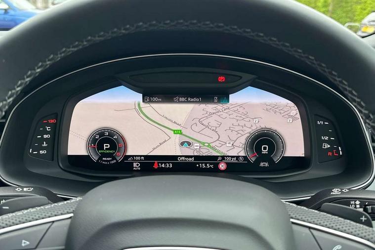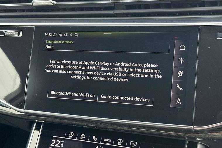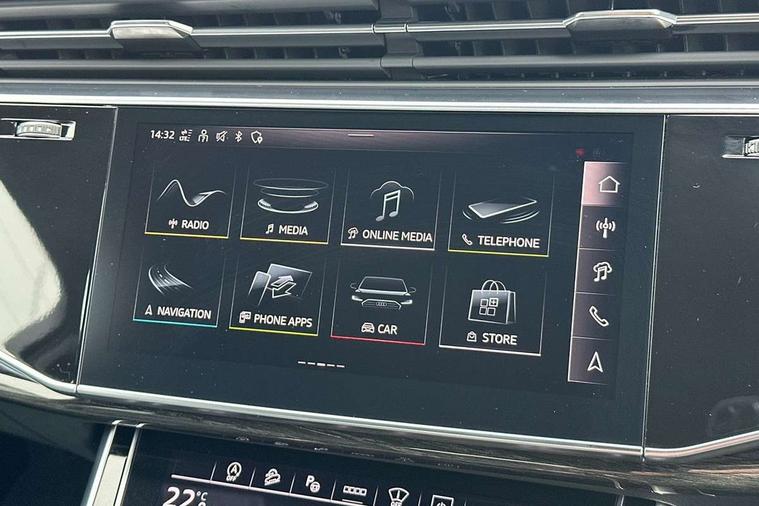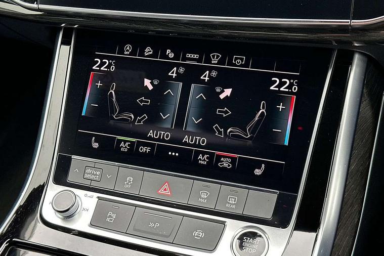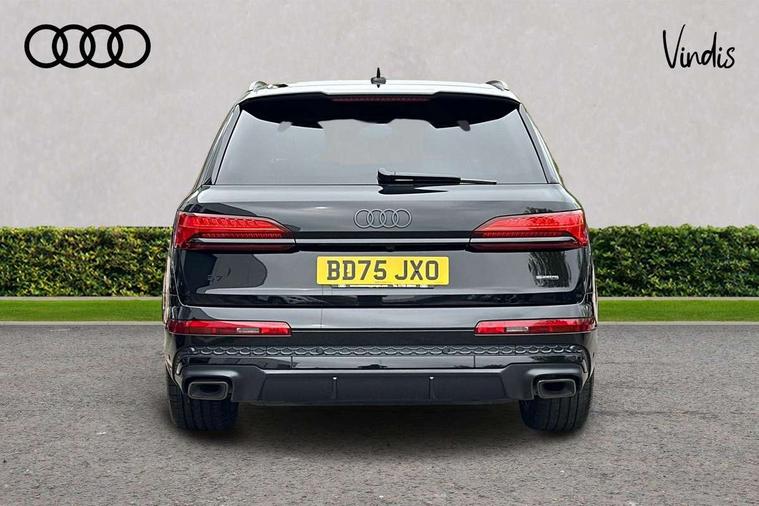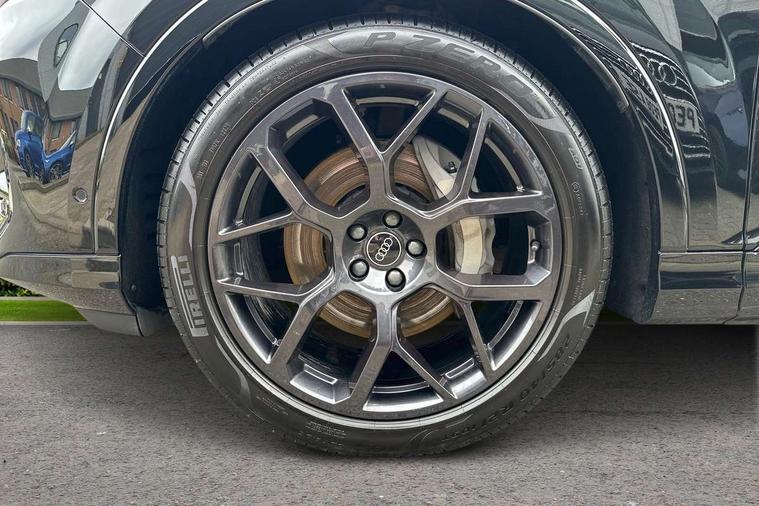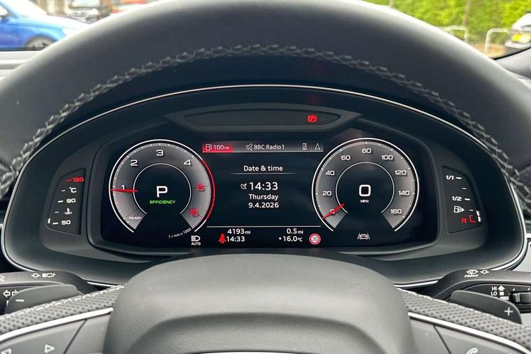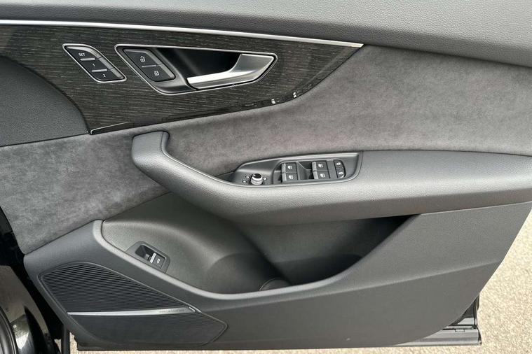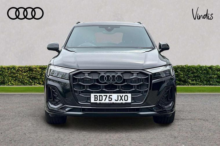 Audi connect safety and service (e-call), Audi connect with Amazon Alexa Integration, Audi drive select (Auto, Comfort, Dynamic, Efficiency, Individual, Off-road and All road), Audi phone box light with wireless charging, Audi virtual cockpit - 12.3" high-resolution LCD display with fully customisable instrument cluster, Bluetooth interface, Camera based traffic sign recognition, Electromechanical power steering, MMI navigation plus with MMI touch screens includes 10.1" and 8.6" screens with haptic feedback, Natural voice recognition, Operating buttons in Matte black, Parking system plus with 360 degree display (front, rear and side sensors) - acoustic and visual park assist system, Power operated tailgate, Rear view camera, Smartphone interface includes wireless Apple carplay/Android Auto, Start/stop system, 48V Mild hybrid technology, Adaptive air sports suspension, Quattro all wheel drive with self locking centre differential, Audi music interface - front 2 USB-C ports with charger and data functions, Audi sound system with 6 channel amplifier, 180 watt amplifying capacity and 10 loudspeakers including subwoofer, DAB digital radio module, Aluminium window trim, Audi Beam uses LEDs to project S emblem with red rhombus onto the ground when opening the side doors (front/rear), Auto dimming frameless rear view mirror, Black exhausts, Black roof rails, Electrically adj heated/folding + automatically dimming exterior mirrors with memory + automatic kerb side function for passenger side exterior mirror, Heat insulating glass in windshield, Integrated LED indications in door mirrors, LED 3rd brake light, LED daytime running lights, LED rear tail lights, Loading edge protection in stainless steel, Matrix LED headlights with dynamic front and rear indicators, Privacy glass - dark tinted rear and rear side windows from B-pillar backwards, Rear side wing doors, Rear wiper, 2 seat bench in 3rd row, 2 zone automatic climate control, 3 seat bench in 2nd row, 7 seat layout with ISOFIX points for the front passenger seat and rear passenger seat, Black carpets, Black cloth headlining, Comfort front centre armrest, Electric adjustable front seat with 4 way lumbar support, driver memory functionality, Folding rear seats, Front head restraints, Front/rear floor mats, Heated front seats, Illuminated door sill trims with S logo, ISOFIX child seat mounting for front passenger seat and 2 outer rear seats with top tether child seat mounting for all 3 rear seats, LED interior ambient lighting, Luggage compartment cover, Luggage compartment sill protection in stainless steel, Rear head restraints, Rear seat bench plus for the second row, with forwards/backwards sliding adjustment and backrest angle adjustment, Single front passenger seat, Stainless steel pedals, Sunvisors with illuminated vanity mirrors, Black styling pack plus - Q7, 3 point seatbelts on all rear seats, Audi pre sense basic, Audi pre sense front, Child locks on rear doors, Convenience key with safelock and gesture tailgate, Driver and front passenger, front side and curtain airbags, Electromechanical parking brake, Electronic Stabilisation Control (ESC) including ABS, ASR and EDL, Extended pedestrian protection measures, Hill hold assist, Seatbelt reminder, Tyre pressure loss indicator, Warning triangle and first aid kit, Anti theft alarm with tow away protection, Anti-theft wheel bolts and wheel loosening detection, Keyless Go, Remote central locking, Black dashboard, Polished oak trim with grey finish inlay, Tool kit, Tyre repair kit,