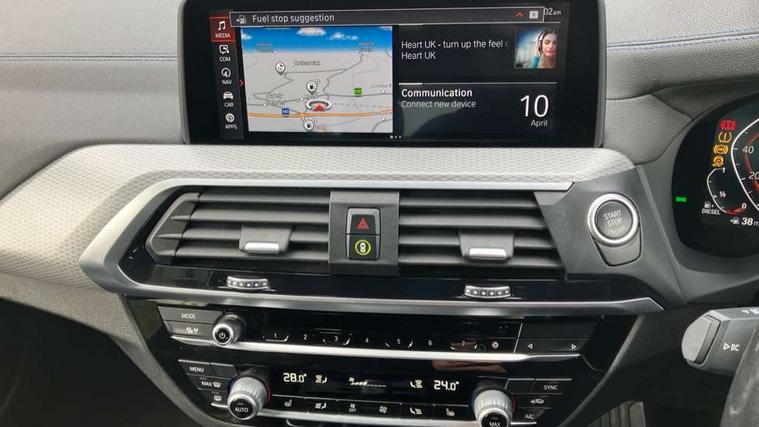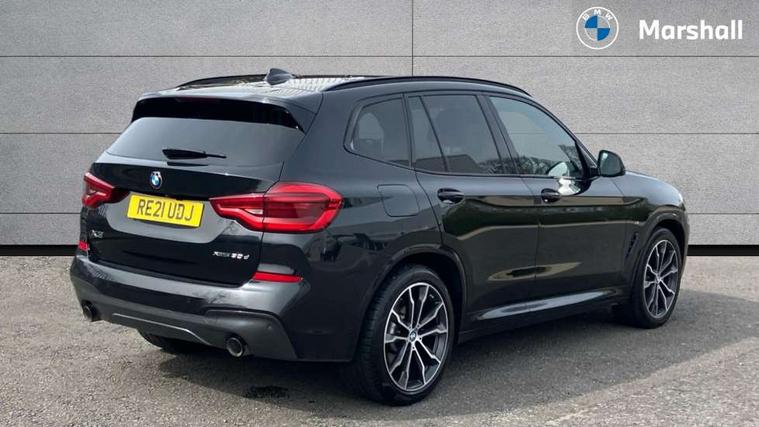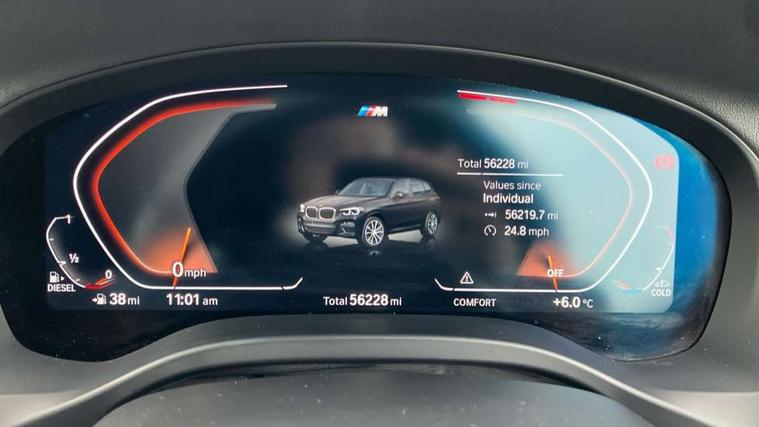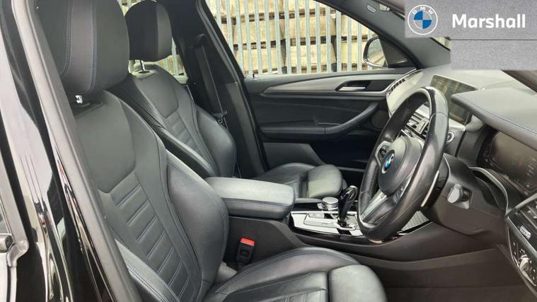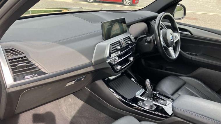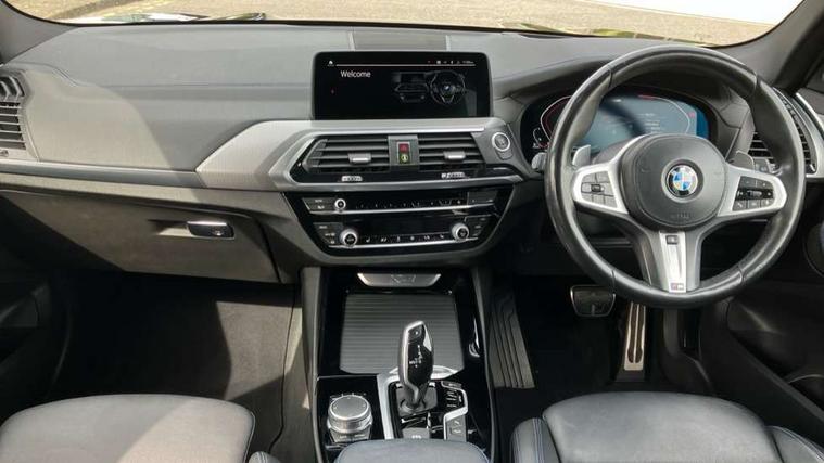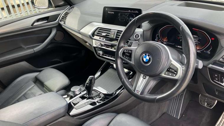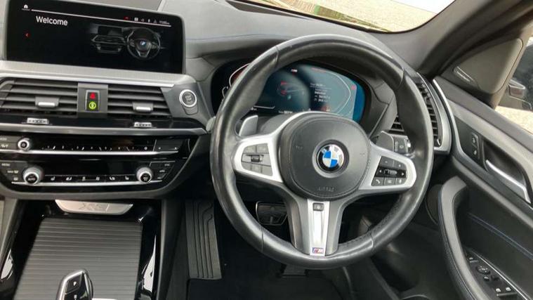 Attentiveness assist, Automatic tailgate operation, BMW Live Cockpit Professional sat nav system including 10.25" high resolution display and Intelligent Voice Assistant, BMW Online services, BMW Teleservices, Brake pad wear indicator in front and rear, Check Control warning system for monitoring of lights and door/luggage compartment open warning, Control display - 6.5" colour display screen, iDrive Controller with 8 favourite buttons, Lights on warning by audio warning signal when ignition is switched off, Navigation system - BMW Professional multimedia with Hard disc drive (HDD) and 10.25" touch display, Oil sensor for level and grade, warning by check control system, On board computer - average speed+fuel consumption, service interval, clock/date, odometer/trip meter, outside temperature display and ice warning, Optimum shift indicator, Personal Profile - automatic lock when driving away selectable, Semi digital instrument cluster, Stop/start system, Variable sports power steering, Diesel particulate filter, Drive performance control with ECO PRO comfort + sport mode, Incorrect fuelling protection, Larger capacity fuel tank, M sport suspension, Multi-link rear suspension, Performance Control, Sport automatic transmission, Auxiliary socket for external MP3 player, BMW professional radio/CD/MP3, DAB Digital radio, Acoustic glazing, Black finish on B pillars, Body colour door handles, Body colour electric adjust heated aspherical door mirrors, Body colour roof mouldings, Body coloured bumpers, Chrome kidney grille with high gloss black vertical slats, Direction indicator, side repeaters, integrated in exterior mirrors, Dual chrome exhaust, Dynamic brake lights, Exterior mirrors - electrically folding with anti-dazzle, Fingertip control / anti-trap function on electric window, Follow me home headlights, Front and rear bumper system with replaceable deformation elements, Front and rear electric windows, Green tinted heat insulating glass, Heated windscreen washer jets, Height adjustable headlamps, High gloss black door sill finishers, High gloss black shadow line roof rails, High gloss shadowline exterior trim in decorative moulding side frame/recess cover/guide rail/B, C pillars/mirror frame and triangle with mirror base, High level 3rd brake light incorporating LED Technology, Interior rear view electrochromatic mirror with automatic anti dazzle function, LED front fog lights, LED tail lights, Lightweight engineering, M aerodynamic bodystyling, Model designation, Rain sensor including auto headlights activation, Rear wiper, Shark fin antenna, Side exterior M designation badges, Visible VIN plate, Welcome lighting, Windscreen wipers with adjustable interval, 12V socket in centre console and luggage area, 3 rear headrests, 3 zone automatic air conditioning, 4 lashing points to secure luggage, Ambient lighting, Anthracite headlining, Anthracite Velour floor mats, Door sill finishers with BMW Individual designation, Driver/passenger sunvisors with ticket holders + illuminated vanity mirrors, Foldable boot floor with storage compartment, Four grab handles integrated in roof lining, Front and rear bottle holders integrated into door trim storage compartments, Front and rear side armrests integrated into door trim, Front centre armrest with storage compartment, Front footwell lights, Front sports seats, Front/rear courtesy lights with soft on/off dimming, Front/rear reading lights, Height adjustable front/rear head restraints, Isofix rear child seat preparation, Leather gear knob, Luggage area underfloor compartment, Luggage compartment lighting, M leather steering wheel, Parcel shelf removeable and storable under boot floor, Reach and rake adjustable steering column, Rear centre armrest with 2 cupholders, Removable / retractable luggage cover, Slope adjustable rear seats, Storage compartment in rear centre console and front/rear door trims, Through loading system with 40/20/40 split folding rear seat, Toolkit located in luggage compartment, Two front cupholders with removable oddments tray/lid, Vernasca leather upholstery, Connected pack professional - X3, ABS/EBD, ADB - Automatic Differential Brake, Automatic Stability Control (ASC), Battery safety cut-off, BMW emergency call, Brake assist, Brake drying, Brake energy regeneration, Braking pre-tensioning, Child locks on rear doors, Cornering brake control (CBC), Crash Sensor - activation of central locking release, hazard warning light and interior lighting, Deactivation of fuel pump in the event of a crash, Driver and front passenger front and side airbags with passenger deactivation and ITS front and rear head airbags, DSC+, Dynamic brake control, Dynamic Traction Control - DTC, Electromechanical parking brake, Front seat belts warning, Hill descent control, Hill start assist, Seatbelt security check for front seats, Side impact protection, Three point seatbelts to all seats with front and outer rear pyrotechnic belt tensioners and seat belt force limiters, Two tone horn, Tyre pressure monitoring system, Ventilated front and rear disc brakes, Warning triangle and first aid kit, Central locking switch for all doors, fuel filler cap and luggage compartment, Electronic engine immobiliser, Locking wheel nuts, Remote control including two integrated key - one button for open/close all lockable content, windows and separate button for open luggage compartment, Remote control Thatcham category 1 alarm, Start/stop button with Comfort Go keyless engine start and auto Start/stop deactivation button, Low rolling resistance tyres,
