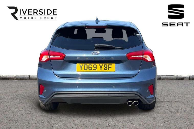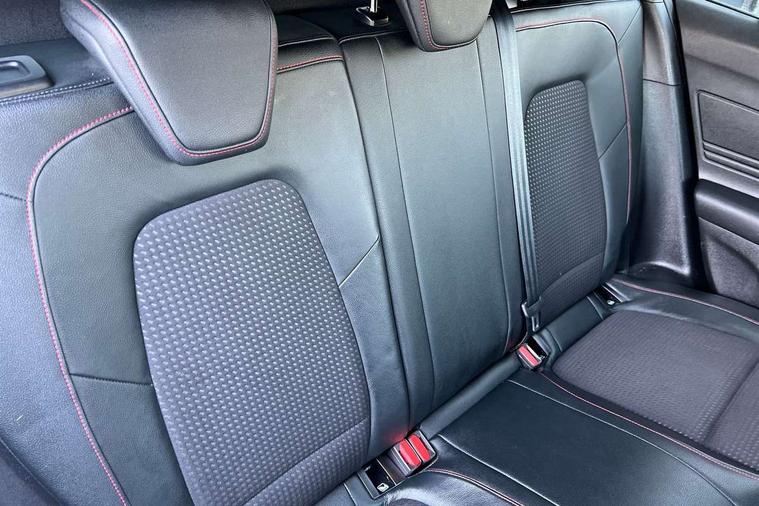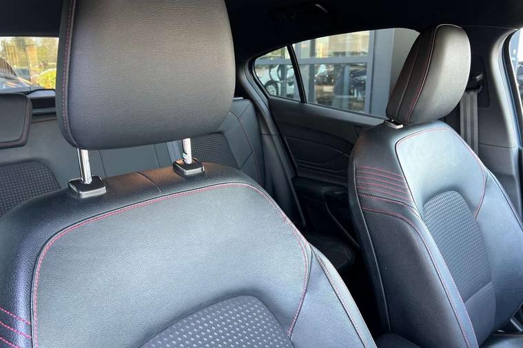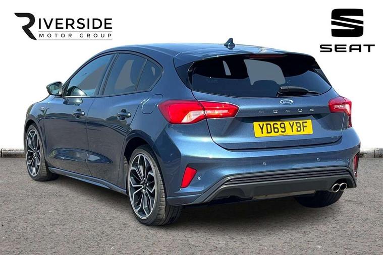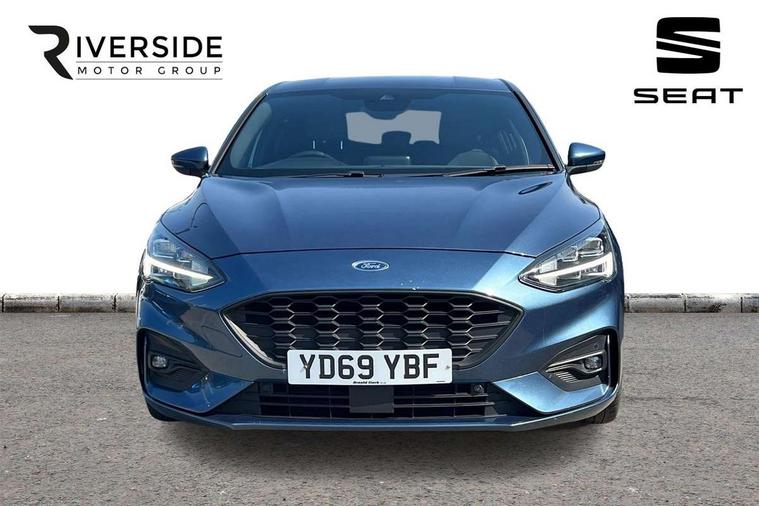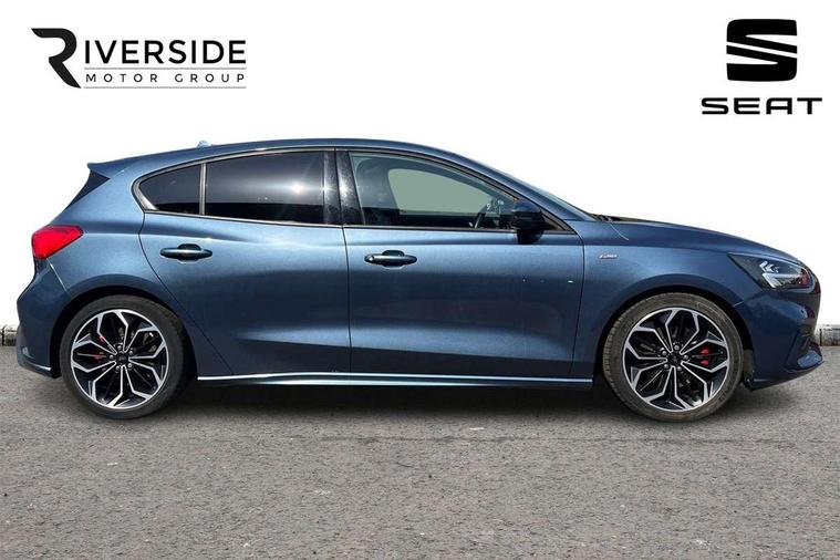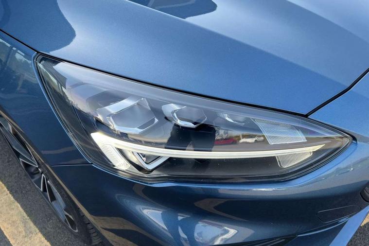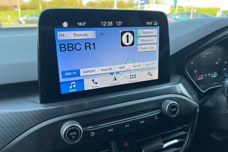 4" TFT coloured cluster screen, Bluetooth system, Digital clock, Easy fuel capless refuelling system, Eco mode, Ford pass connect, Ford SYNC 3 nav system with DAB radio, 8" colour touch screen, voice control, app link, Apple car play/Android auto and 4.2" TFT coloured cluster, Lane keeping aid with lane departure warning, PAS, Selectable drive mode, Trip computer, Diesel particulate filter, Sports tuned suspension, 2 USB ports, Aux input, 'Quickclear' heated windscreen/heated washer jets, Auto dimming rear view mirror, Auto headlamps (on/off), Automatic rain sensing wipers, Body colour large rear spoiler, Body colour power folding door mirrors with puddle lights, Body colour side skirt, Body coloured bumpers, Body coloured door handles, Body coloured electrically operated and heated door mirrors with side indicators, Electrically operated front and rear windows with one touch opening and closing, Front variable intermittent wipers with electric wash, Heated rear window, LED daytime running lamp, LED front fog lamps with cornering function, Polished twin tailpipe, Rear privacy glass, ST-Line upper and lower grille with full body styling kit and wing badges, Tailgate wash/wipe, Unique door and instrument panel inserts, 3 spoke flat bottomed leather steering wheel with red stitching, 6 way power adjustable driver seat, 60/40 split back and cushion rear seats with 2 height adjustable headrests, Alloy finish pedals, Aluminium gear knob, Centre console with armrest, Dark headliner, Dual zone electronic air temperature control, Front and rear floor mats with red stitching, Front passenger seat manual height and lumbar adjust, Heated front seats, Height adjustable front headrests, Isofix child seat preparation, Part leather upholstery with red stitching, Reach + rake adjustable steering column, Rear centre headrest, Red stitching on steering wheel, Soft console knee pads with red stitching, ABS+Electronic Brake force Distribution, Auto hold function, Driver airbag, Electronic parking brake, Electronic stability control, Front and rear seatbelt reminder, Front inertia reel height adjustable seatbelts with pre-tensioners, Front passenger airbag, Front side airbags, Hill start assist, Passenger airbag deactivate switch, Post collision braking, Pre collision assist with autonomous emergency braking and pedestrian/cyclist detection, Red brake calipers, Side curtain airbags, Three rear inertia reel lap/diagonal seatbelts, Tyre pressure monitoring system, MyKey system, Remote central locking & engine immobiliser, Thatcham category 1 alarm, Contrast stitching - Red, 18" 5x2 spoke matt black machined finish alloy wheels, Mini steel spare wheel,