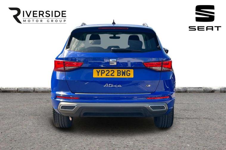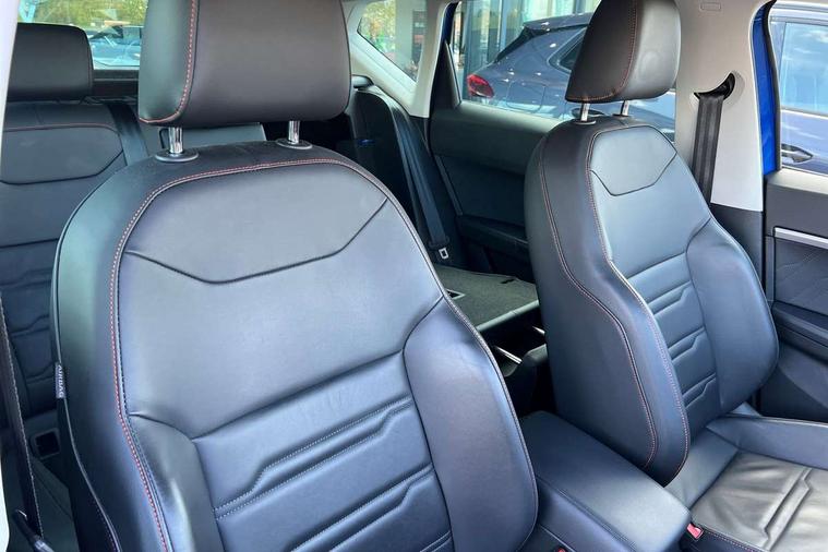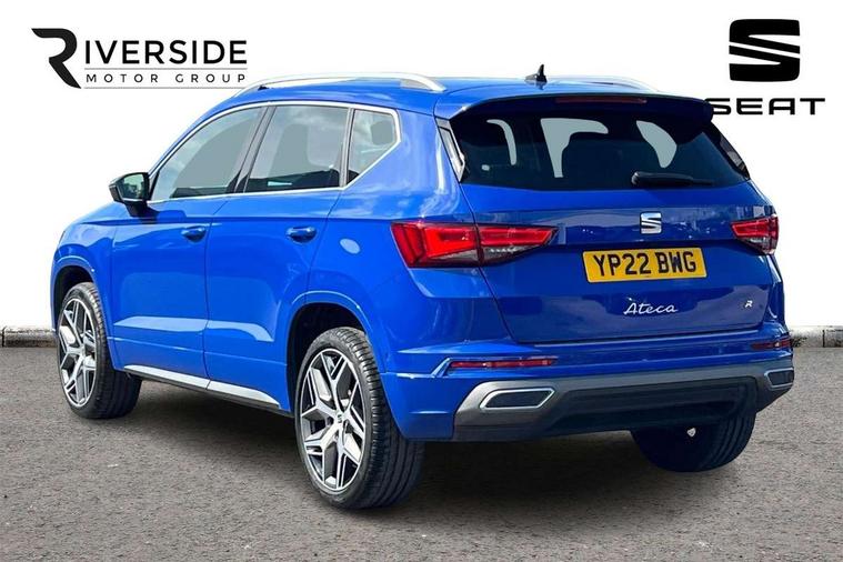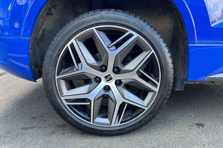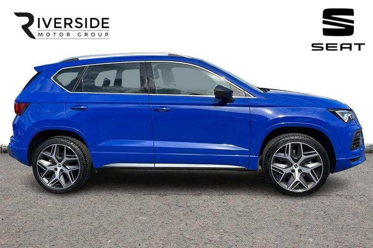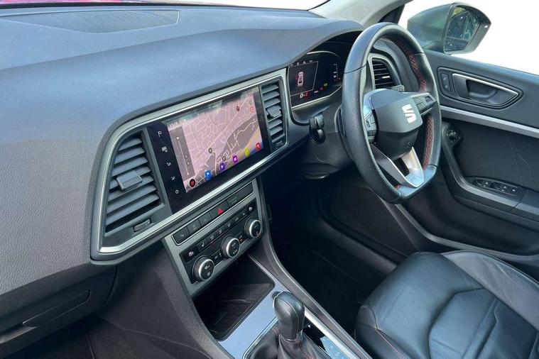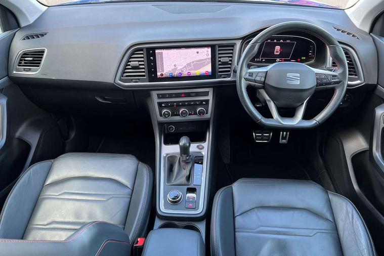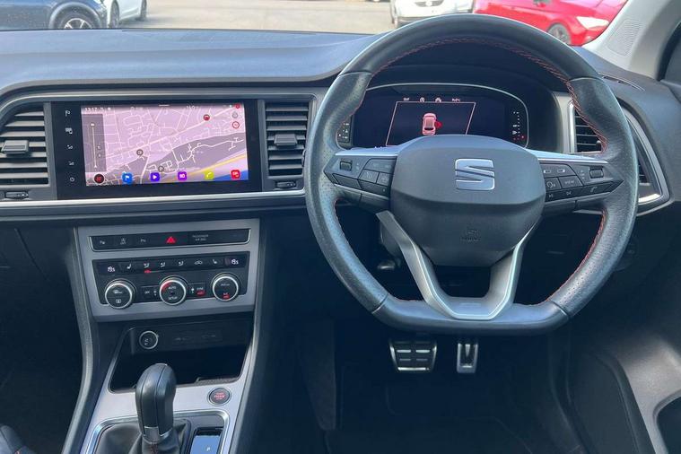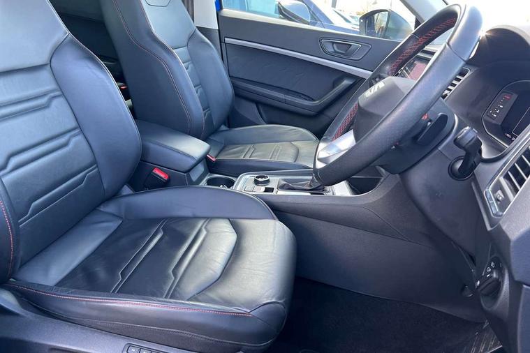 Cruise control system with speed limiter, Digital cockpit, E-call, Outside temperature gauge, Progressive power assisted steering, SEAT drive profile with driving experience button - Normal, Sport, Eco and Individual mode, gearshift, steering and throttle response, Self parking functionality (includes front and rear parking sensors), Trip computer, Wireless full link smartphone integration, Wireless phone charger, Steering wheel mounted audio/phone controls, Body colour bumpers, Body coloured wheel arch surrounds, Chrome roof rails, Chrome side window trim, Cosmo grey front grille frame, Dark tinted rear windows, Daytime running lights, Door mirrors with welcome light silhouette, Dynamic headlight range control with self adjusting whilst driving, Electric adjustable/heated/folding door mirrors, Front and rear electric windows, Full LED headlamps with lens and LED front fog lamps with cornering function, Illuminated aluminium front door sill, LED rear tail lights with dynamic indicators, Rear fog lights, Rear side wing doors, Rear spoiler, Rear wash/wipe, Simulated exhaust pipes in chrome frame, Third brake light, 12v socket in front, 3 seat bench in 2nd row, 60/40 split folding rear seat, Aluminium pedals, Dual zone climate control, Electric adjustable driver seat with lumbar adjustment, Front and rear head restraints, Front centre armrest, Front seat back storage pockets, Heated front seats, Height adjustable passenger seats with lumbar adjustment, ISOFIX points in outer rear seats with top tether anchorage points, Leather steering wheel and gear knob, Leather upholstery with front sports seats, Rear armrest and easy back seat release mechanism from boot, Single front passenger seat, Steering wheel mounted gearshift paddles, Convenience pack - Ateca, Interior lighting pack - Ateca, Navigation system pack with DAB - Ateca, 3x3 point rear seatbelts, ABS, Traction control system (TCS), Electronic stability control (ESC) and Electronic differential lock system (XDS), Airbags - Driver and front passenger airbag with deactivation, front side, two curtain and driver's knee airbags, Electric parking brake with auto hold function, Front and rear seatbelt reminder, Front assist with autonomous emergency braking, Hill hold control, Manual rear child locks, Tiredness recognition system, Traction control, Tyre pressure monitoring system, Alarm, Keyless entry, Locking wheel bolts, Chrome interior detailing, 19" Exclusive machined alloy wheels with decorative inserts 36/7 in cosmo grey,
