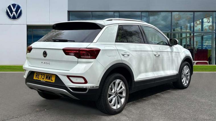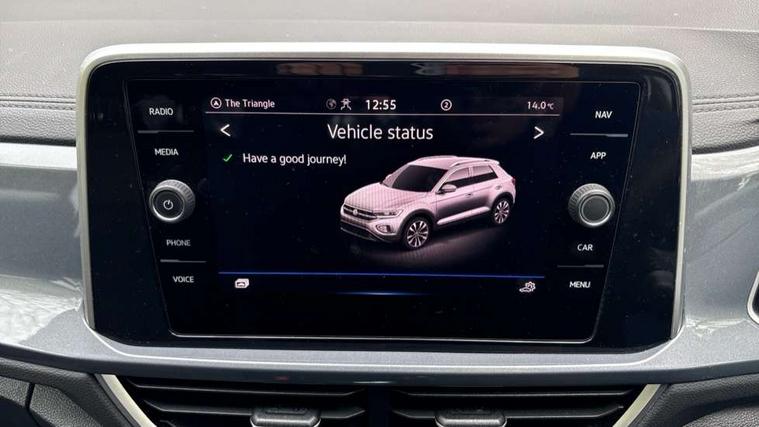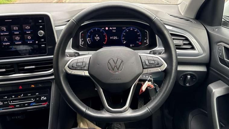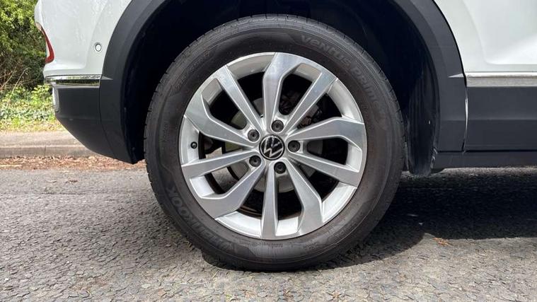 10.25" Digital cockpit pro, Bluetooth mobile phone interface, Driver alert system with fatigue detection, Driver tips and journey analysis, Dynamic road sign display, Emergency call service, Lane keeping system Lane Assist, Modified key software - reduce switch off time for key status change to Long no motion, Online services, Park assist including front and rear parking sensors, Power assisted speed sensitive steering, Service interval indicator, Tailgate/trunk lid release from outside, Think blue trainer driver tips and journey analysis, Warning sound and light for front seatbelts unfastened, Wireless app connect, Battery regeneration during braking, Front shock absorption, Rear shock absorption chassis with increased ride height, Start/stop function with battery regeneration, Diversity antenna for FM reception, Music playback - MP3, WMA and AAC files, Premium USB cable in choice of either Apple or Android smartphone compatibility, SD card slot, Simultaneous pairing of 2 compatible mobile devices, Title and cover art display, We Connect and We Connect Plus functionality, 3rd brake light, Auto dimming interior rear view mirror, Automatic hazard lights activation under emergency braking, Automatic headlight control with LED separate daytime running lights with coming/leaving home function, Body colour sports bumpers with silver metallic underbody fascia, Dynamic headlight range control with self adjusting whilst driving, Extended roof spoiler, Exterior mirrors aspherical on driver side, convex on front passenger side, External USB type C socket and charging sockets, Front windscreen wiper with intermittent wipe and 4 position delay, Heated rear window, LED rear combination lamps, LED rear number plate lights, LED tail lamp rear comination lamps, Light mode for poor weather, rain, fog or snow, Power windows with comfort operation and circuit breaker, Rain sensor, Rear exhaust tailpipe, Rear fog light on one side and reversing lights on both sides, Rear side wing doors, Rear wash/wipe with intermittent wipe setting, Remote electrically foldable door mirrors, puddle lights and reverse activated passenger's door mirror, 12V power socket in centre console, 3 rear head restraints, 3 seat bench in 2nd row, 4 load lashing points in luggage compartment, Air care climatronic air conditoning system with active combination filter and 2-zone temperature control, Chrome plated radiator grille inserts, air vent surrounds and light switch surrounds, Door and side trim panel with leatherette insert, Drawer under drivers seat, Front + rear carpet mats, Front centre armrest, Front comfort sports seats, Front cupholders x 2, Front footwell illumination, Instrument lighting, white adjustable panel illumination, Interior ambient lighting and surround lighting, Interior light delay, Isofix child seat preparation, Leather gearshift handle, LED interior light with switch off delay/dimmer and 2 front/rear LED reading lights, Load-through provision with cup holder when folded down ('Unsplit rear seat bench, split folding backrest, with centre armrest), Luggage compartment lighting, Non-folding front passenger seat backrest, Single front passenger seat, Storage compartment in left and right luggage area, Storage compartment in rear doors, Storage compartments in driver and front passenger doors, Sunvisors with illuminated vanity mirrors, Variable boot floor, height adjustable and removable, Driver assistance pack without proactive passenger protection - T-Roc, 3 point height adj front seatbelts + pretensioners, 3 point seatbelts in outer rear with ECE label, ABS, Child locks on rear doors, Driver and front passenger airbag with front passenger airbag deactivation, Driver and front passenger safety-optimised head restraints, Drivers seatbelt reminder, Electronic parking brake, Electronic Stability Control (ESC) inc EDL (Electronic Differential Lock) and ASR (Traction Control), Front and rear passengers curtain airbag system including front side airbags, Front assist with city emergency braking and pedestrian monitoring, Front disc brakes, Front seat side impact airbags, Predictive pedestrian protection, Rear disc brakes, Single tone horn, Tyre pressure loss indicator, Volkswagen roadside assistance, Anti-theft alarm system with interior monitoring, backup horn, and towing protection, Remote central locking with SAFELOCK, radio remote control with 2 remote control folding keys, Trims for alloy wheels,