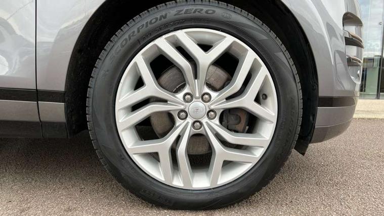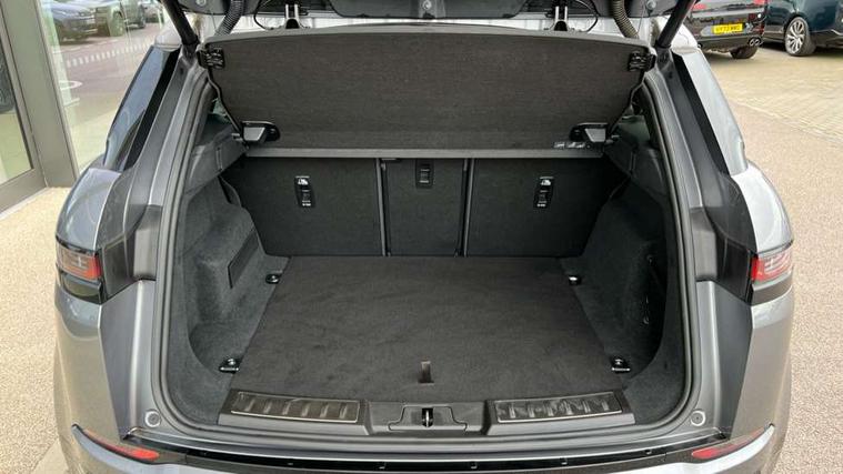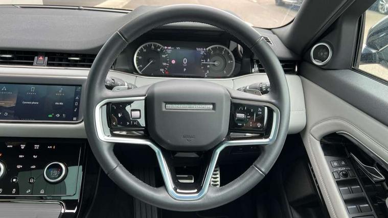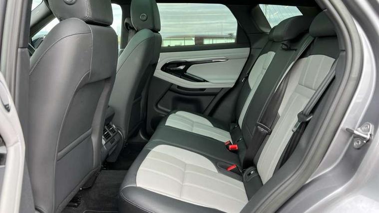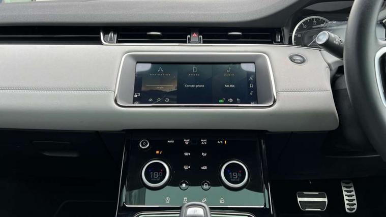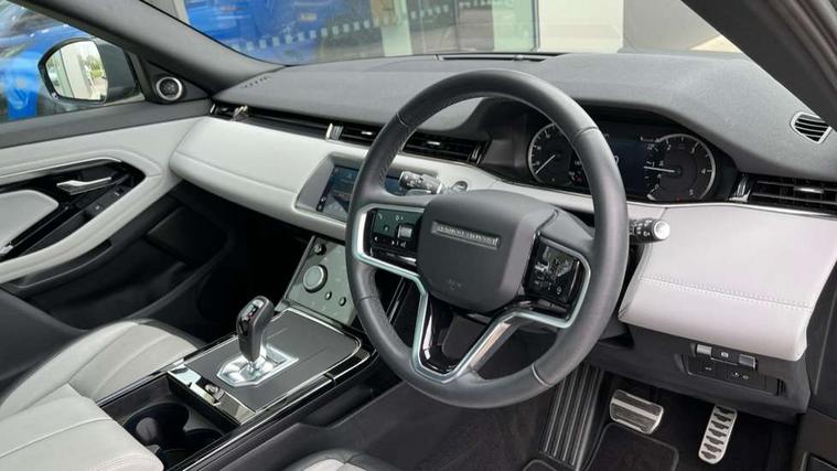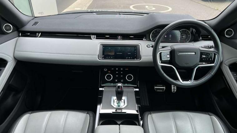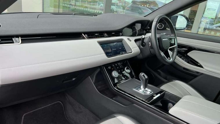 Adaptive cruise control, Android Auto, Apple car play, Blind spot assist, Bluetooth connectivity, Brake pad wear indicator warning light, Driver condition monitor, eCall emergency system, Electronic power assisted steering (EPAS), Front and rear parking aid, InControl remote, Land Rover InControl apps, Lane keep assist, Pivi pro connected includes upgraded infotainment, connected navigation pro, Nuance speech licence, Push button starter, Rear collision monitor, Rear traffic monitor, Traffic sign recognition with adaptive speed limiter, Voice control system, All terrain progress control, Efficient Driveline, Passive suspension, Terrain Response 2 Auto, Digital Audio Broadcast radio-DAB, Steering wheel mounted controls, Auto headlights, Automatic headlight levelling, Electric windows with one touch open/close and anti trap, Evoque and R-Dynamic badge, Flush deployable exterior door handles, Heated rear window with timer, Heated washer jets, Heated windscreen, Power fold, auto-dimming, heated door mirrors with approach lights and auto dimming driver side, Rain sensing windscreen wipers, Rear fog lights, Rear side wing doors, Rear wiper, Tailgate spoiler, Third brake light, 40:20:40 split folding rear seats with centre headrest and armrest, Ambient interior lighting, Bright metal pedals, Isofix system on outer rear seats, Overhead lighting console, Overhead stowage for sunglasses, Passive front head restraints, Rear air vents, Rear centre headrest, Rear head restraints, Satin chrome gearshift paddles, Single passenger seat, Sunvisors with illuminated vanity mirrors, Twin sliding front centre armrest, 3 rear 3 point seatbelts, Anti-lock braking system (ABS), Customer configurable autolock, DSC - Dynamic Stability Control, Electronic brake force distribution, Electronic parking brake, Electronic traction control, Emergency braking, Front and rear seatbelt reminder, Hill descent control, Hill launch assist, Low traction launch, Power operated child locks, Roll stability control, Six airbags - Driver and passenger airbags/driver knee airbag/front side airbag and curtain airbags, Torque vectoring brake, Tyre pressure monitoring system, Alarm, Immobiliser, Intrusion sensor, Keyless entry, Locking wheel nuts,