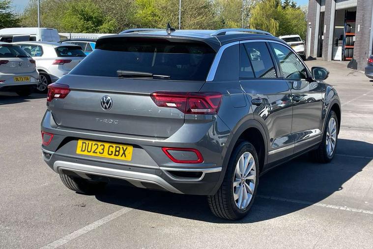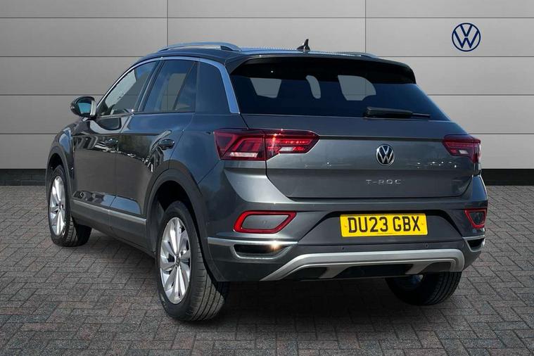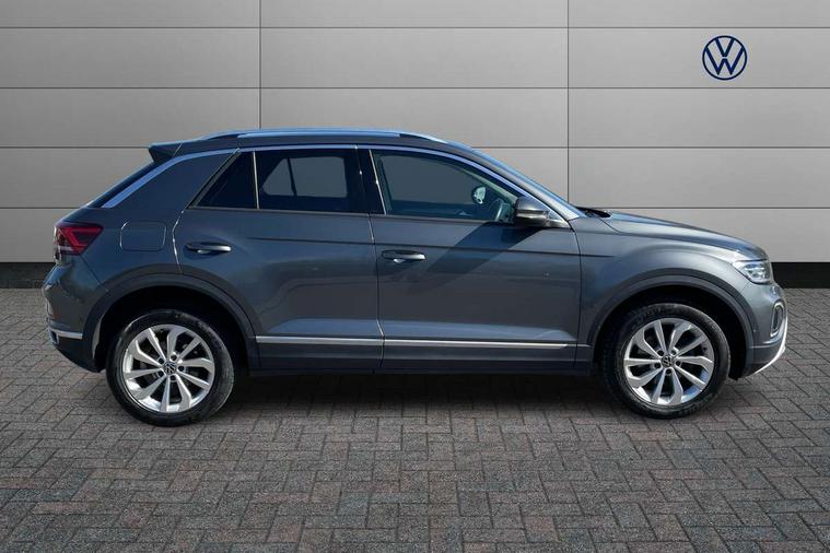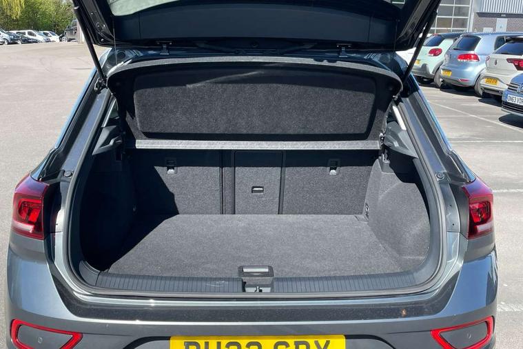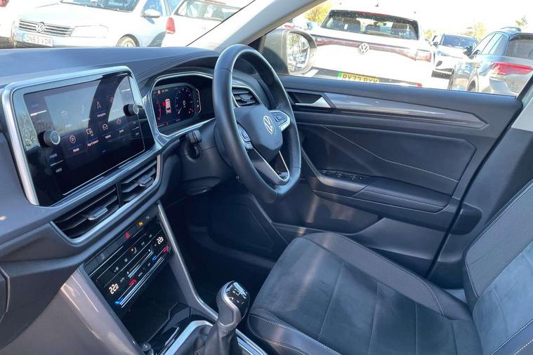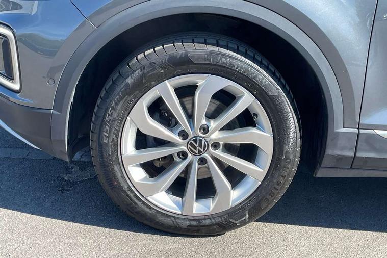 10.25" Digital cockpit pro, Bluetooth mobile phone interface, Driver alert system with fatigue detection, Driver tips and journey analysis, Dynamic road sign display, Emergency call service, Lane keeping system Lane Assist, Modified key software - reduce switch off time for key status change to Long no motion, Online services, Park assist including front and rear parking sensors, Power assisted speed sensitive steering, Service interval indicator, Tailgate/trunk lid release from outside, Think blue trainer driver tips and journey analysis, Warning sound and light for front seatbelts unfastened, Wireless app connect, Battery regeneration during braking, Front shock absorption, Rear shock absorption chassis with increased ride height, Start/stop function with battery regeneration, Diversity antenna for FM reception, Front and rear 6 speakers, Music playback - MP3, WMA and AAC files, Premium USB cable in choice of either Apple or Android smartphone compatibility, SD card slot, Simultaneous pairing of 2 compatible mobile devices, Title and cover art display, We Connect and We Connect Plus functionality, 3rd brake light, Auto dimming interior rear view mirror, Automatic hazard lights activation under emergency braking, Automatic headlight control with LED separate daytime running lights with coming/leaving home function, Body colour sports bumpers with silver metallic underbody fascia, Dynamic headlight range control with self adjusting whilst driving, Extended roof spoiler, Exterior mirrors aspherical on driver side, convex on front passenger side, External USB type C socket and charging sockets, Front windscreen wiper with intermittent wipe and 4 position delay, Heated rear window, LED Plus headlamps, LED rear combination lamps, LED rear number plate lights, LED tail lamp rear comination lamps, Light mode for poor weather, rain, fog or snow, Power windows with comfort operation and circuit breaker, Rain sensor, Rear exhaust tailpipe, Rear fog light on one side and reversing lights on both sides, Rear side wing doors, Rear wash/wipe with intermittent wipe setting, Remote electrically foldable door mirrors, puddle lights and reverse activated passenger's door mirror, 12V power socket in centre console, 3 rear head restraints, 3 seat bench in 2nd row, 4 load lashing points in luggage compartment, Air care climatronic air conditoning system with active combination filter and 2-zone temperature control, Chrome plated radiator grille inserts, air vent surrounds and light switch surrounds, Door and side trim panel with leatherette insert, Drawer under drivers seat, Front + rear carpet mats, Front centre armrest, Front comfort sports seats, Front cupholders x 2, Front footwell illumination, Instrument lighting, white adjustable panel illumination, Interior ambient lighting and surround lighting, Interior light delay, Isofix child seat preparation, Leather gearshift handle, LED interior light with switch off delay/dimmer and 2 front/rear LED reading lights, Load-through provision with cup holder when folded down ('Unsplit rear seat bench, split folding backrest, with centre armrest), Luggage compartment lighting, Non-folding front passenger seat backrest, Single front passenger seat, Storage compartment in left and right luggage area, Storage compartment in rear doors, Storage compartments in driver and front passenger doors, Sunvisors with illuminated vanity mirrors, Variable boot floor, height adjustable and removable, Driver assistance pack without proactive passenger protection - T-Roc, 3 point height adj front seatbelts + pretensioners, 3 point seatbelts in outer rear with ECE label, ABS, Child locks on rear doors, Driver and front passenger airbag with front passenger airbag deactivation, Driver and front passenger safety-optimised head restraints, Drivers seatbelt reminder, Electronic parking brake, Electronic Stability Control (ESC) inc EDL (Electronic Differential Lock) and ASR (Traction Control), Front and rear passengers curtain airbag system including front side airbags, Front assist with city emergency braking and pedestrian monitoring, Front disc brakes, Front seat side impact airbags, Predictive pedestrian protection, Rear disc brakes, Single tone horn, Tyre pressure loss indicator, Volkswagen roadside assistance, Alarm with interior protection, Anti-theft alarm system with interior monitoring, backup horn, and towing protection, Remote central locking with SAFELOCK, radio remote control with 2 remote control folding keys, Trims for alloy wheels,