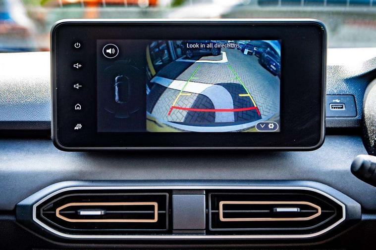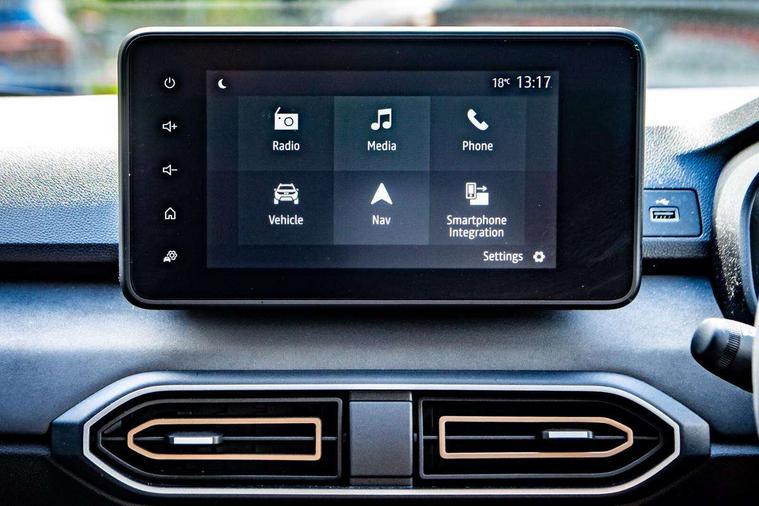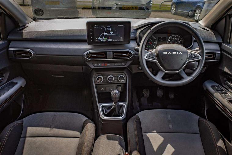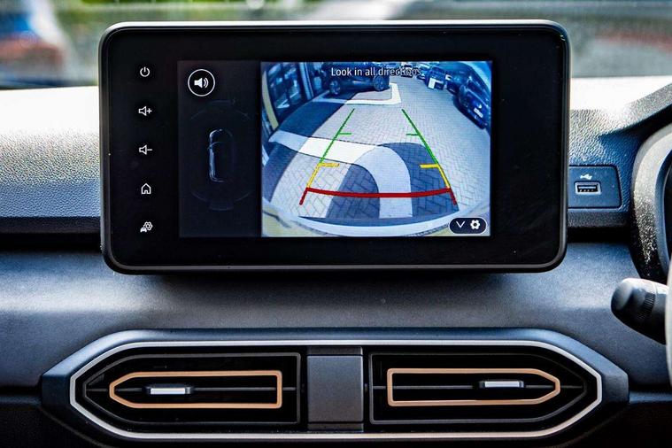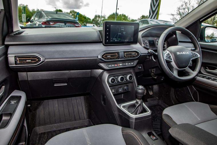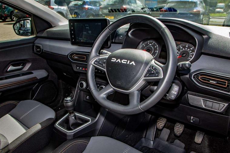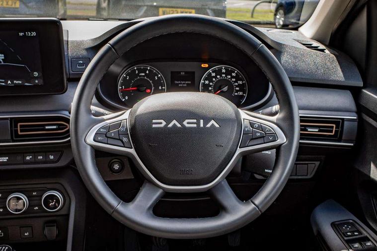 3.5" TFT instrument panel with on-board computer, Blind spot warning, Check control system, Cruise control and speed limiter, e-Call (emergency call), Eco mode, Electric power assisted steering, Extended grip switch, Exterior temperature display, Front parking sensors, One touch indicators, Rear parking sensors, Rev counter, Reversing camera, Service interval indicator, Stop/start system, Voice control for telephone and radio, Exhaust particle filter, 8" MediaNav with DAB Radio, WIFI Smartphone replication, Bluetooth, 6 speakers with Apple Carplay/Android Auto and Extra map, USB connection for data transfer and charging, USB socket, 3 speed windscreen wipers, Auto lighting, Automatic wipers, Black longitudinal roof bars, Body coloured door handles, Body coloured front and rear bumpers, Chrome radiator grille, Copper brown "Stepway" marking on roof bar, Copper brown deco part on fog lamp area, Copper brown door mirrors, Dark glass, Door sills in topographic pattern, Drivers one touch electric windows, Electric headlight adjustment, Electrically adjustable door mirrors, Front fog lights, Front LED Indicator lights, Headlights with LED low beam illumination, Heated door mirrors, Heated rear window, High level third rear brake light, Initial anti-corrosion treatment, Lateral sticker with topographic pattern, LED automatic daytime running lights, Modular roof bars, Rear electric windows, Rear side wing doors, Rear wash/wipe, Shiny black shark antenna, Snorkel sticker with topographic pattern, Towbar preparation, Transversal emblem and white highlights on front air vent grid, Y-shaped LED lighting signature, 1/3 to 2/3 split folding 2nd row seats, 12V socket in front, 12V socket in rear of vehicle, 2 independently folding and removable 3rd row seats, 2x Rear coat hooks, 3 height adjustable rear headrests, 3 load hooks, 3 seat bench in 2nd row, 4 lashing rings, Automatic air conditioning, Boot light, Copper Brown animation on air vents, Copper brown doors deco parts, Driver and passenger vanity mirror with cover, Elastic straps, Fabric upholstery, Fixed smartphone holder on dashboard, Front and rear rubber mats with topographic pattern, Gear shift indicator, Glovebox, Heated front seats, Height adjustable drivers seat with armrest, Height adjustable front headrests, Height and depth manually adjustable steering wheel, High central armrest with console storage, Isofix points for child seats in both outer rear seats, Lidded storage bin within the centre console, Micro-cloud grey fabric on dashboard, Multifunction steering wheel, Rear ceiling light, Rear door pockets, Satin chrome air vents, Satin chrome interior door handles, Single front passenger seat, Sliding tray tables, Soft feel steering wheel, Steering wheel controls, Timed interior light, Under floor storage in luggage area, 3x3 point rear seatbelts, Anti-lock braking system (ABS), Automatic Emergency Braking System (AEBS), Child locks on rear doors, Door open visual and audible warning, Driver and front passenger airbags, Driver and passenger seatbelt not fastened warning, Driver and passenger side airbags, Electronic parking brake, Electronic Stability Control (ESC), Electronic Stability Programme (ESP), Emergency Brake Assist (EBA), Front passenger airbag deactivation, Front seatbelt pretensioners, Height adjustable front seatbelts, Hill Start Assist (HSA), Side airbags (thorax and curtains - front/rear), Tyre pressure monitor, Alarm, Automatic central locking, Engine immobiliser, Keyless entry, Remote central locking, Decopart on instrument panel and door with textile, 16" Black alloy wheels with copper brown dacia logo,